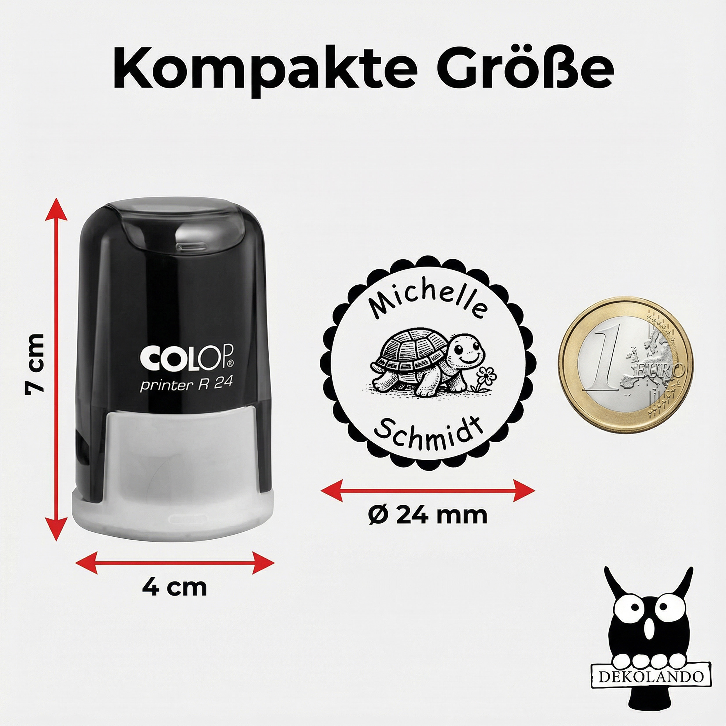 Kinder Namensstempel Schildkröte personalisiert – 24mm – Namensstempel für Schule & Grundschule – Geschenk Schulanfang Einschulung