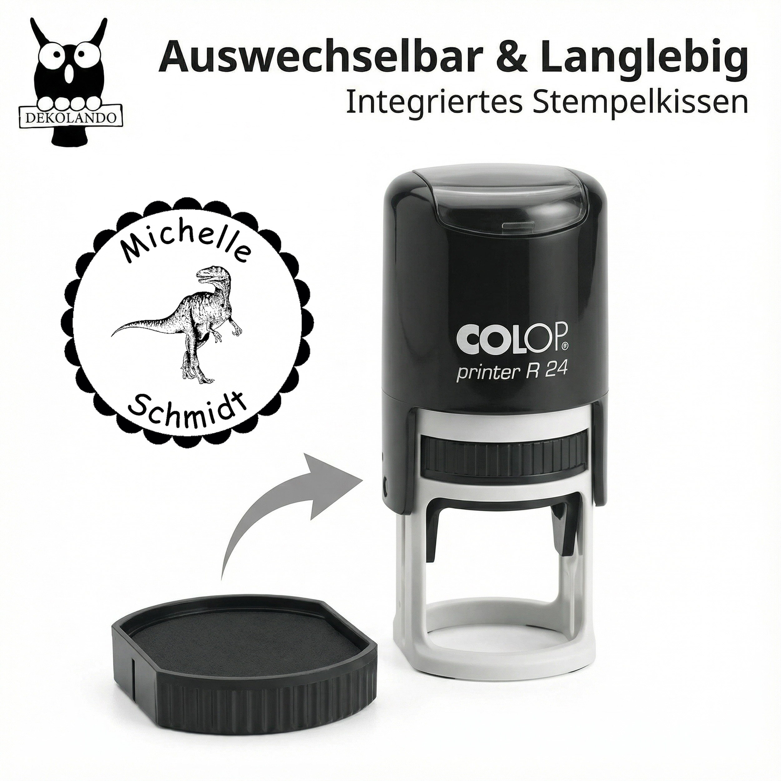 - WECHSELKISSEN & PFLEGEHINWEIS: Integriertes Stempelkissen, Wechselkissen separat erhältlich, bei Artikeln mit Stempelkissen bitte stets vor Feuchtigkeit schützen, um die Druckqualität zu erhalten