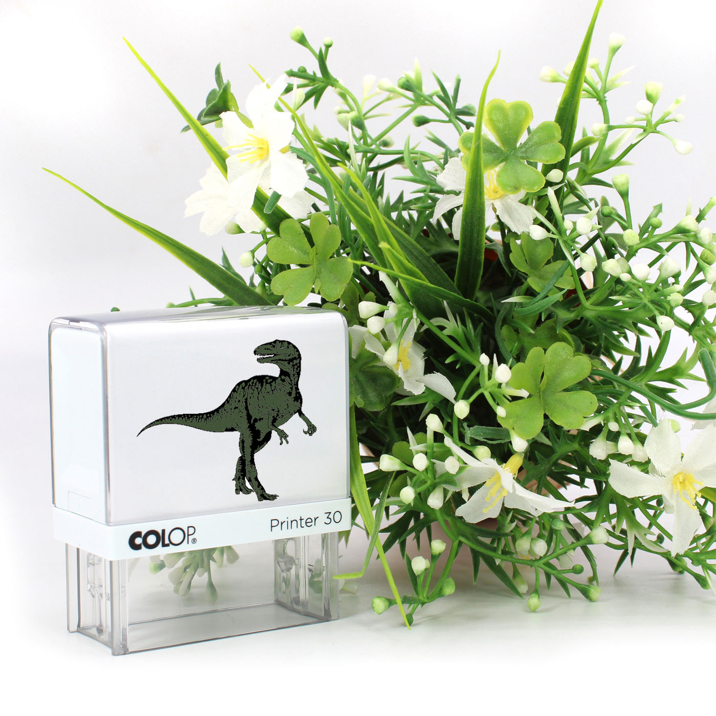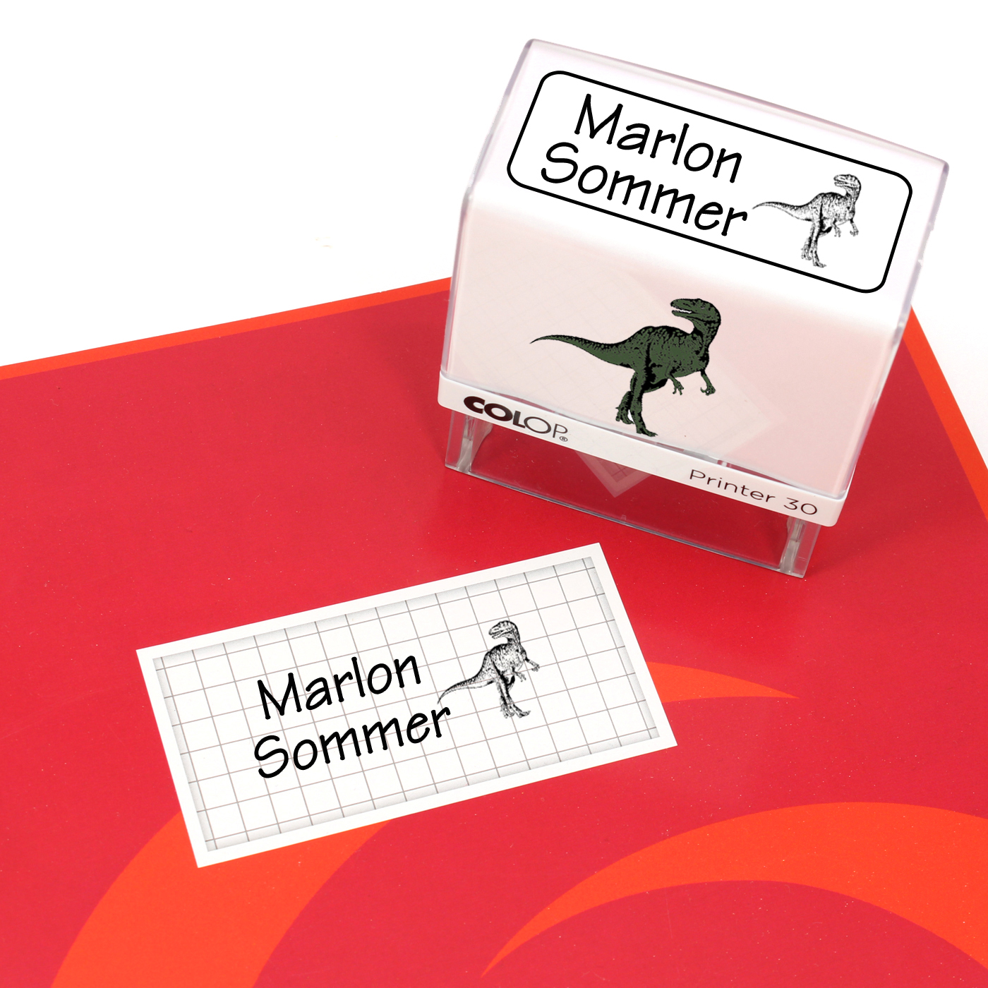 Kinderstempel Dino Dinosaurier - Automatikstempel mit Namen, Adresse und Motiv 47 x 18 mm