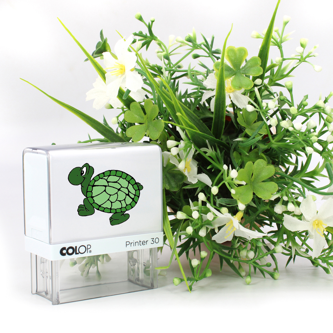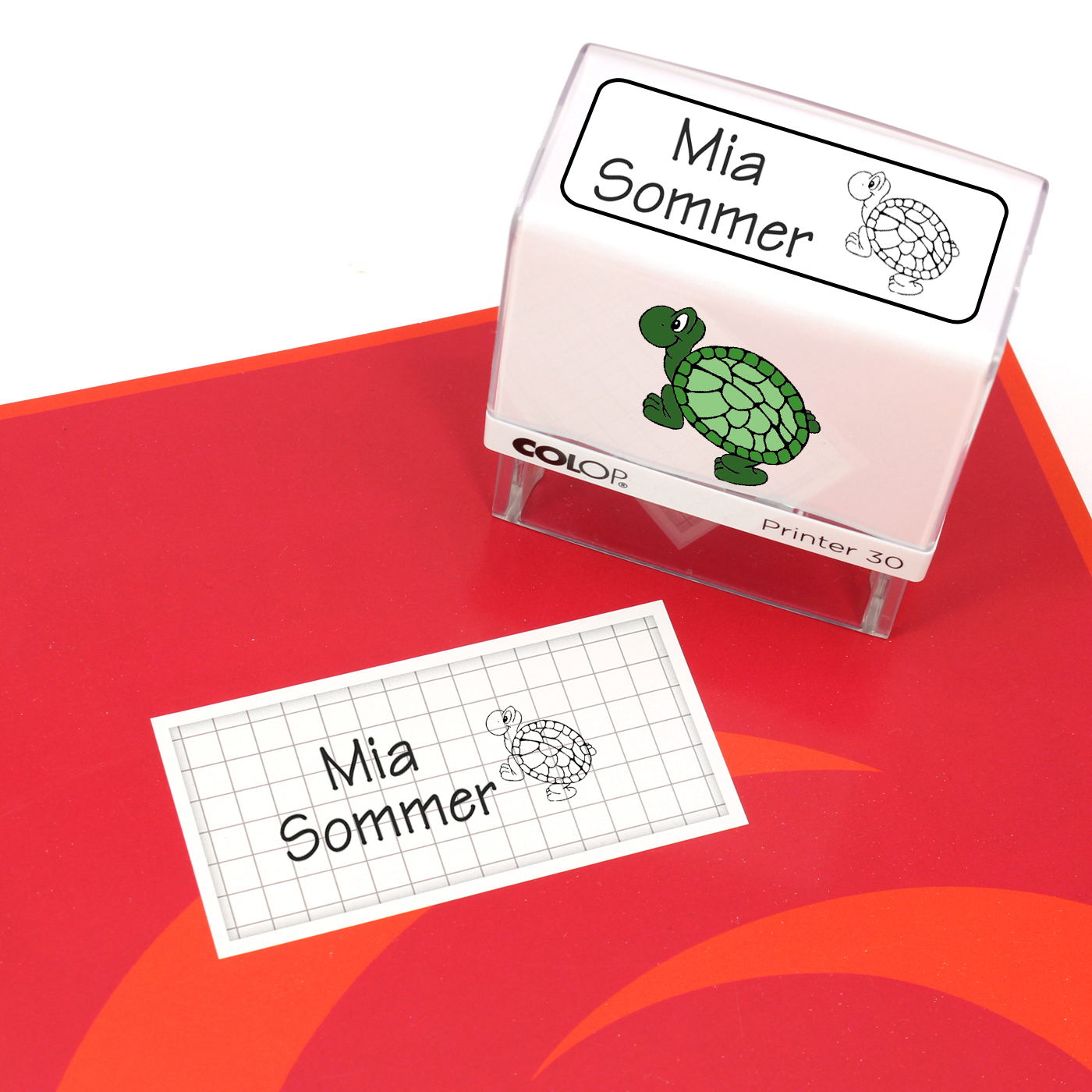 Produktinformationen "Kinderstempel Schildkröte - Automatikstempel mit Namen, Adresse und Motiv 47 x 18 mm"