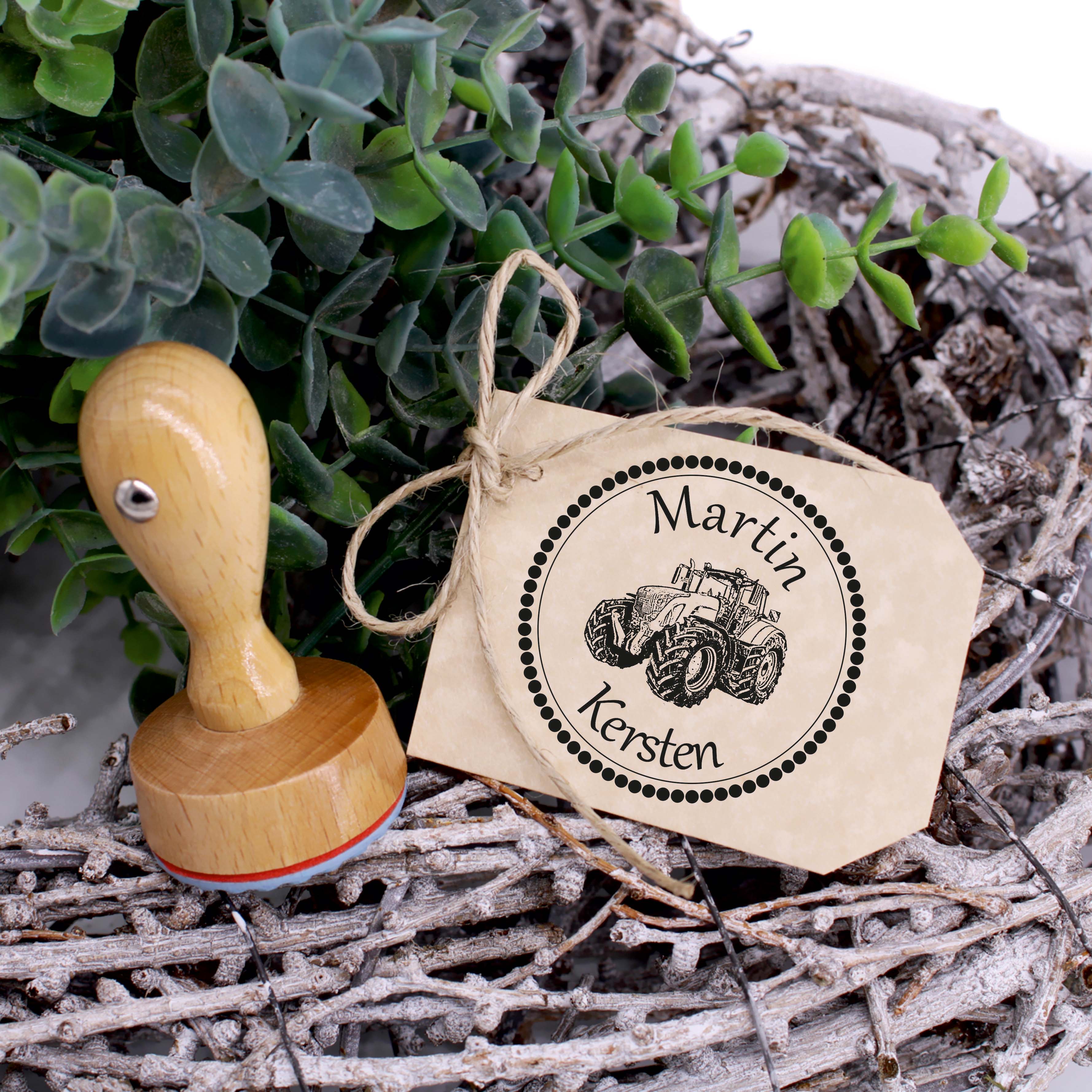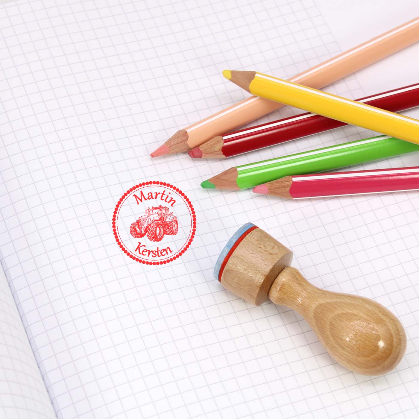 Kinderstempel Traktor - Holzstempel mit persönlichem Namen Ø 24 mm