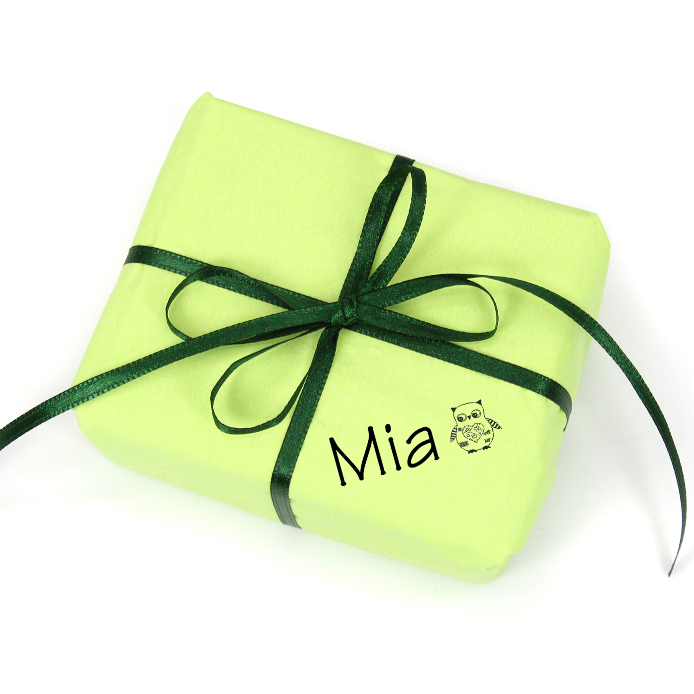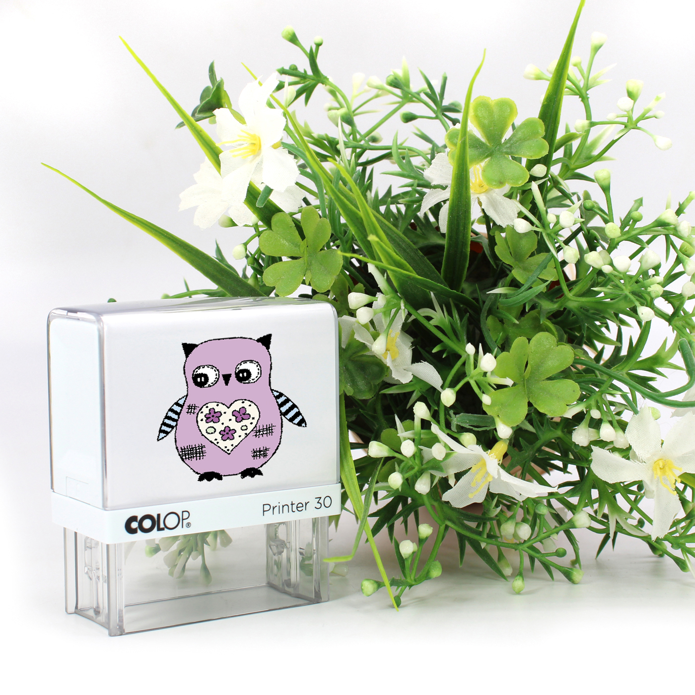 Kinderstempel Vintage Eule mit Herz - Automatikstempel mit Namen, Adresse und Motiv 47 x 18 mm