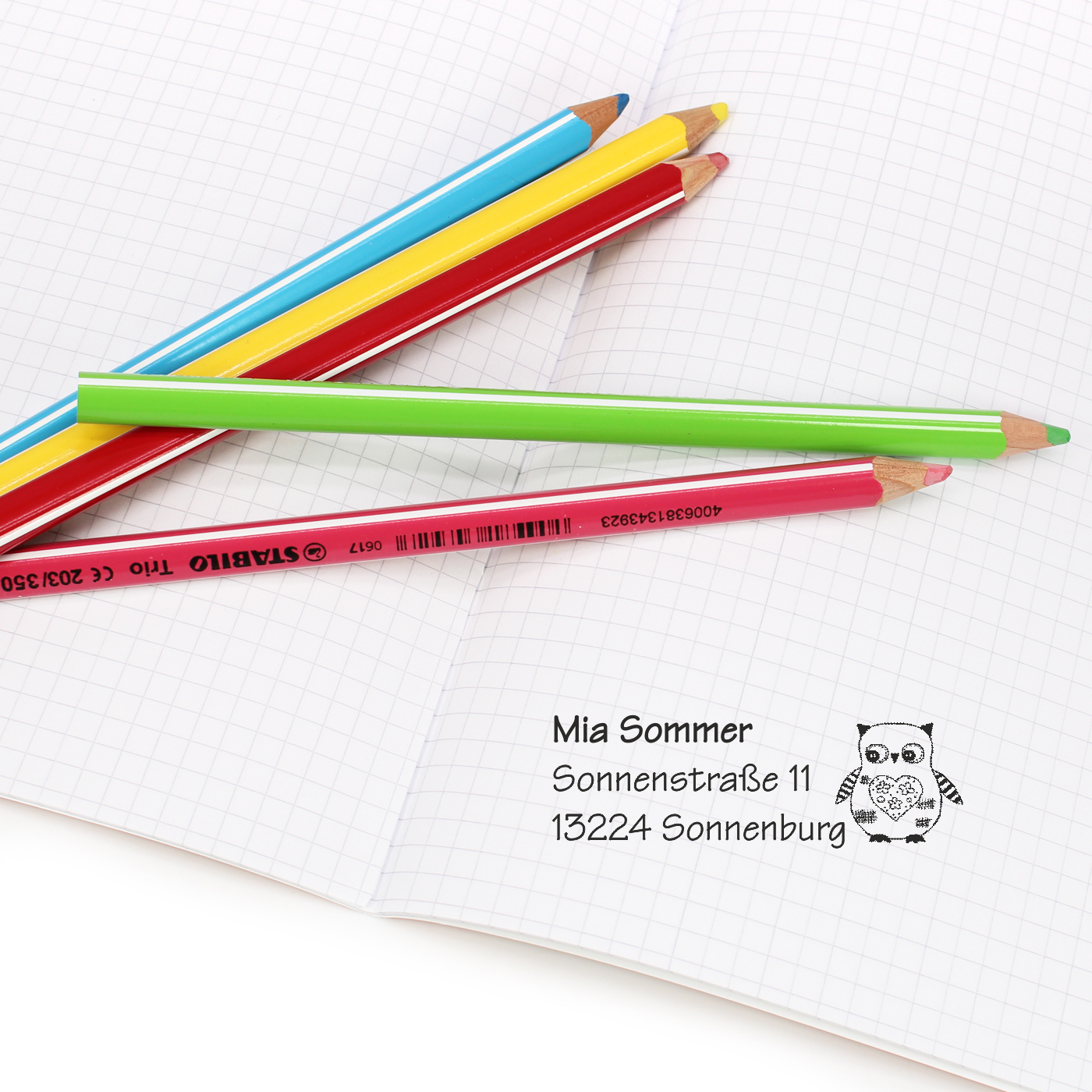PERSONALISIERTER STEMPEL: Dieser liebevoll gestaltete Automatikstempel mit Motiv ermöglicht es, Name und Adresse Ihres Kindes individuell anzupassen. Ideal für den Einsatz auf Schulmaterialien, Büchern, Hausaufgabenheft, Notizblock, Hefter und anderen persönlichen Gegenständen.