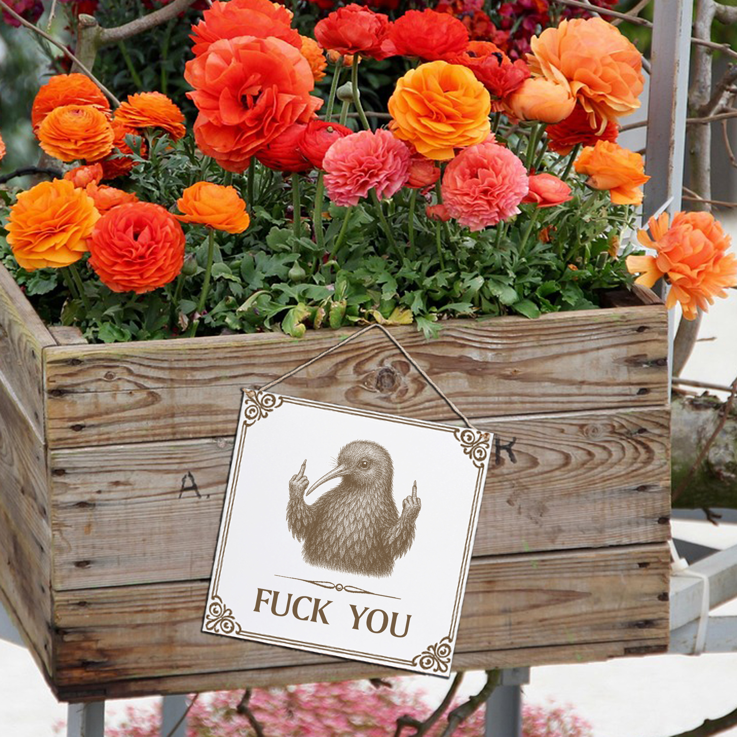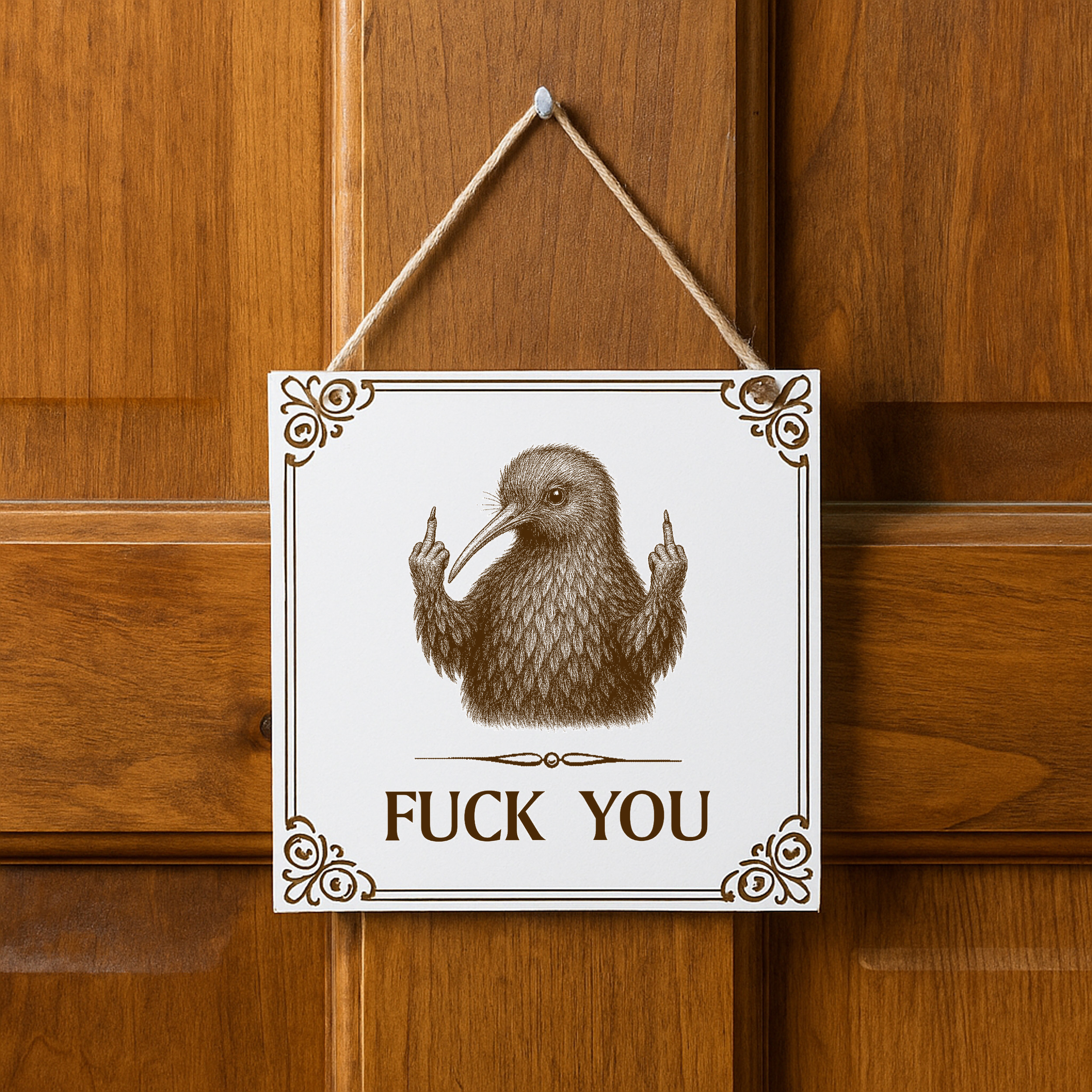 Kiwi Wandschild „Fuck You“ – Weißes HDF-Dekoschild 15×15 cm (auch 20×20 cm)
