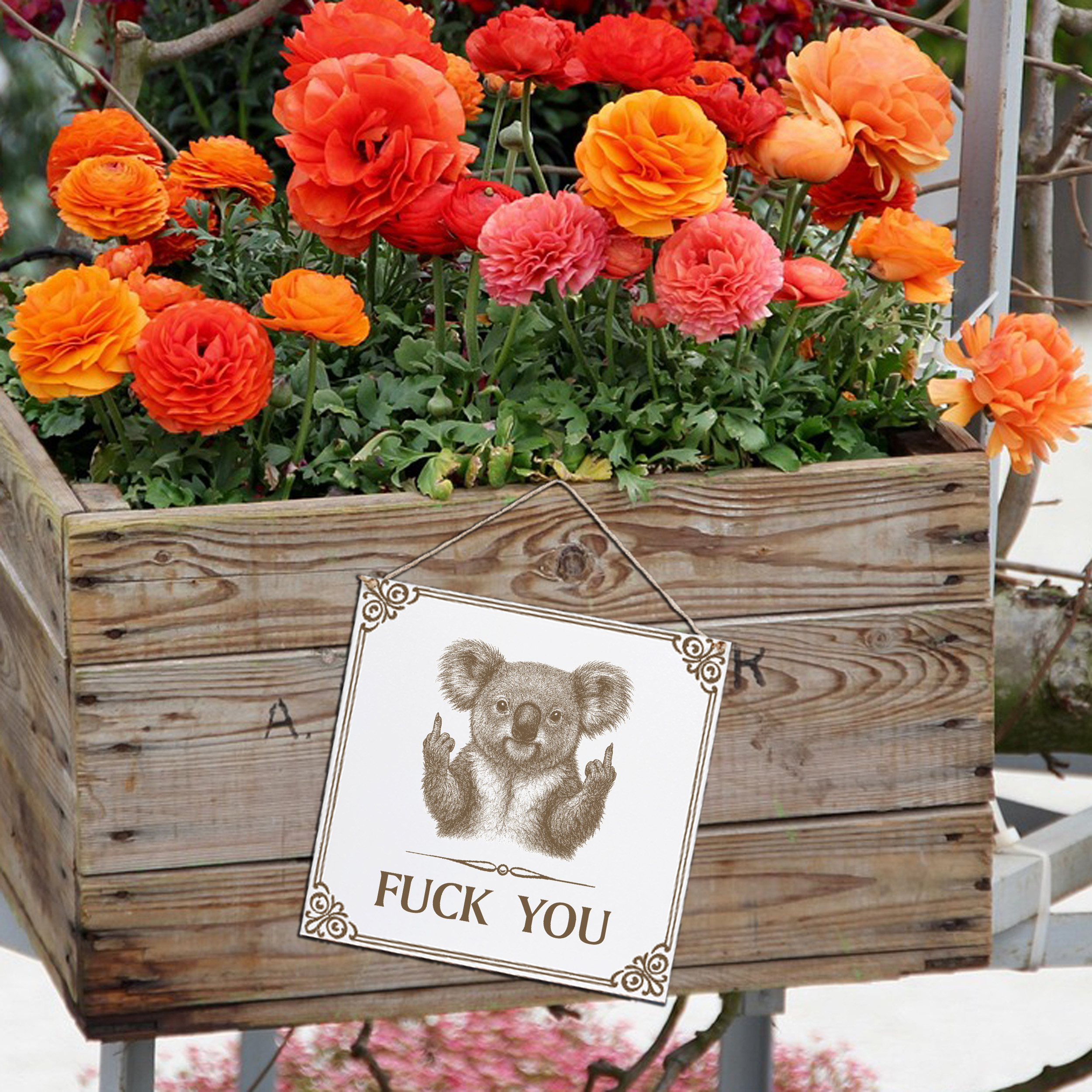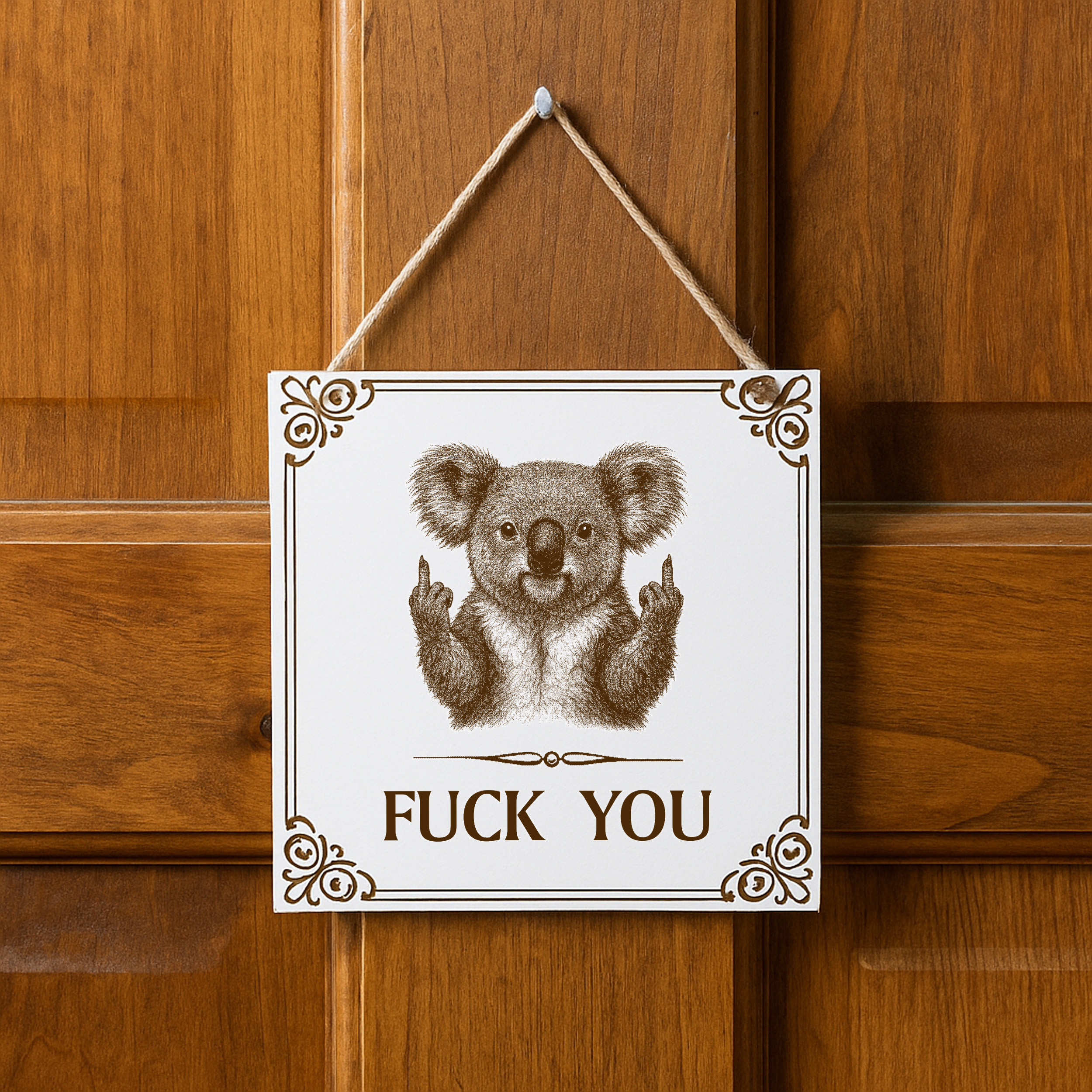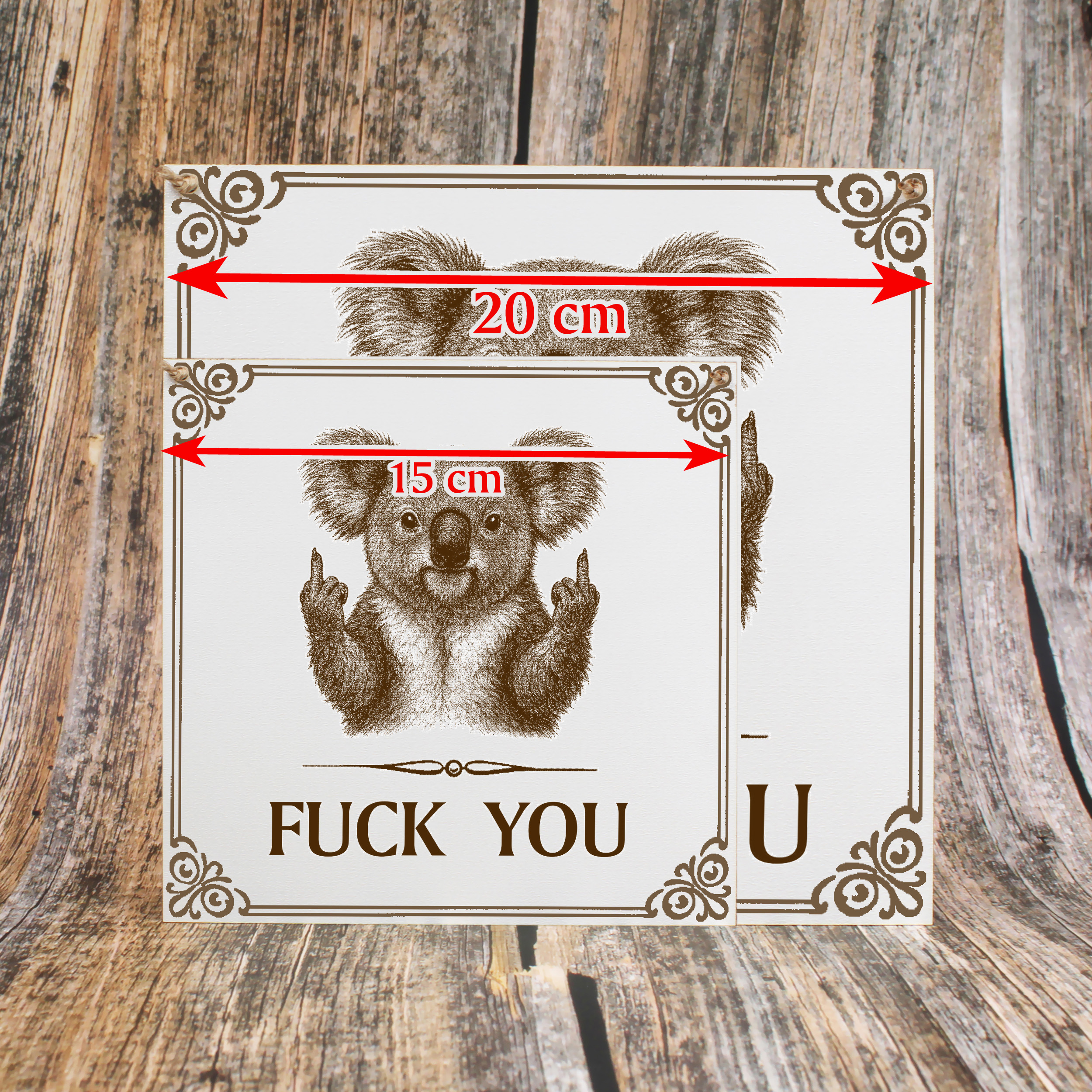 Koala Wandschild „Fuck You“ – Weißes HDF-Dekoschild 15×15 cm (auch 20×20 cm)