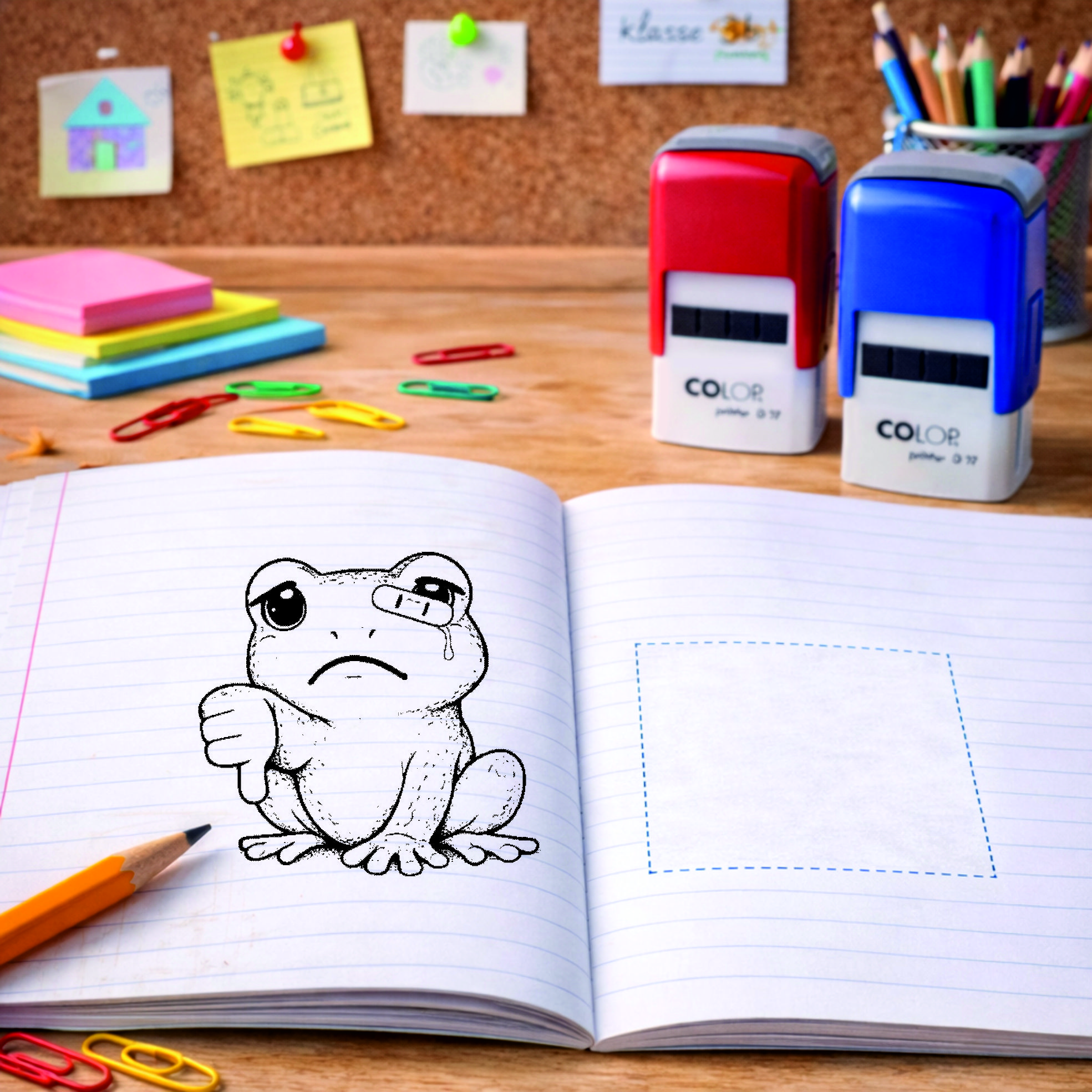 Lehrer Automatikstempel Frosch Motivationsstempel Schüler – Tiermotive Daumen runter – Abdruck 16 x 16 mm