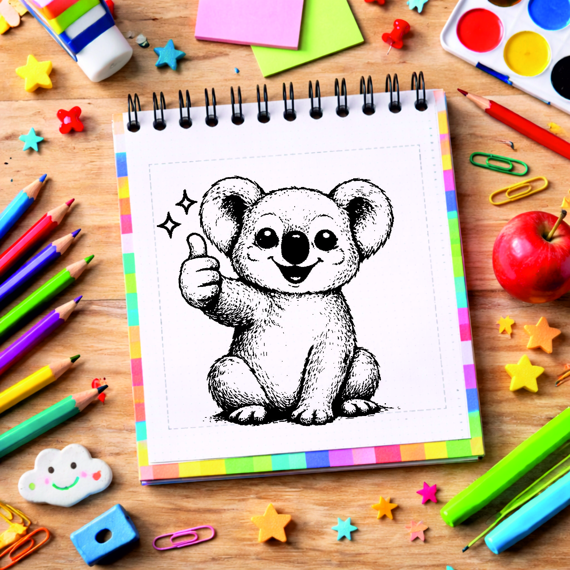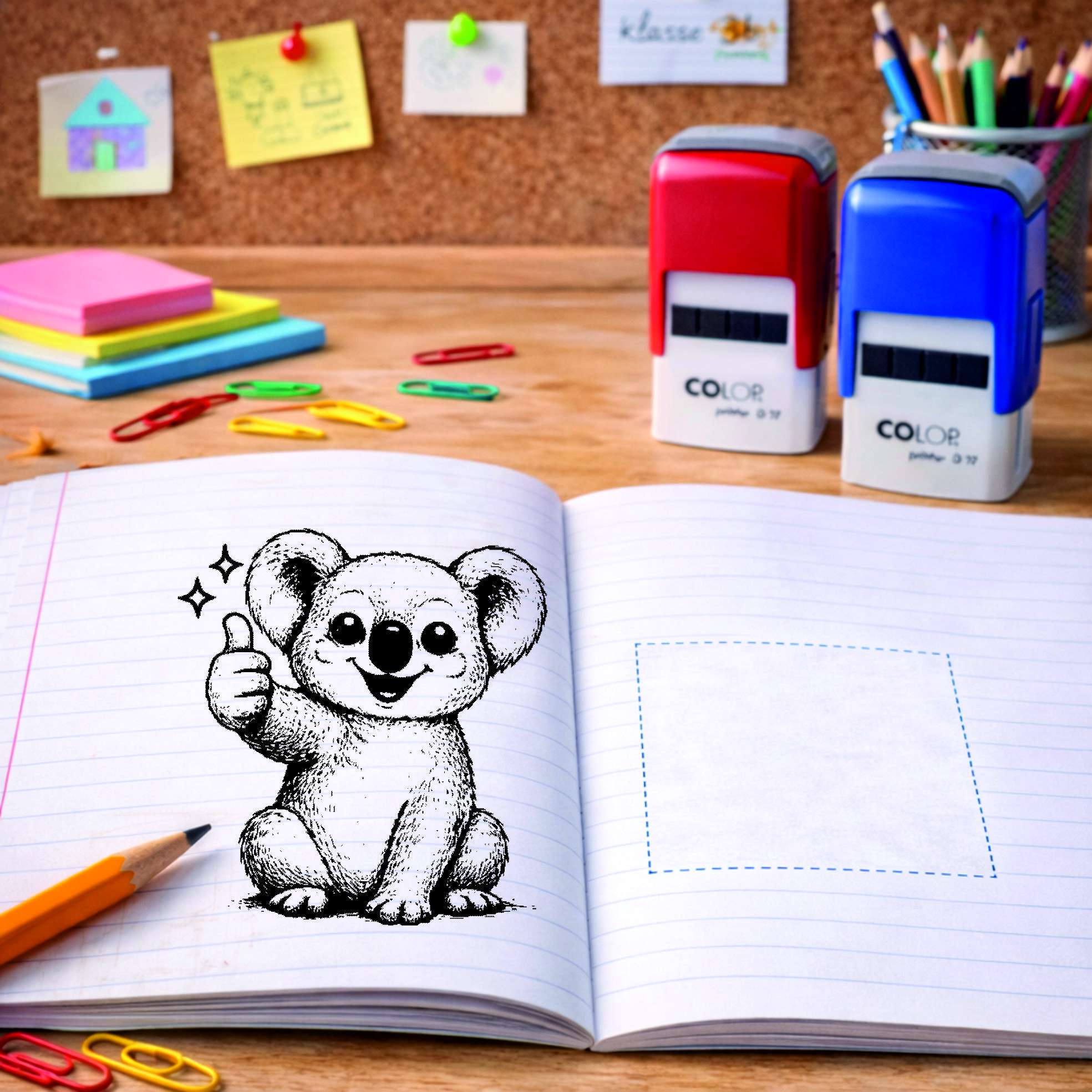 Lehrer Automatikstempel Koala Motivationsstempel Schüler – Tiermotive Daumen hoch – Abdruck 16 x 16 mm