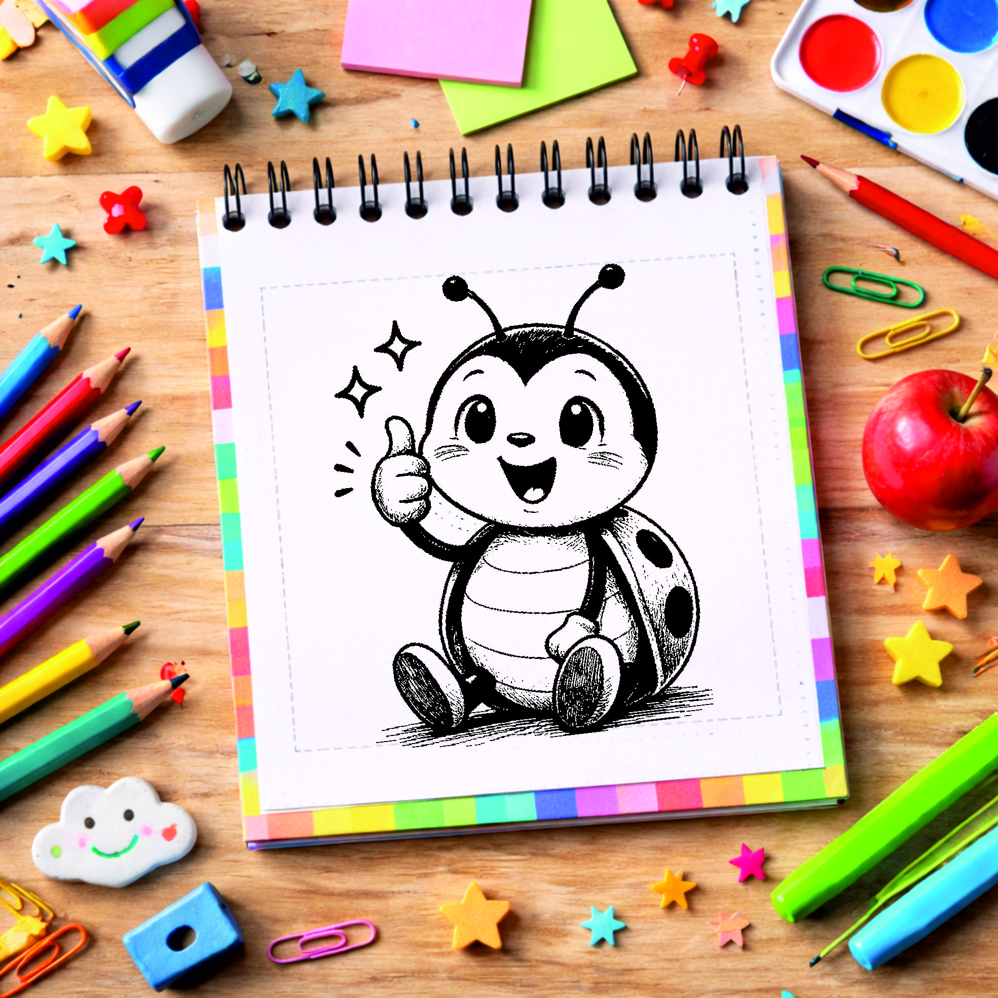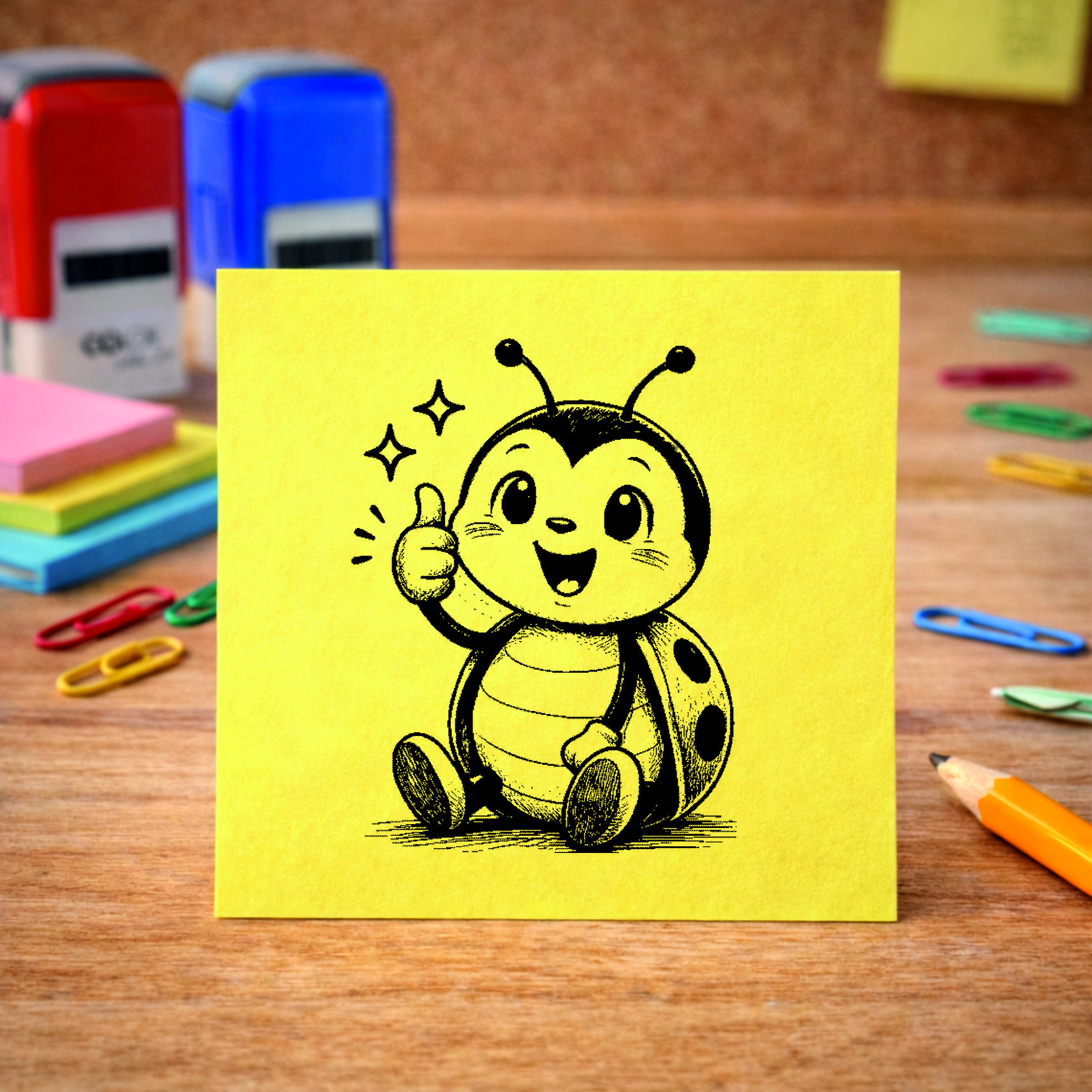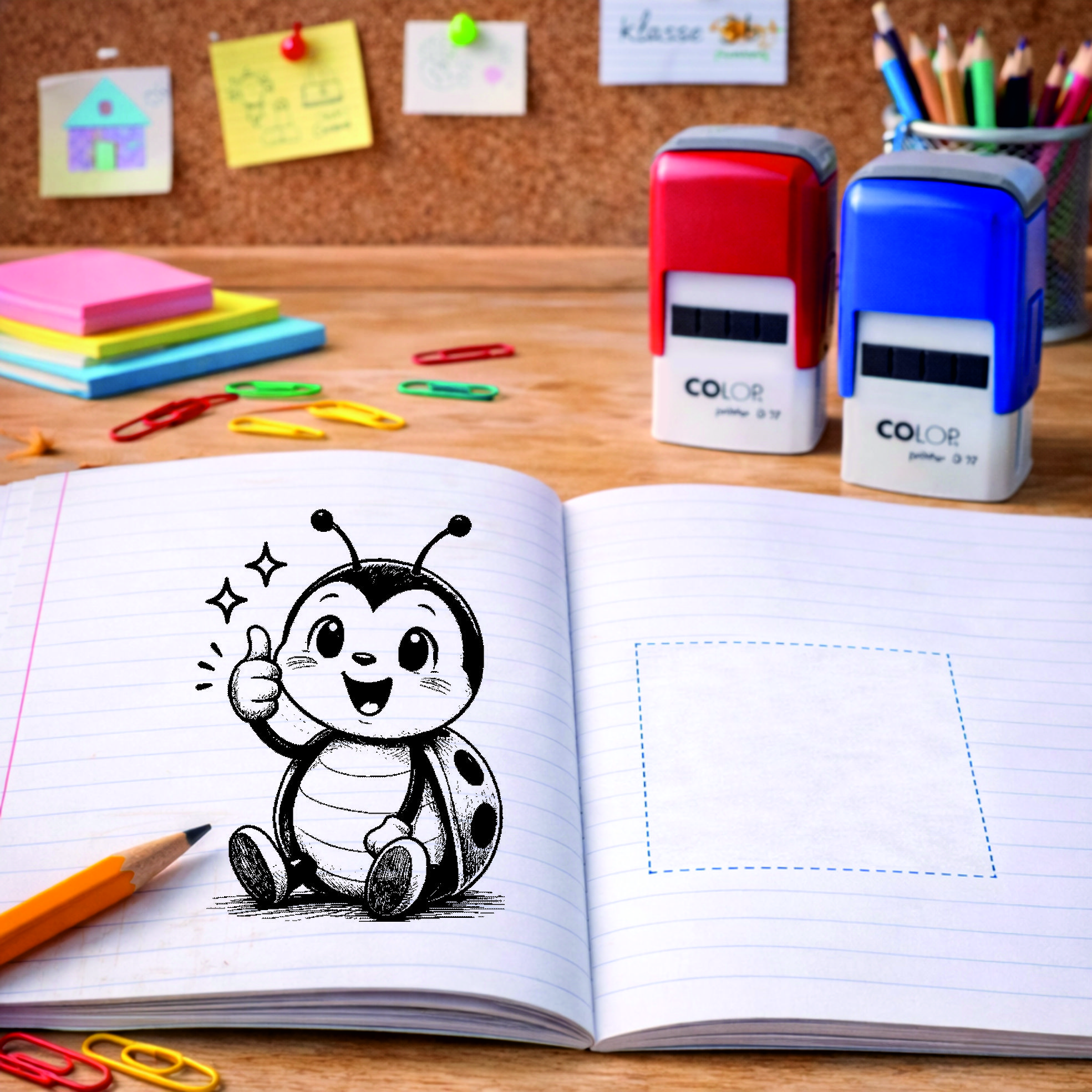 Lehrer Automatikstempel Marienkäfer Motivationsstempel Schüler – Tiermotive Daumen hoch – Abdruck 16 x 16 mm