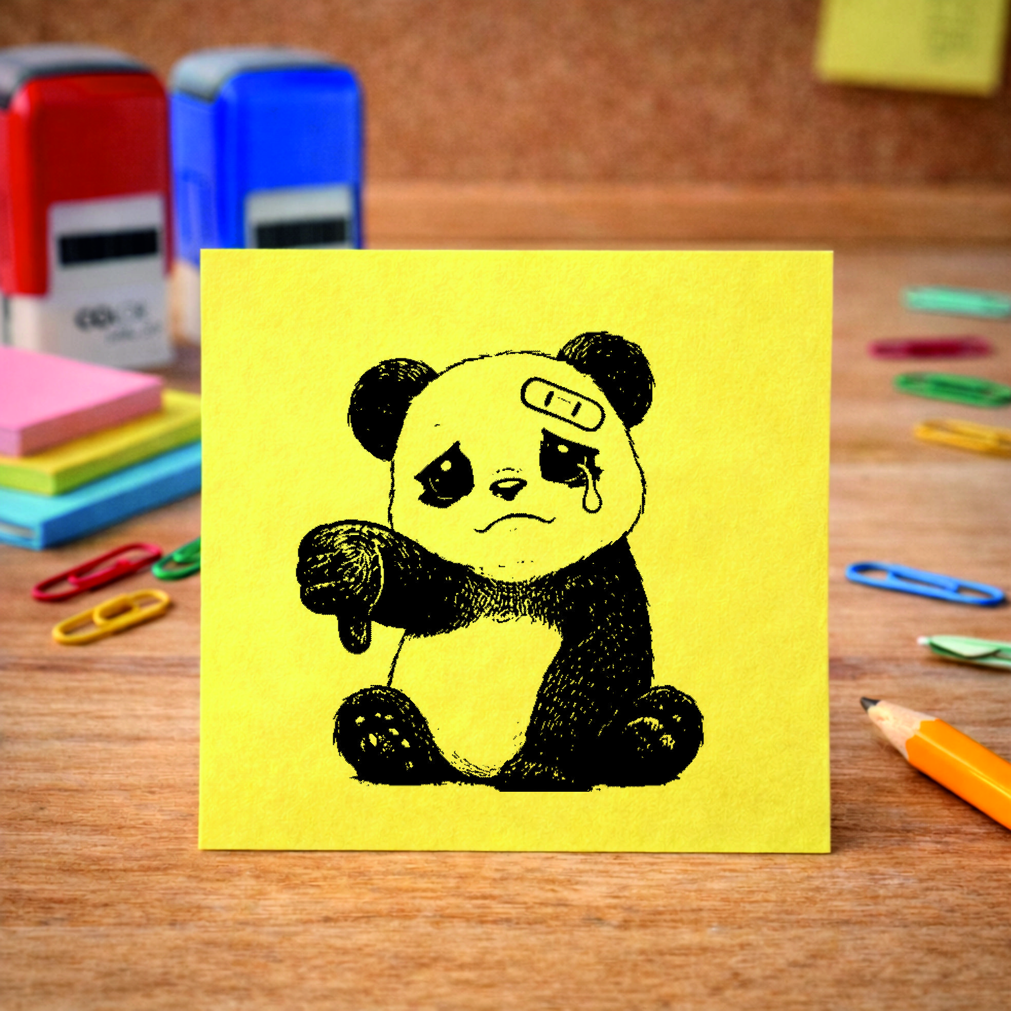 Lehrer Automatikstempel Panda Motivationsstempel Schüler – Tiermotive Daumen runter – Abdruck 16 x 16 mm