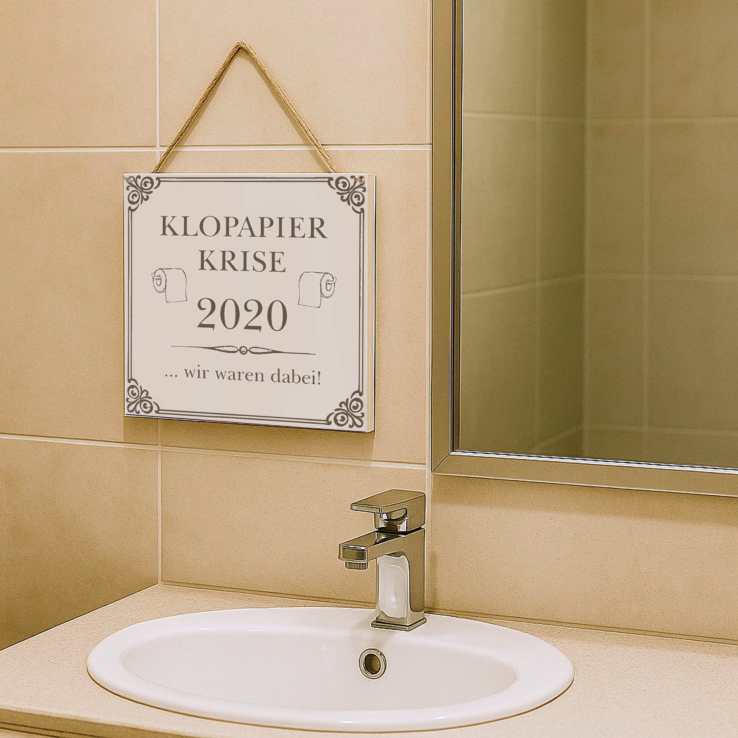 Lustiges Toilettenschild "Klopapierkrise 2020" – Deko 15×15 cm