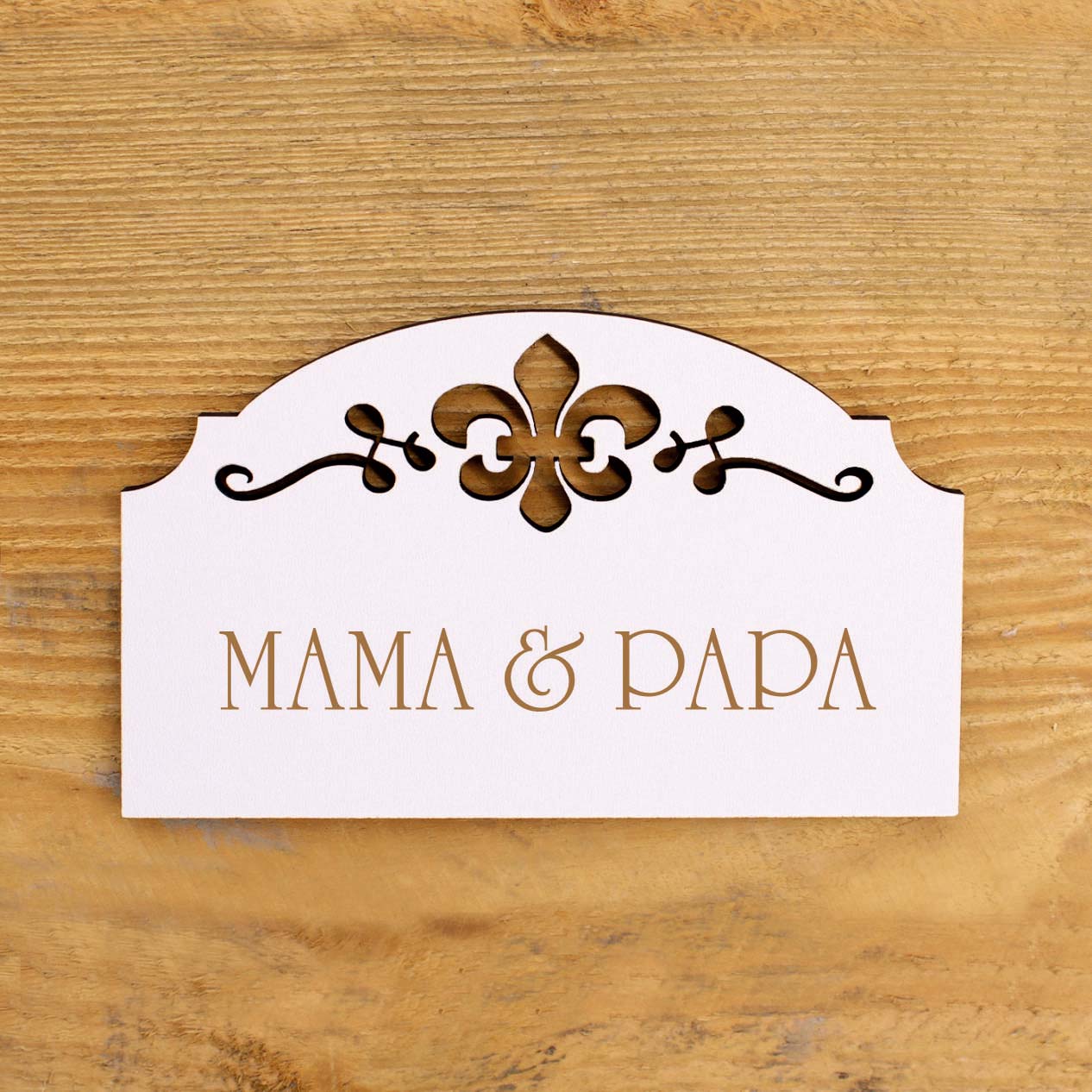 Sie sind auf der Suche nach einer Deko Idee für Ihre Türen im Haus oder einer Orientierungshilfe bzw. Hinweisschildern für die Wohnung? Unser selbstklebendes „Mama & Papa“ Türschild für das Elternschlafzimmer mit Ornamenten ist dafür eine ideale Lösung. Unsere gravierten Vintage Türschilder aus Holz mit Schriftzug eignen sich ebenso als Wand Deko oder Zimmer Deko.