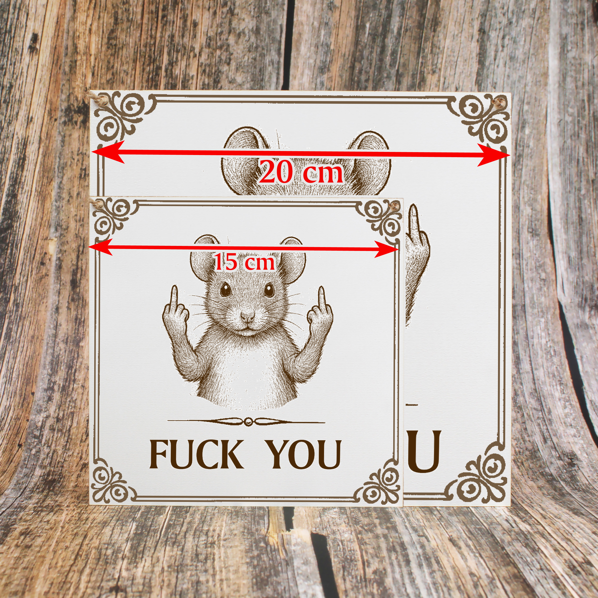 Maus Wandschild „Fuck You“ – Weißes HDF-Dekoschild 15×15 cm (auch 20×20 cm)