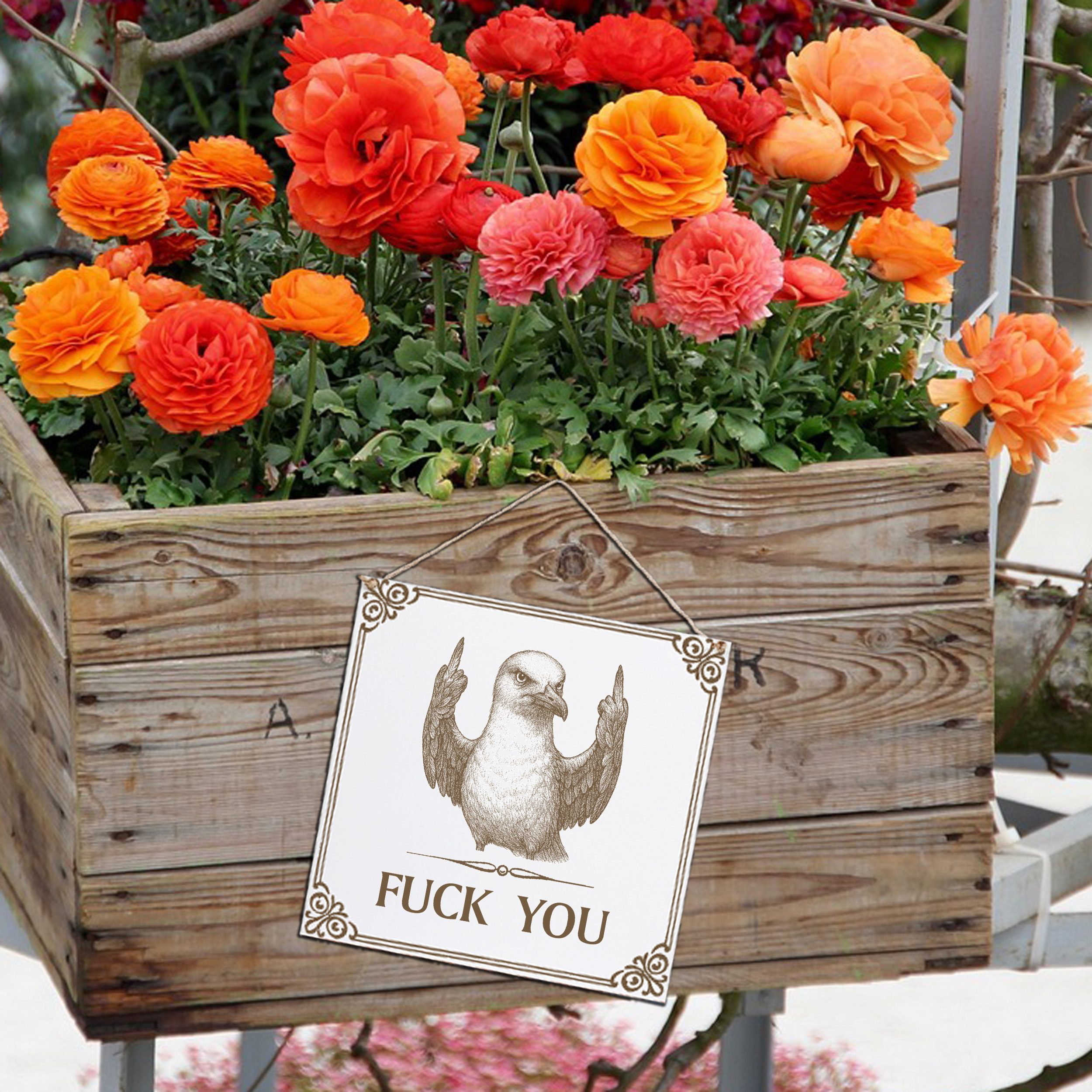 Möwe Wandschild „Fuck You“ – Weißes HDF-Dekoschild 15×15 cm (auch 20×20 cm)