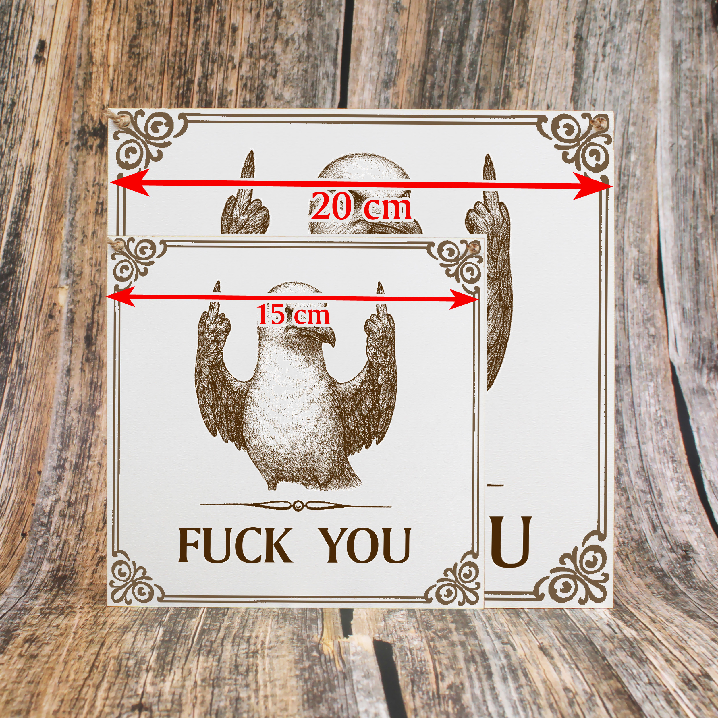 - Dieses weiße HDF-Schild bringt Humor und Provokation in deine Wohnung: Eine lustige Möwe mit ausgestrecktem Stinkefinger und der Gravur „Fuck You“. Das Motiv ist dauerhaft ins Material eingraviert. Damit ist es ein langlebiges Dekoschild, das garantiert für Gesprächsstoff sorgt