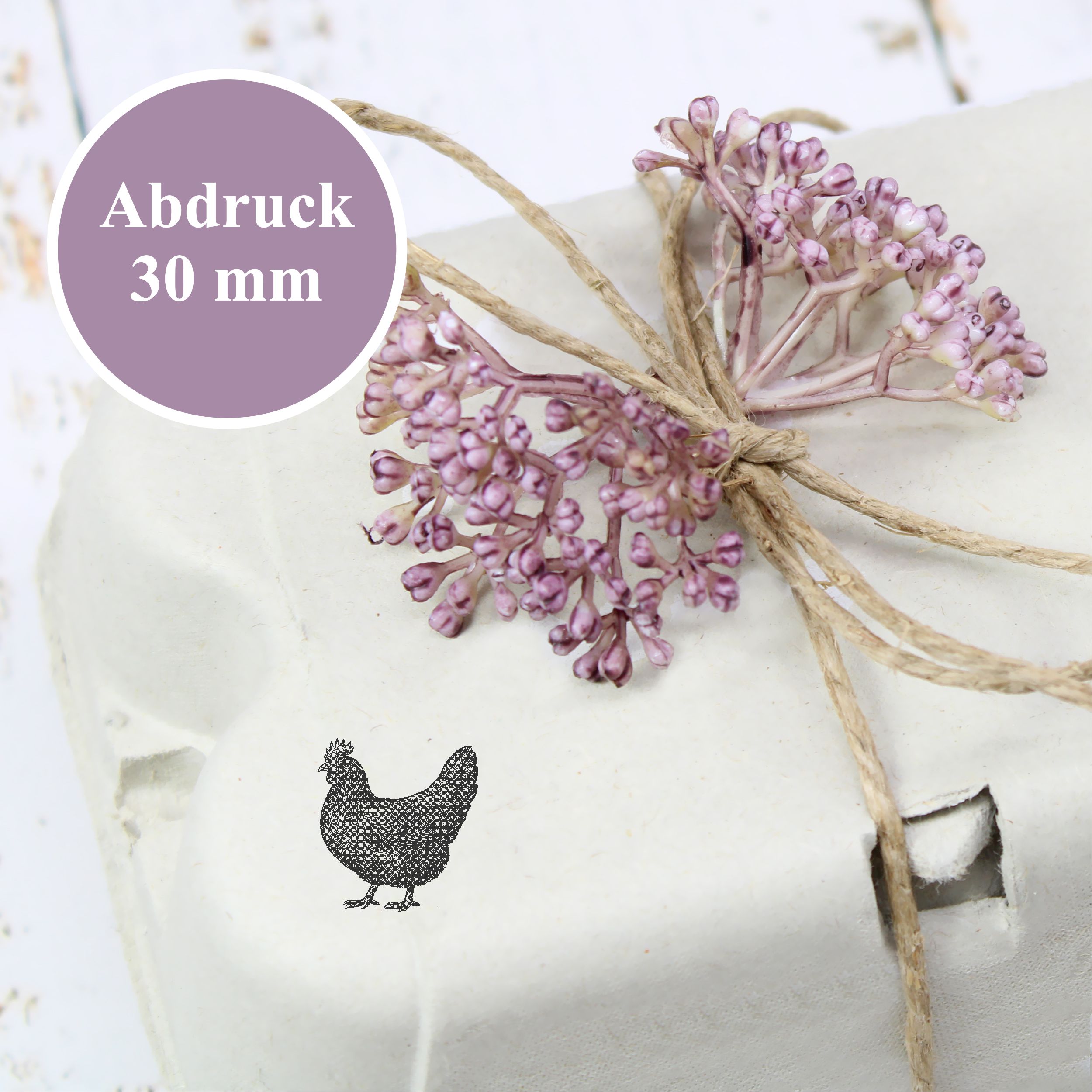 Unser Holzstempel mit Hühnermotiv verbindet detailreiche Motive mit langlebiger Qualität. Wählen Sie aus verschiedenen Hühnermotiven – darunter traditionelle Landhuhn-Arten wie Sperber oder Augsburger – in 3 praktischen Größen (Ø 20 mm, 30 mm, 60 mm), perfekt abgestimmt für kleine, mittlere und große Kreativarbeiten.