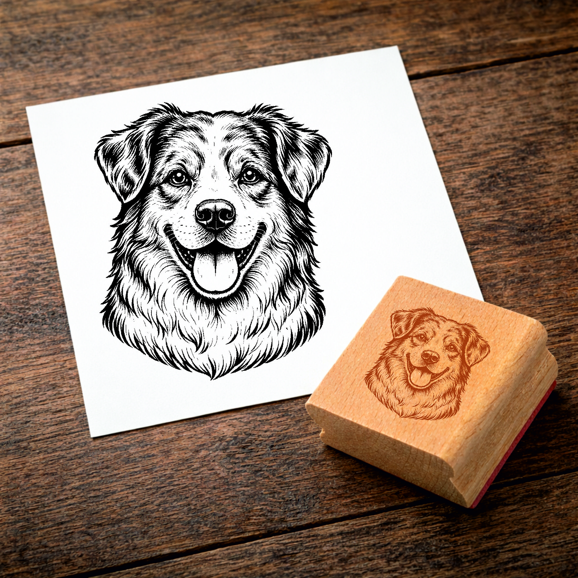 Motivstempel Australian Shepherd Hund - Stempel mit Hundemotiv - Holzstempel Abdruck 48 x 42 mm