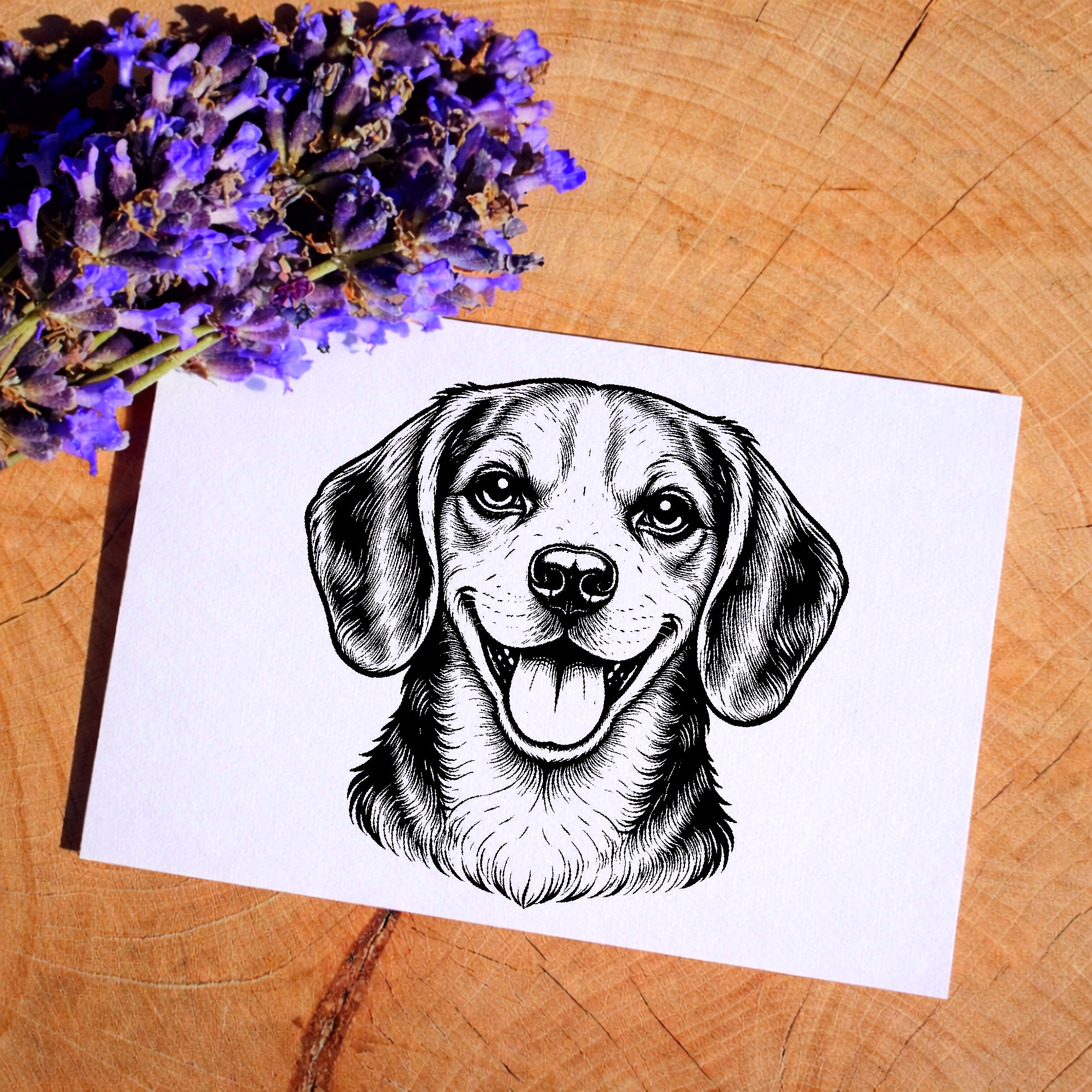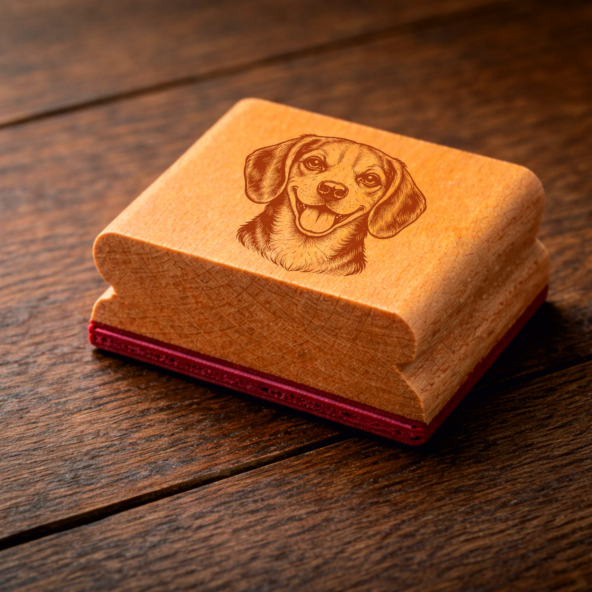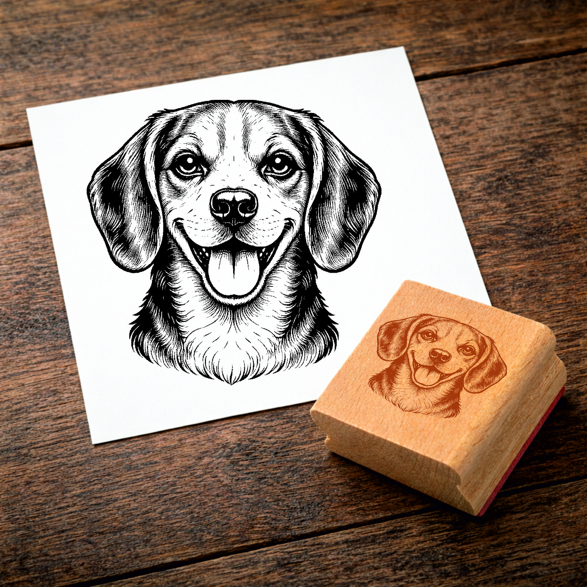 Motivstempel Beagle Hund - Stempel mit Hundemotiv - Holzstempel Abdruck 48 x 47 mm
