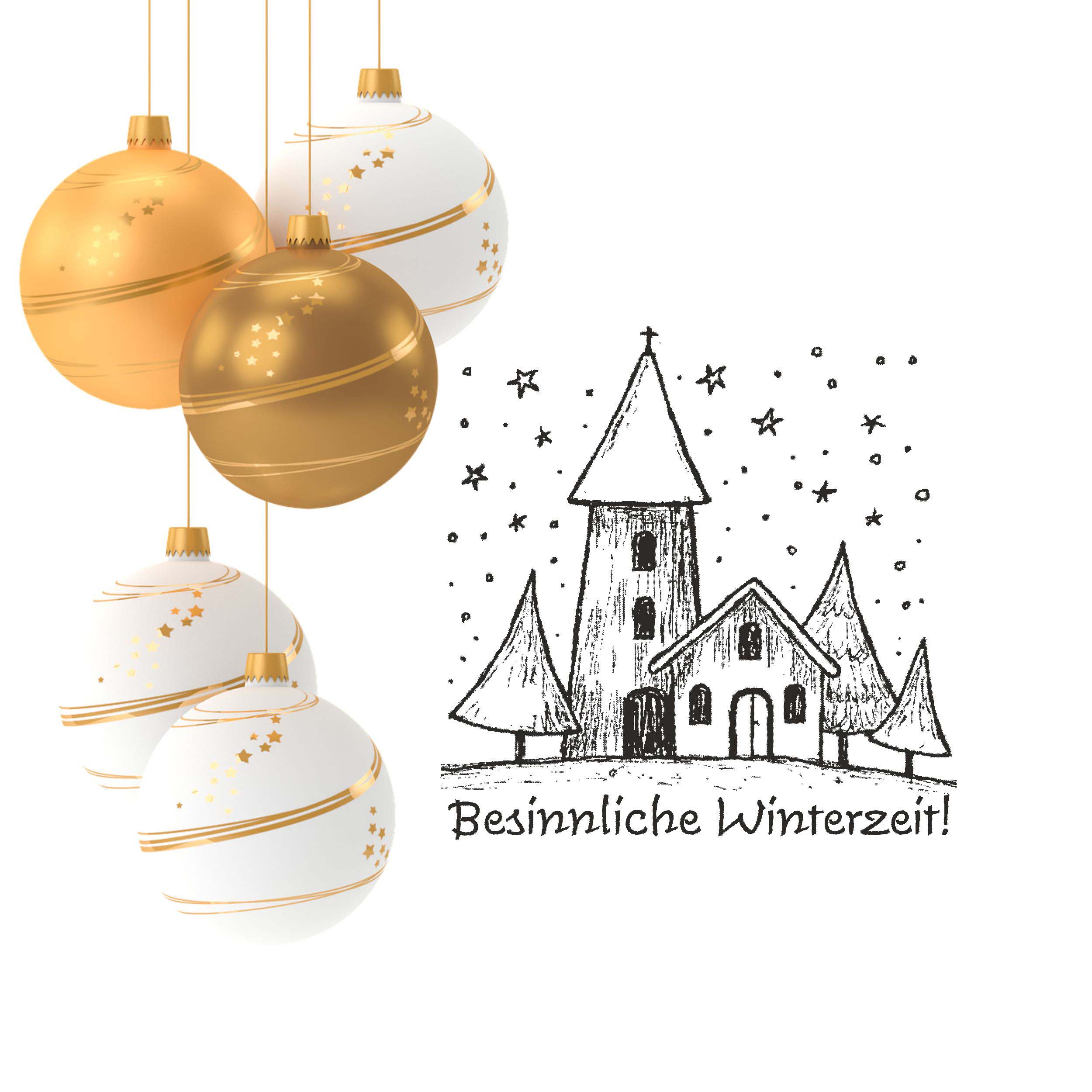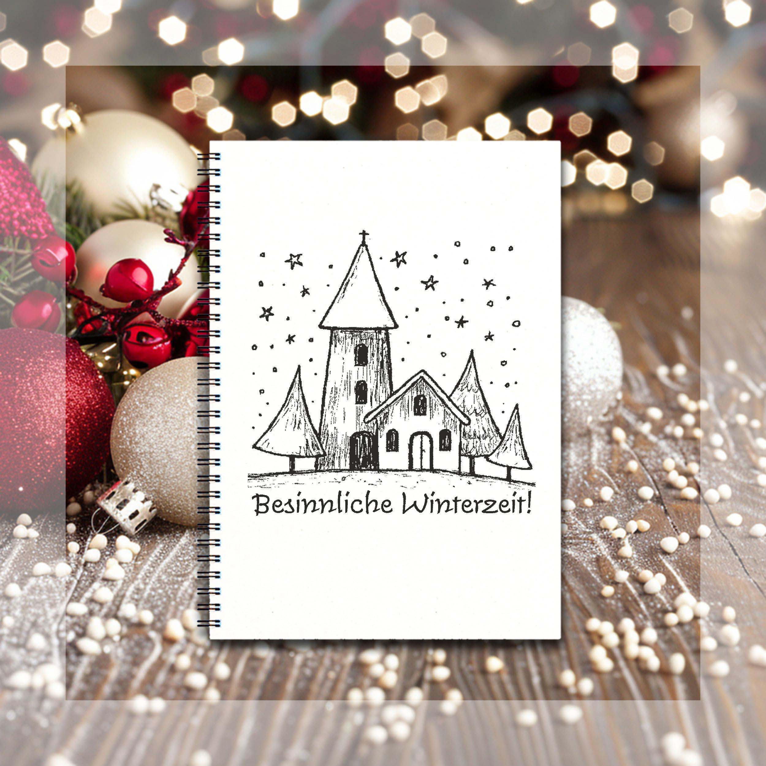Motivstempel Besinnliche Winterzeit - Winter Dorf Kirche Stempel Holzstempel 58 mm x 58 mm