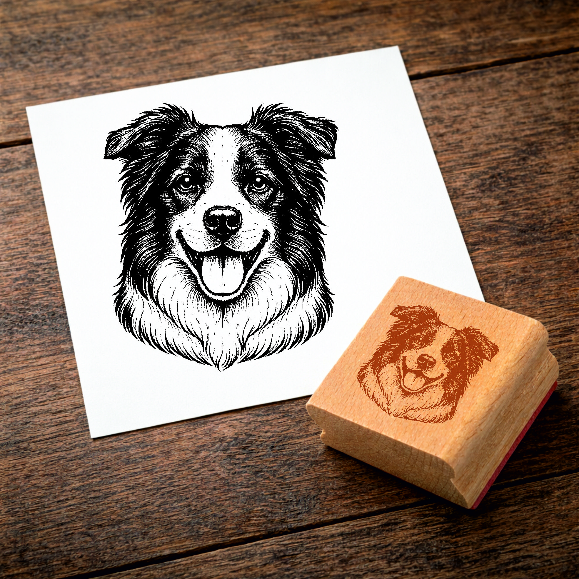 Produktinformationen "Motivstempel Border Collie Hund - Stempel mit Hundemotiv - Holzstempel Abdruck 48 x 42 mm"