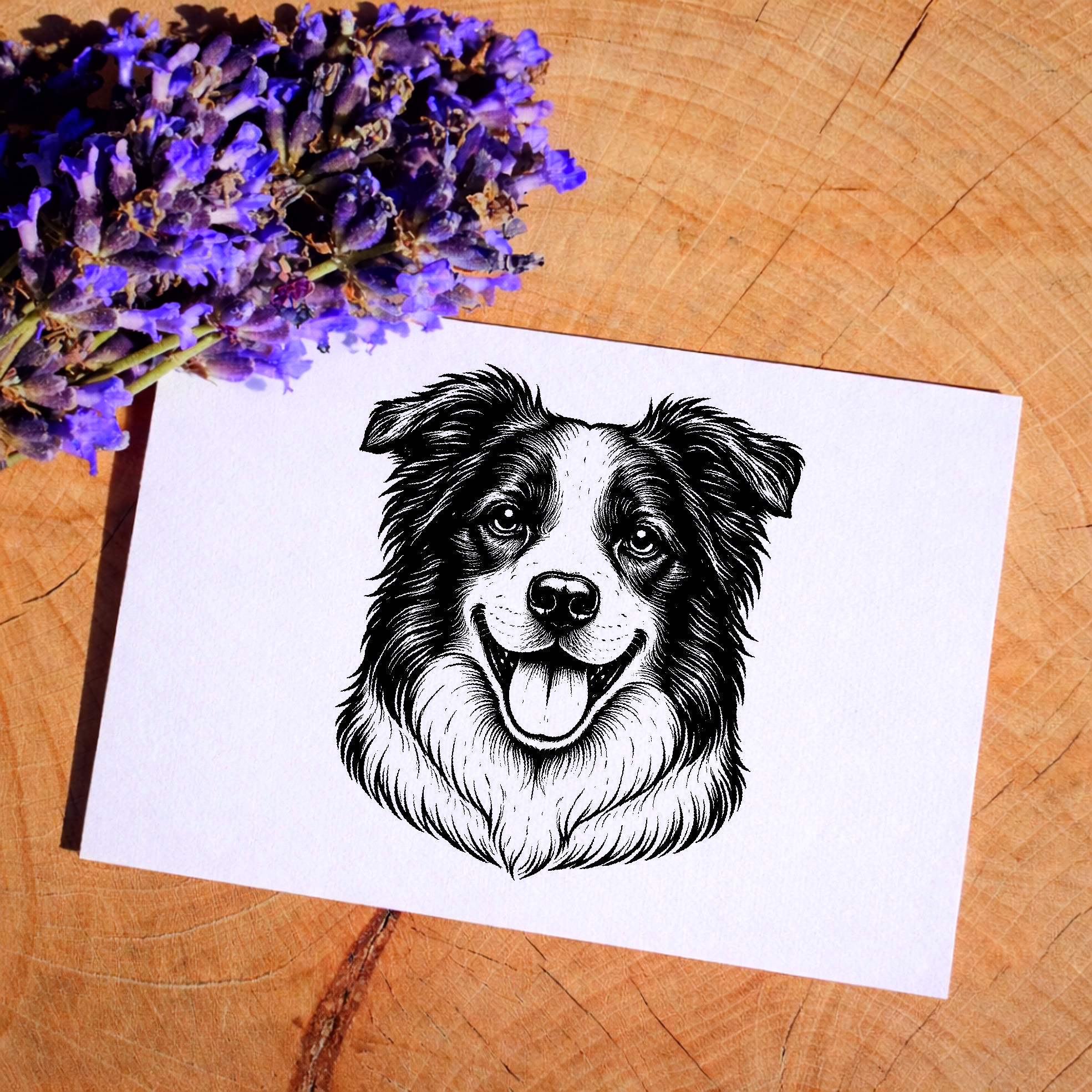 Motivstempel Border Collie Hund - Stempel mit Hundemotiv - Holzstempel Abdruck 48 x 42 mm