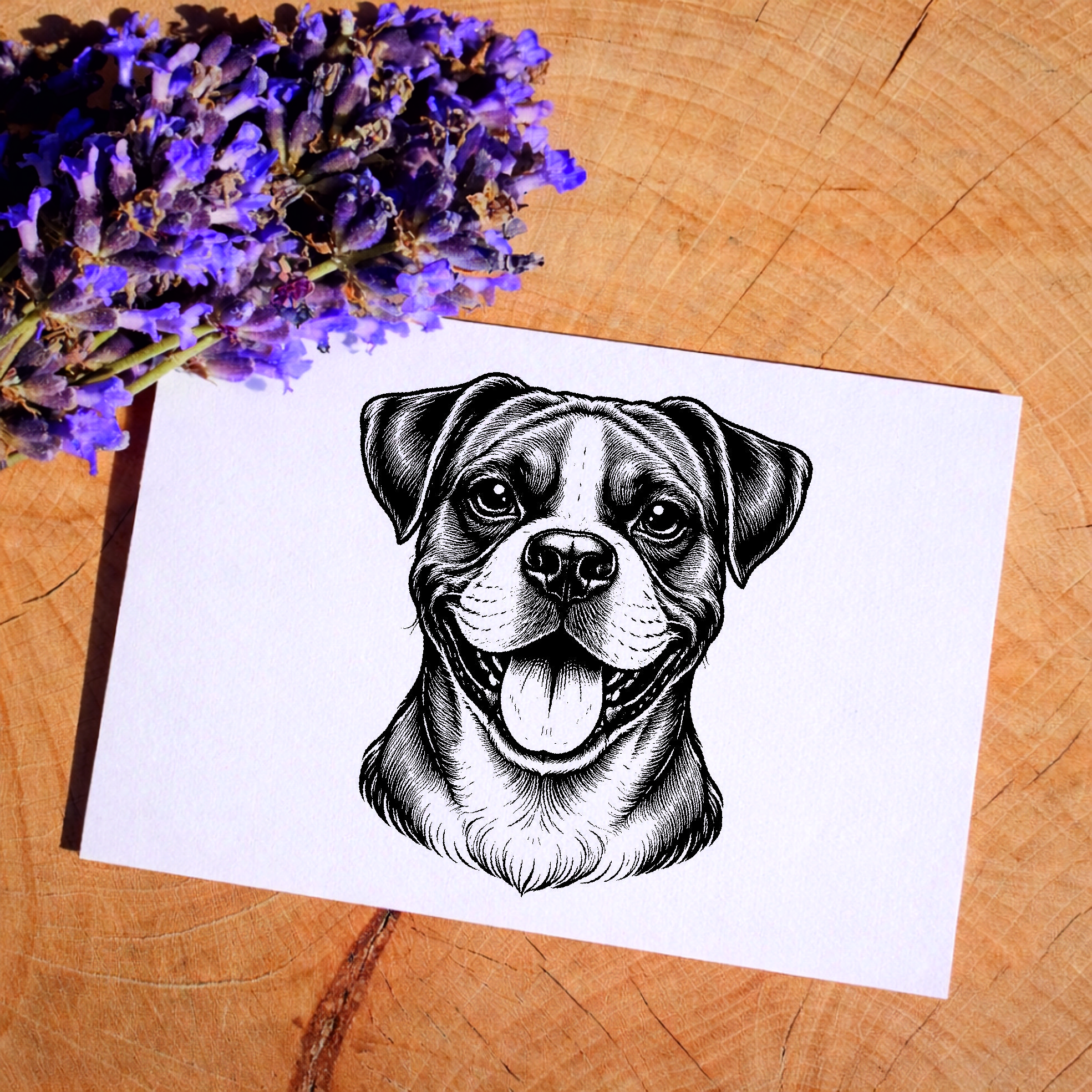 Motivstempel Boxer Hund - Stempel mit Hundemotiv - Holzstempel Abdruck 42 x 48 mm