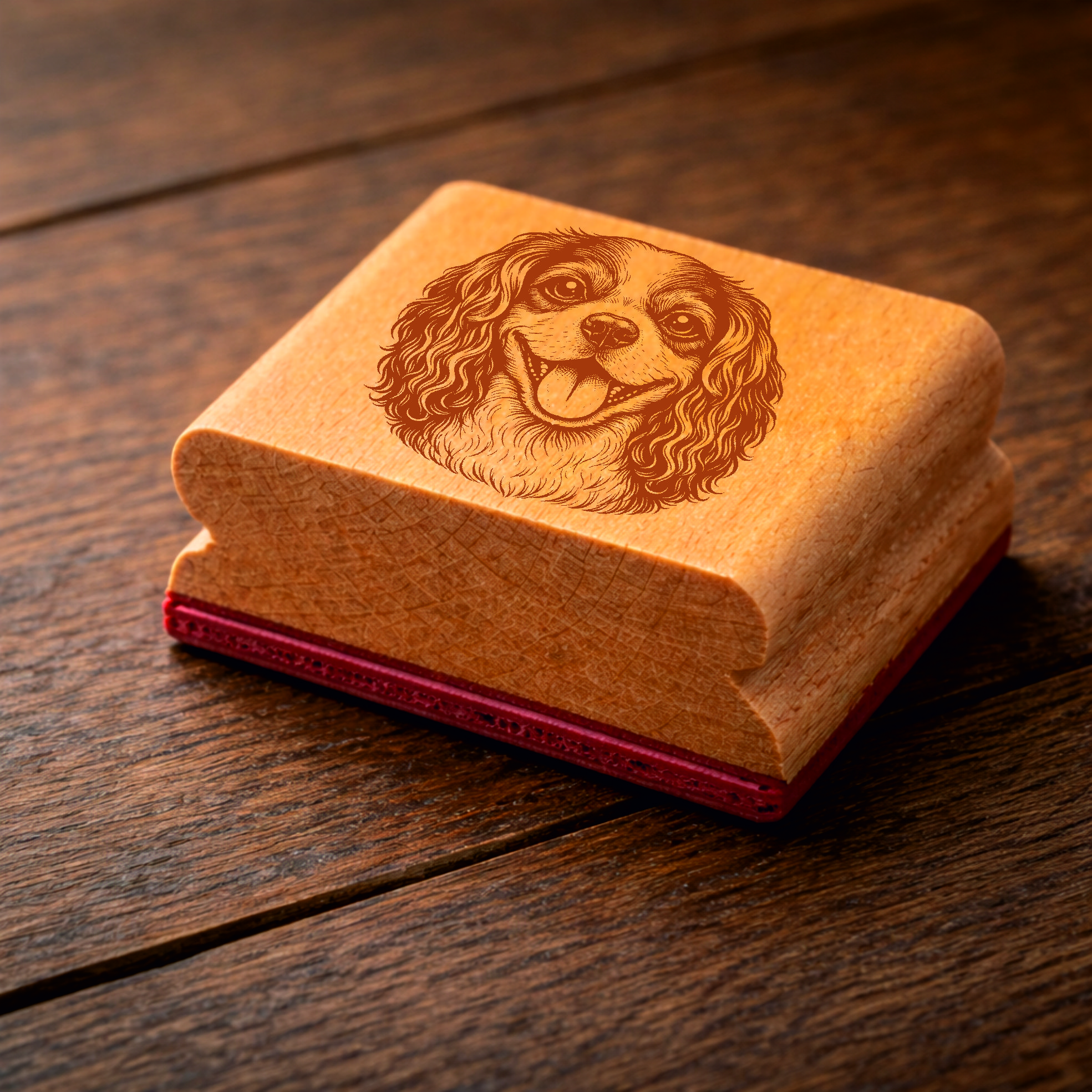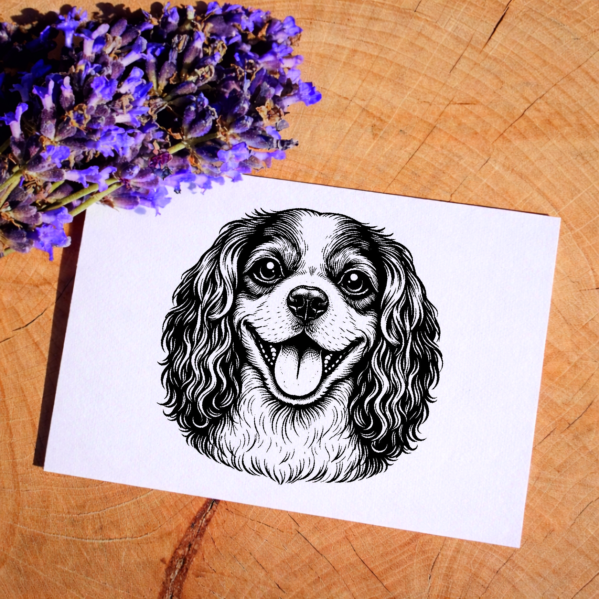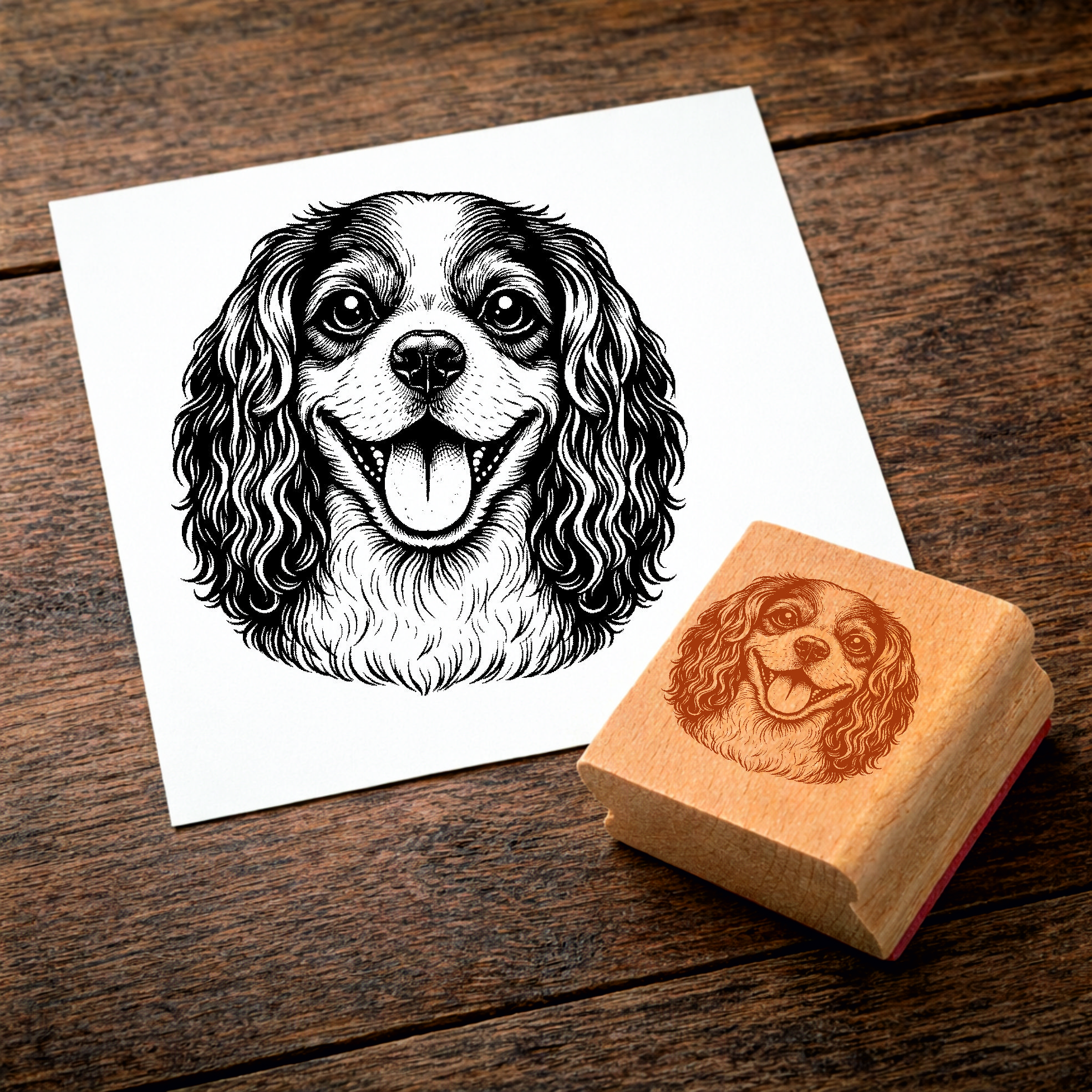 Motivstempel Cavalier King Charles Spaniel Hund - Stempel mit Hundemotiv - Holzstempel Abdruck 48 x 47 mm