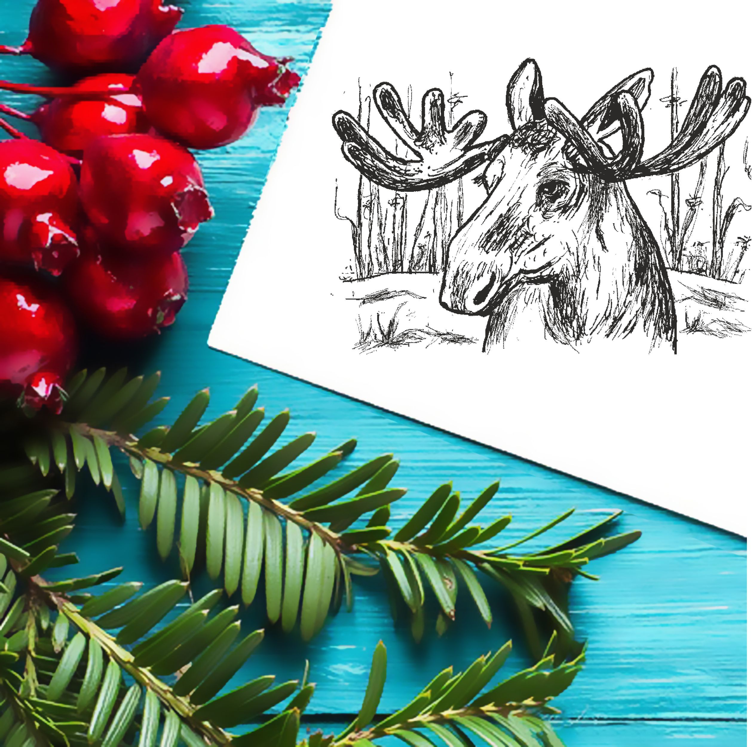 Motivstempel Elch Elchkopf Stempel Holzstempel 68 mm x 48 mm