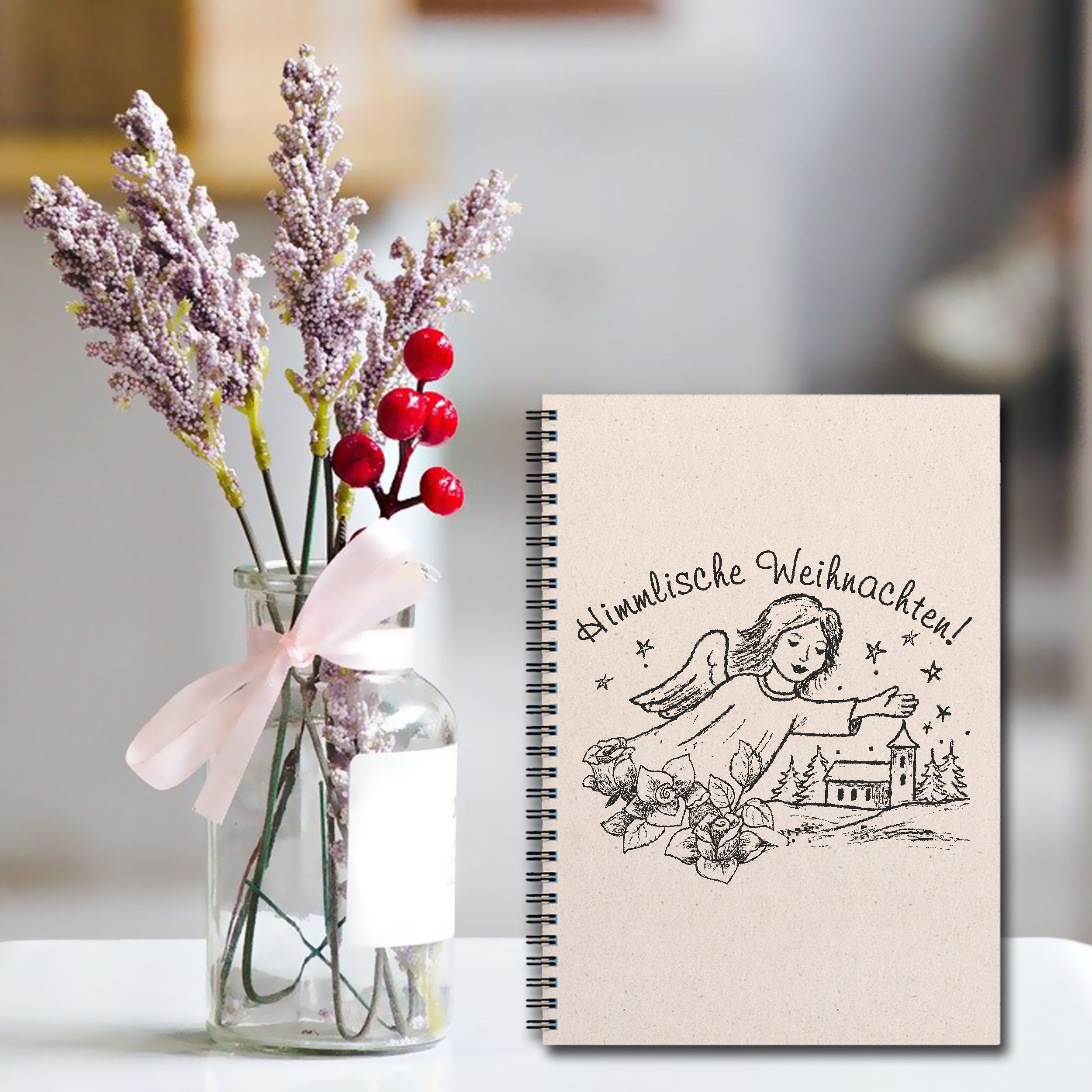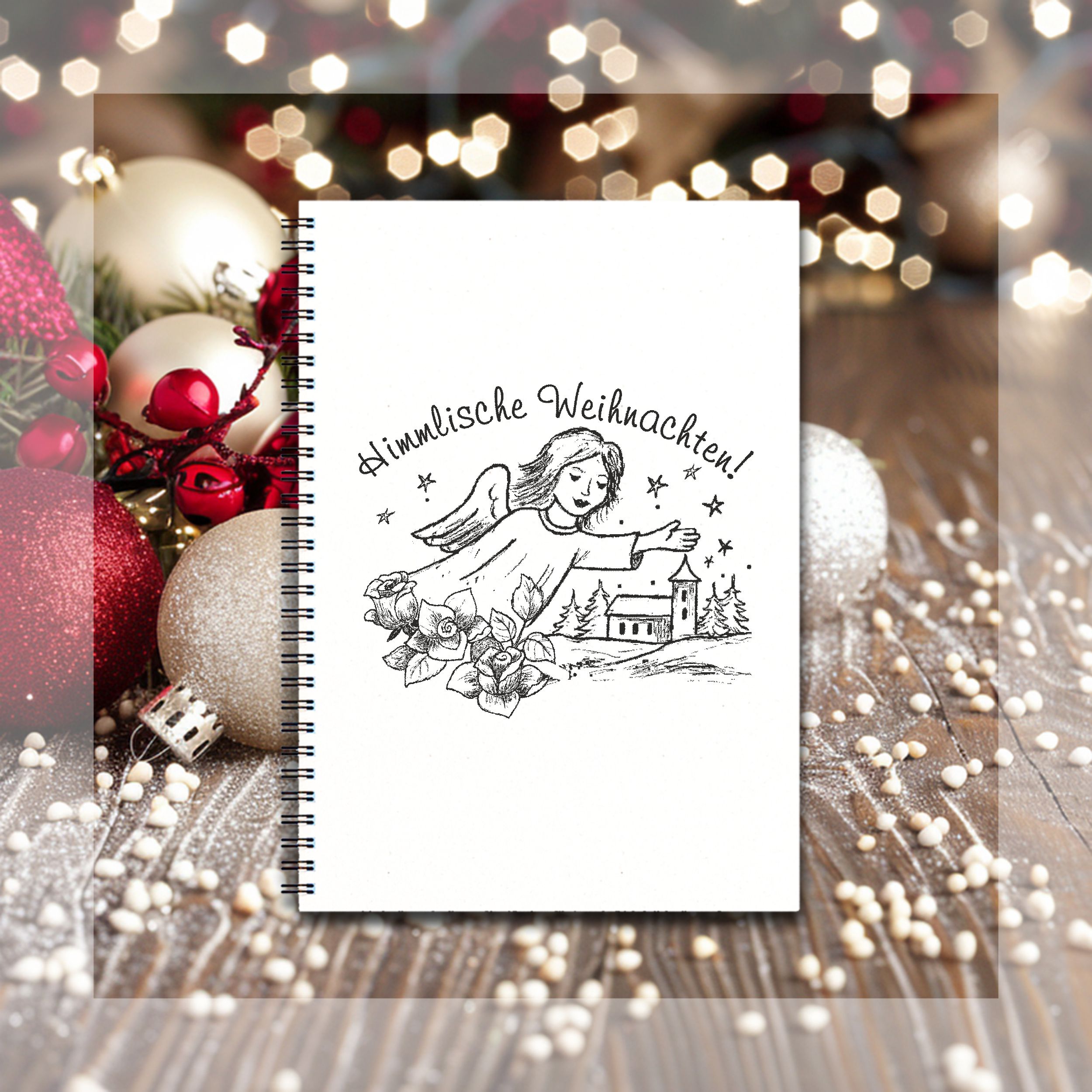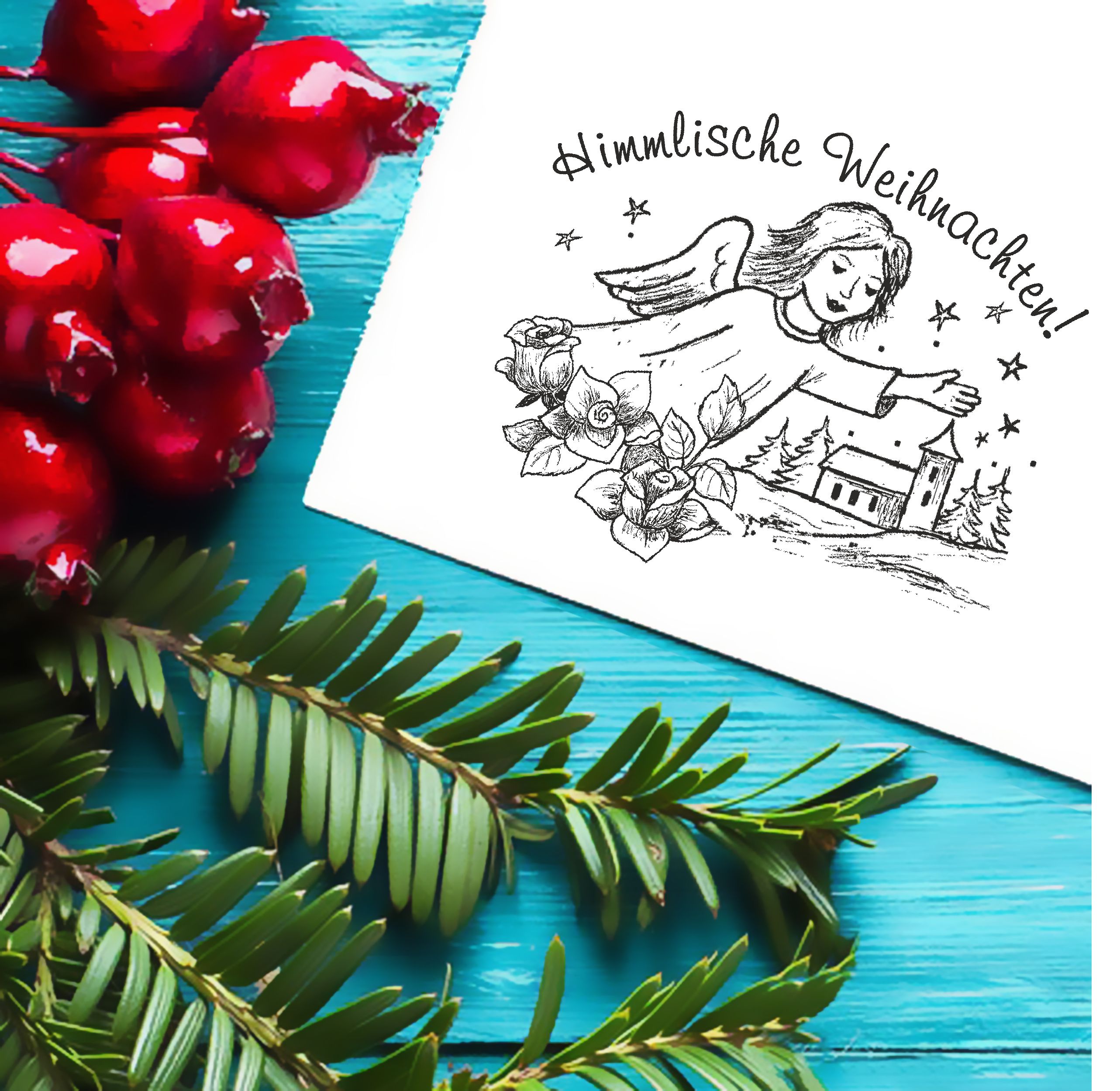 Motivstempel Engel Himmlische Weihnachten - Stempel Stadt Kirche Holzstempel Rosen 68mm x 58mm