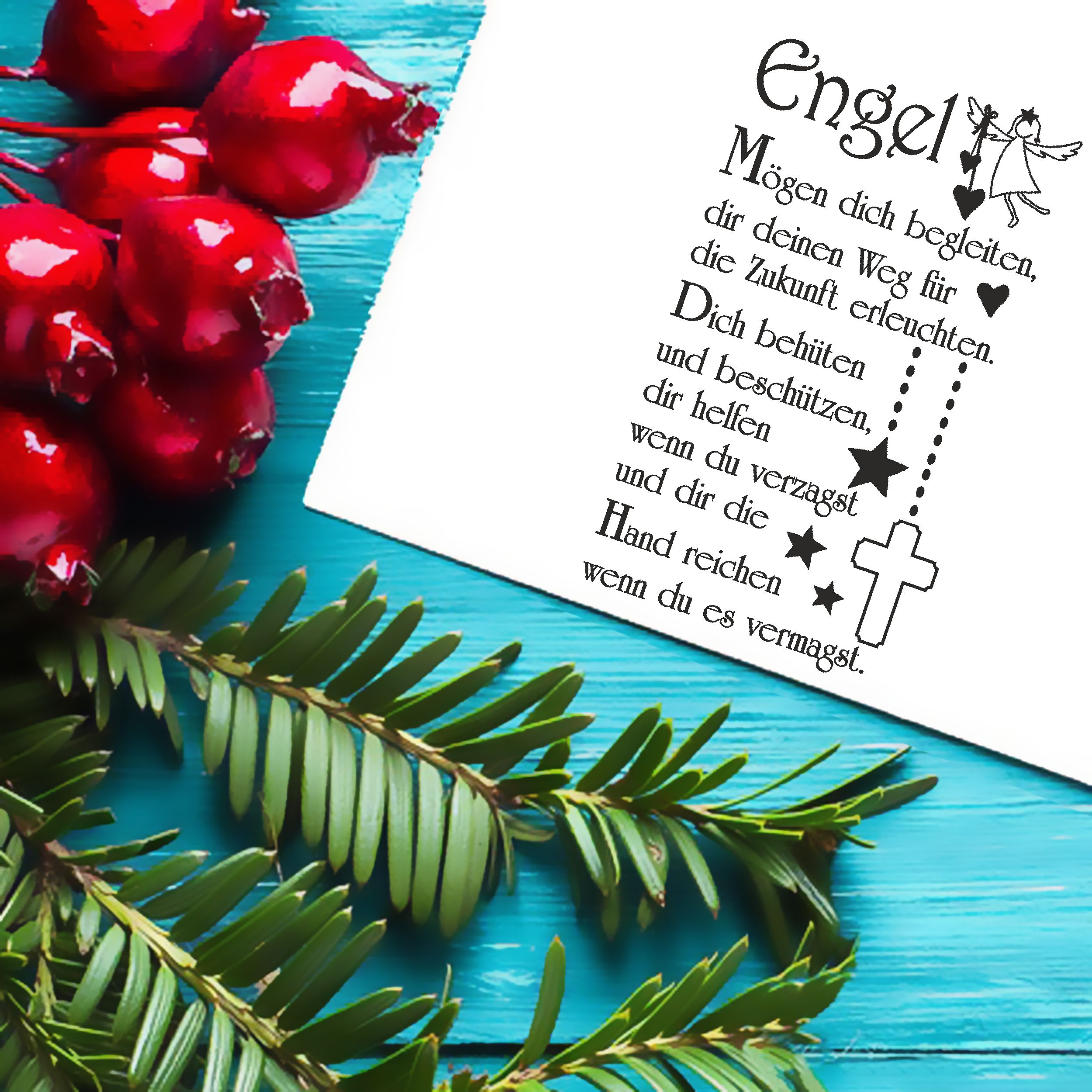 Motivstempel Engel Spruch Weihnachten - Weihnachtsstempel Stempel Schutzengel Holzstempel 38 mm x 68 mm