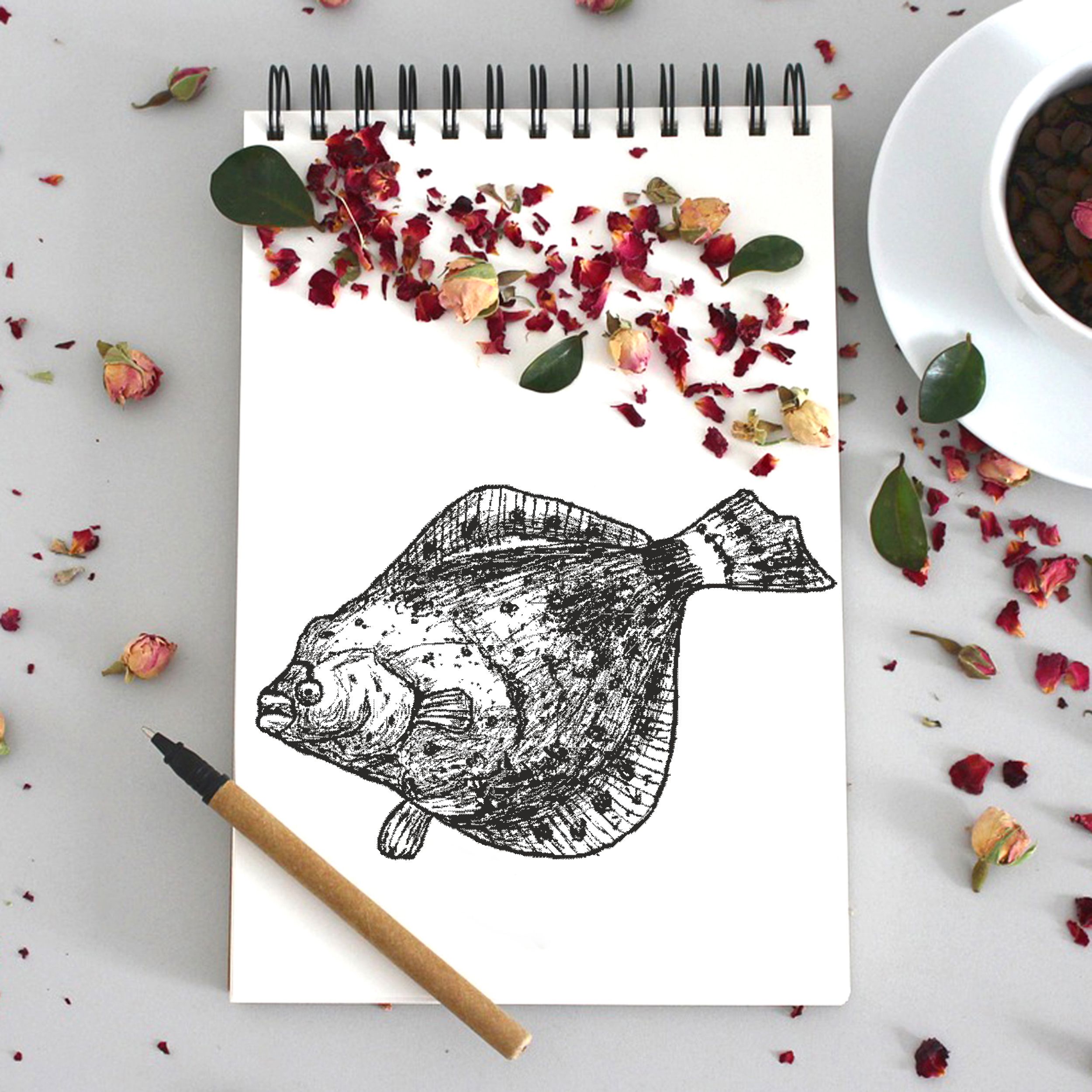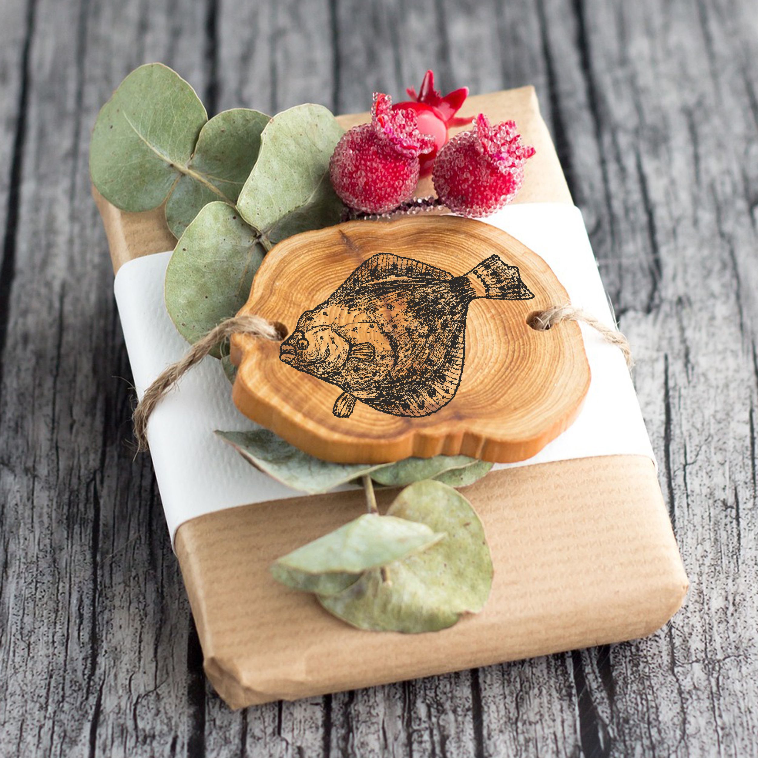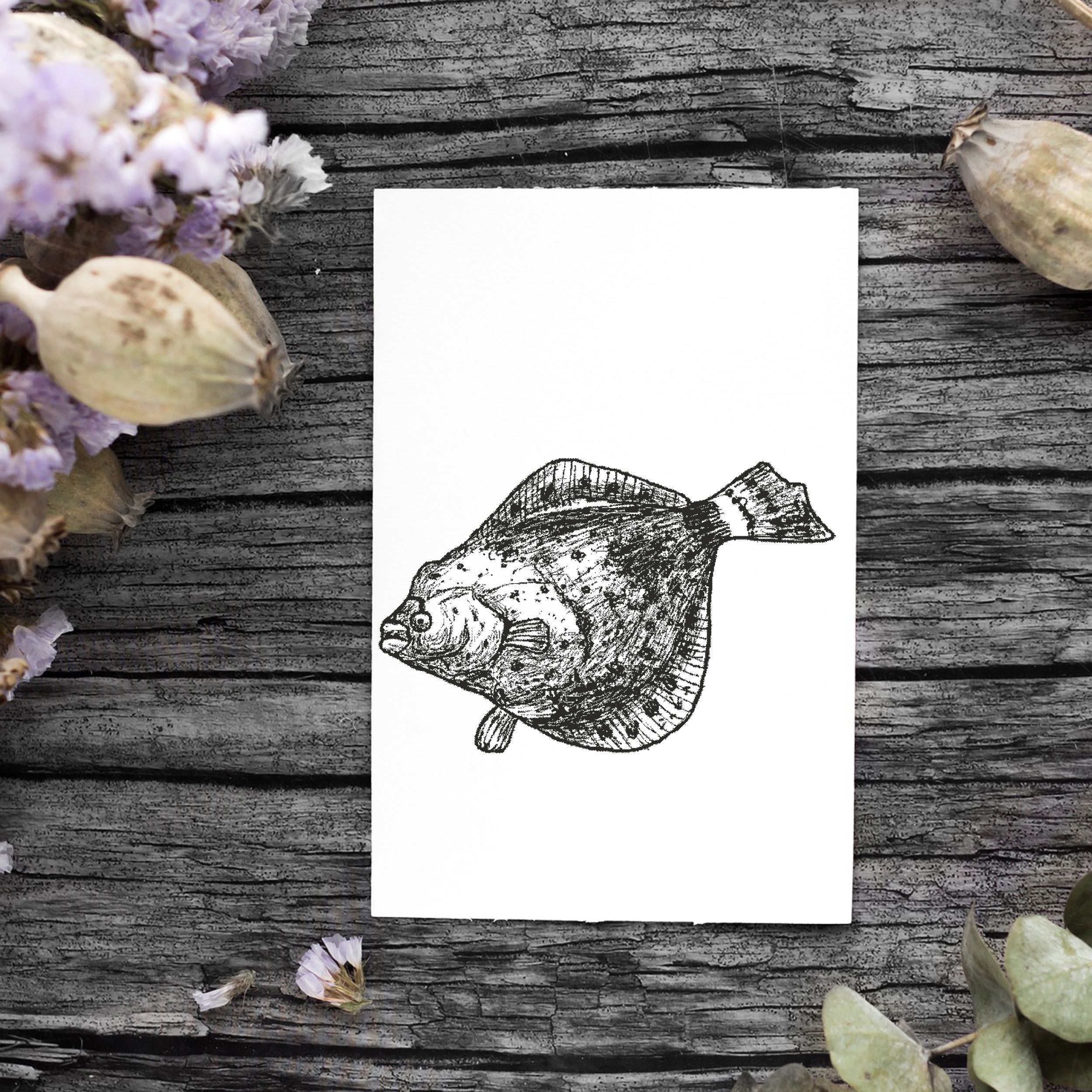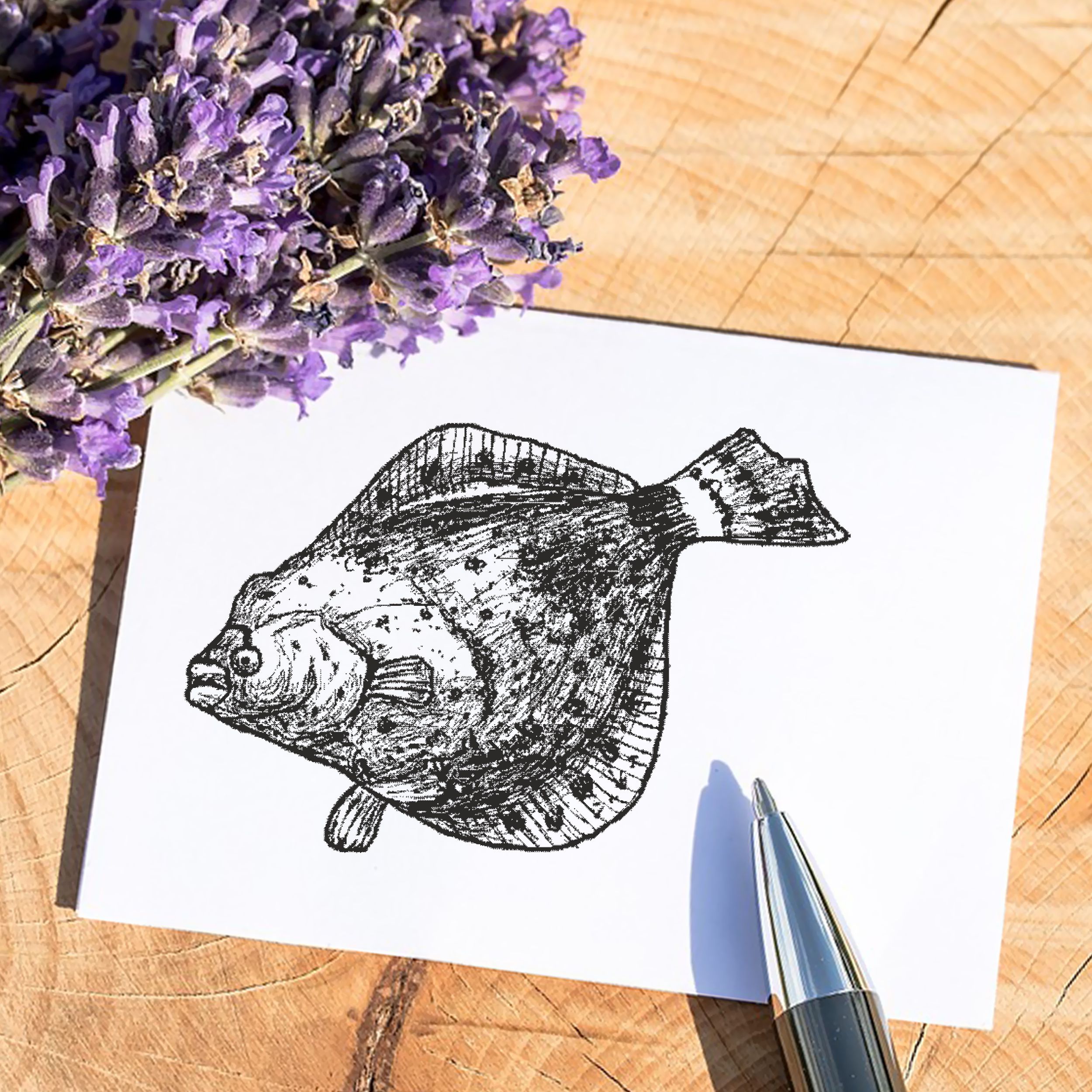 Motivstempel Flunder - Stempel Holzstempel 58 mm x 38 mm