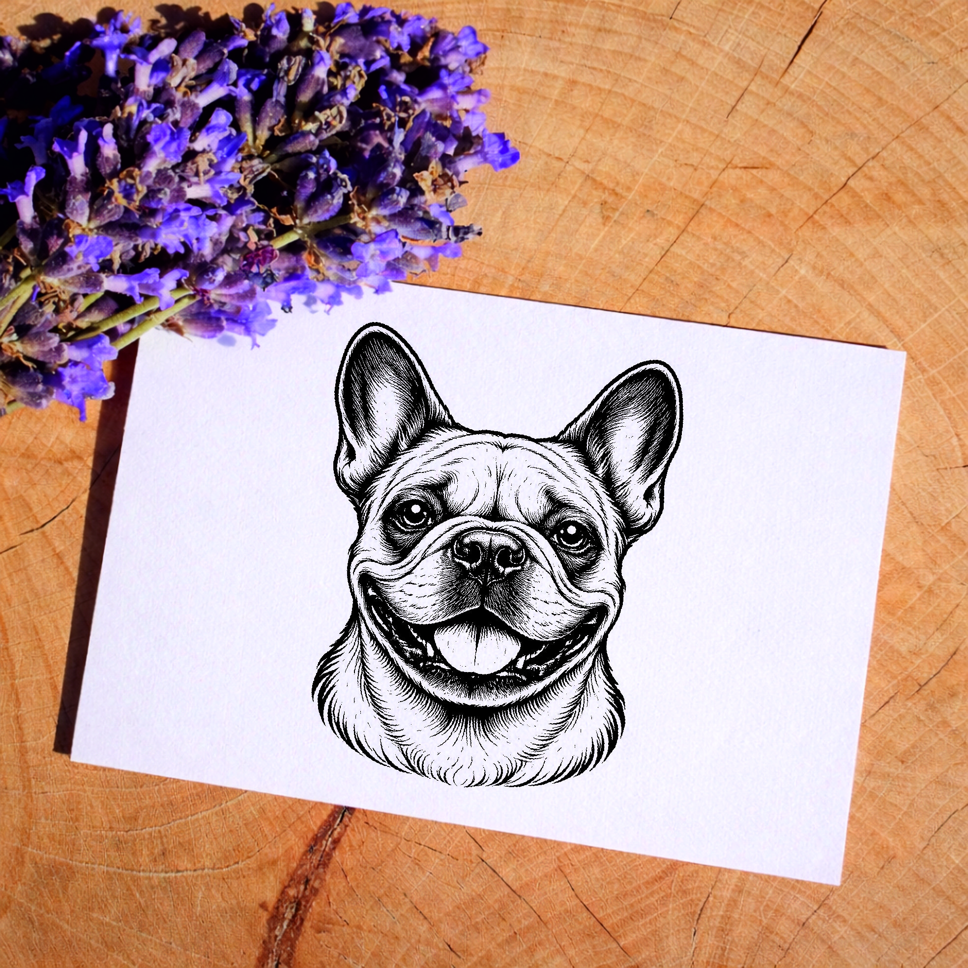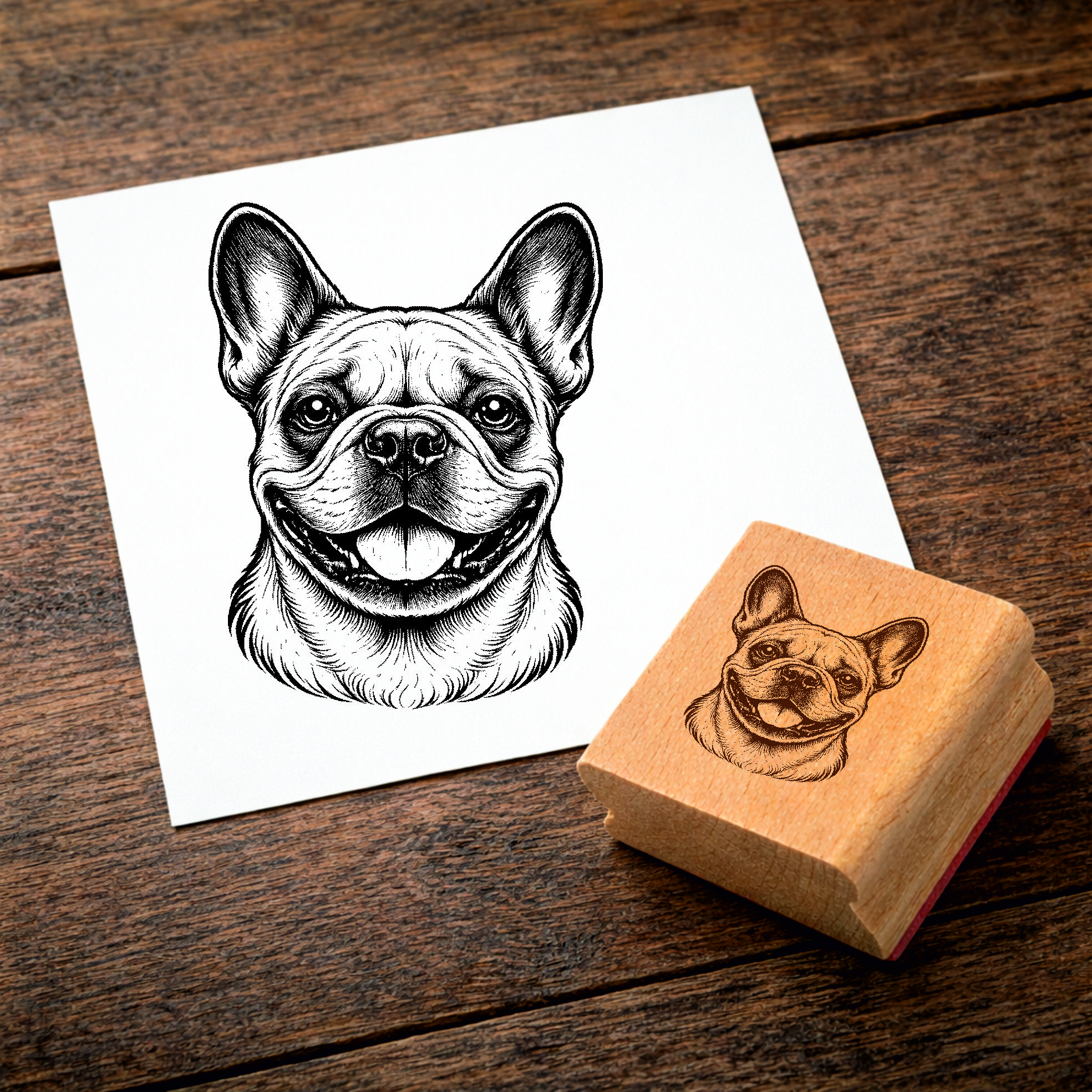Motivstempel Französische Bulldogge Hund - Stempel mit Hundemotiv - Holzstempel Abdruck 38 x 48 mm