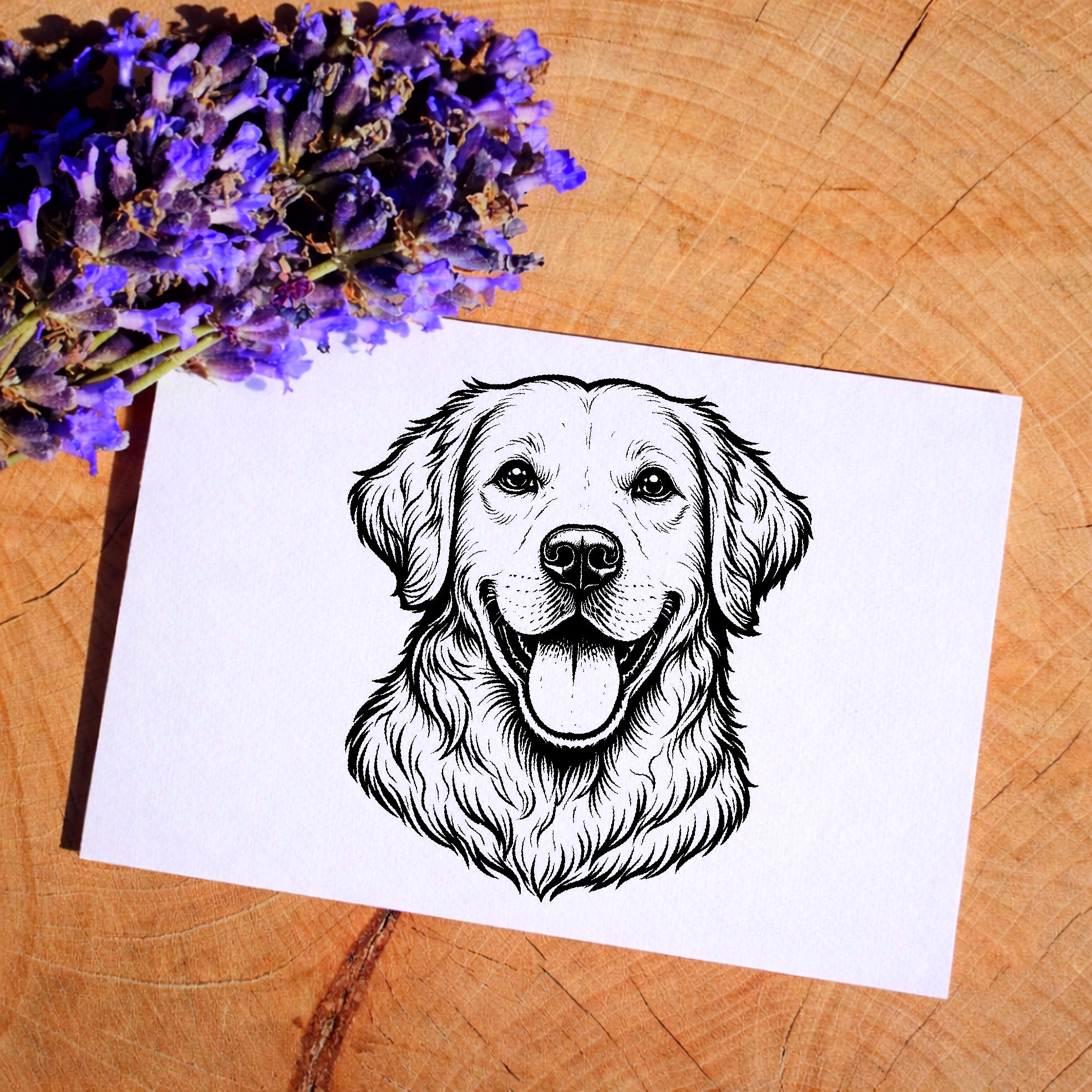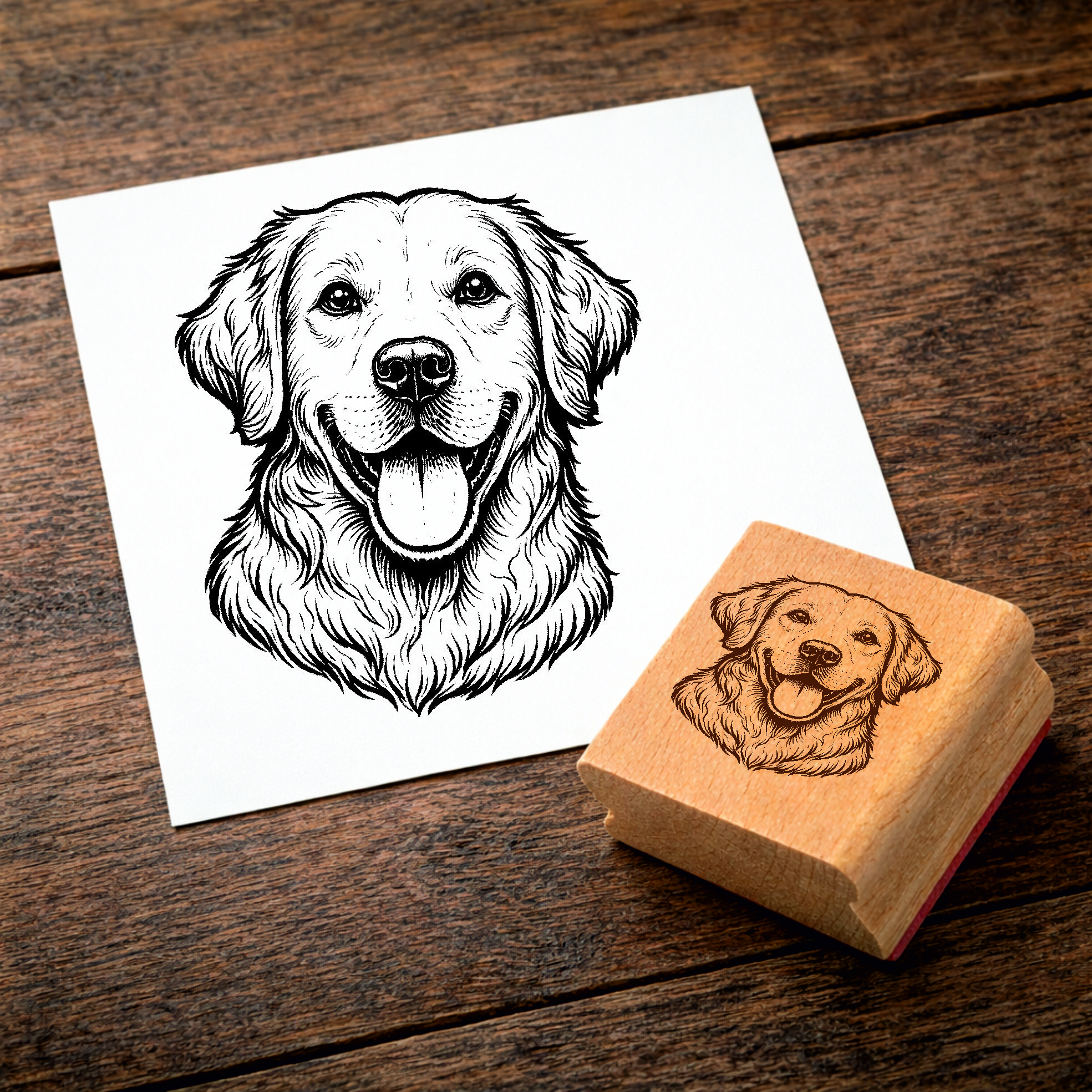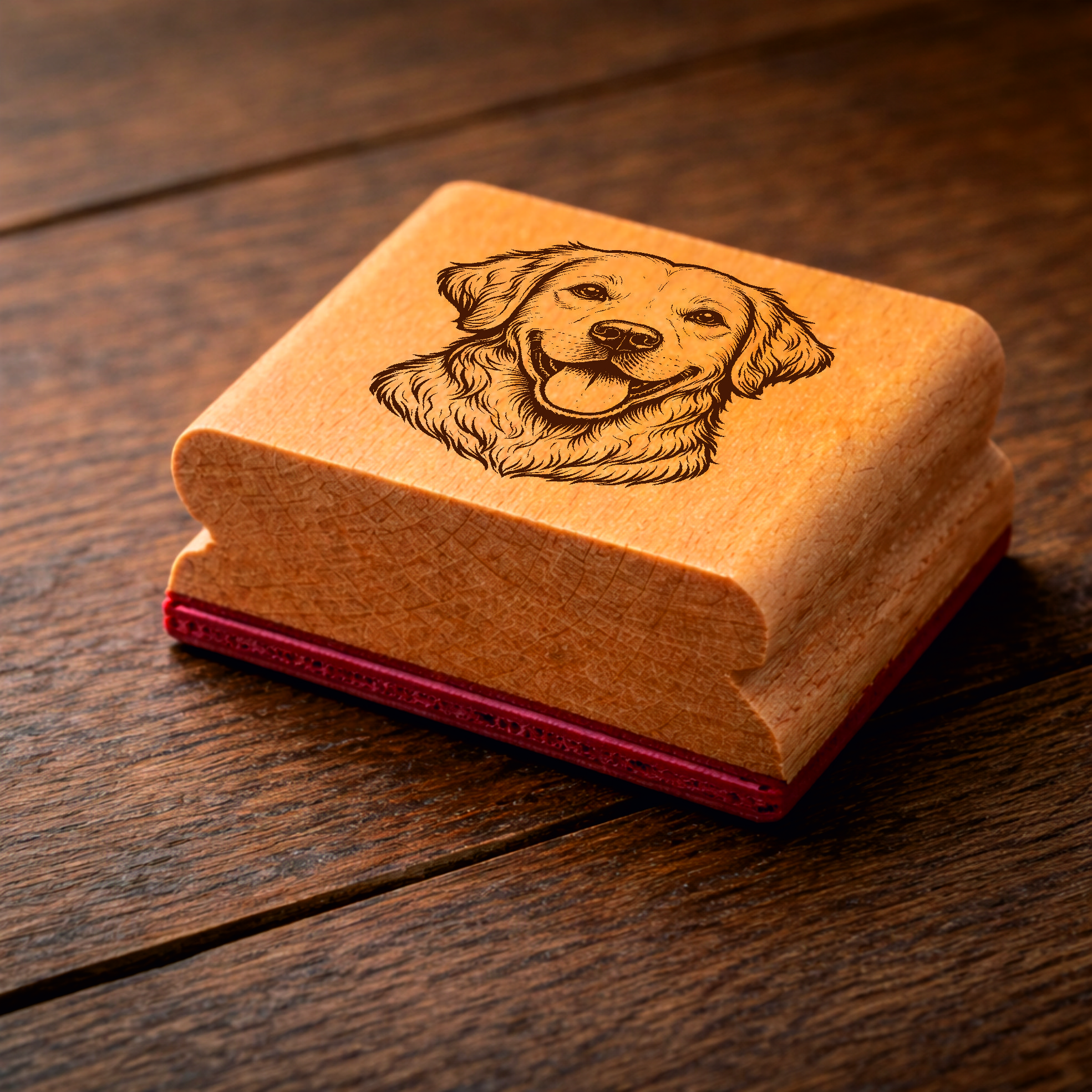 Motivstempel Golden Retriever Hund - Stempel mit Hundemotiv - Holzstempel Abdruck 42 x 48 mm