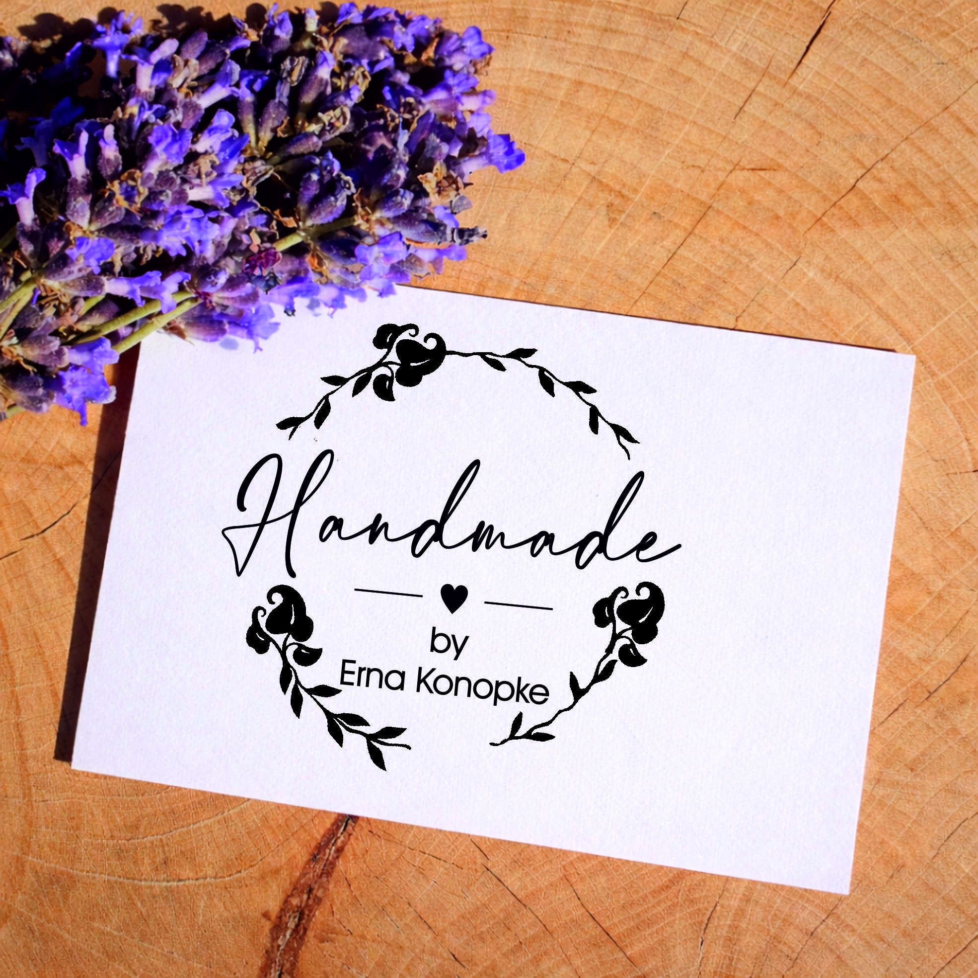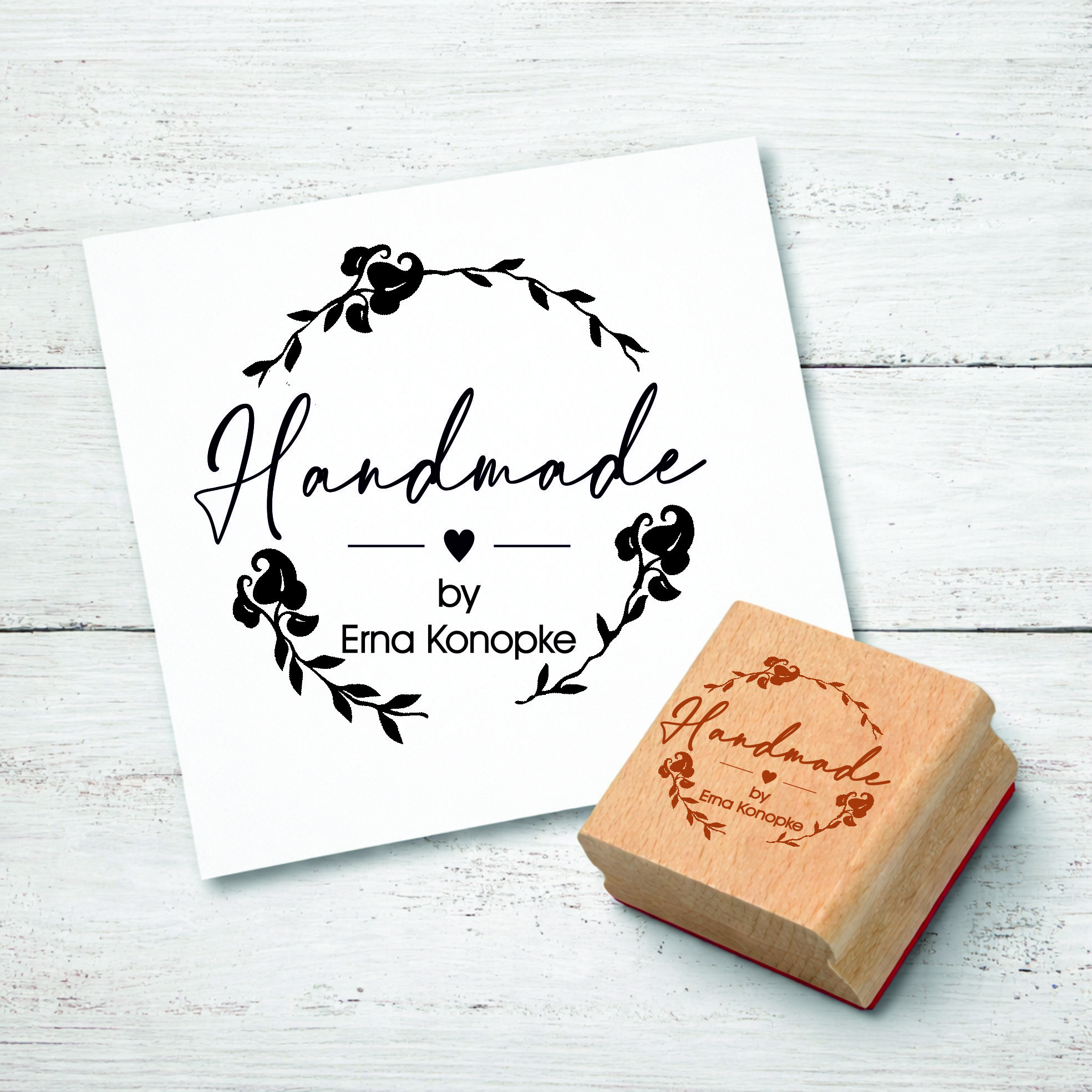 Motivstempel Handmade Vintage Kranz inkl. Name - Herz Stempel personalisiert - 48 x 47 mm