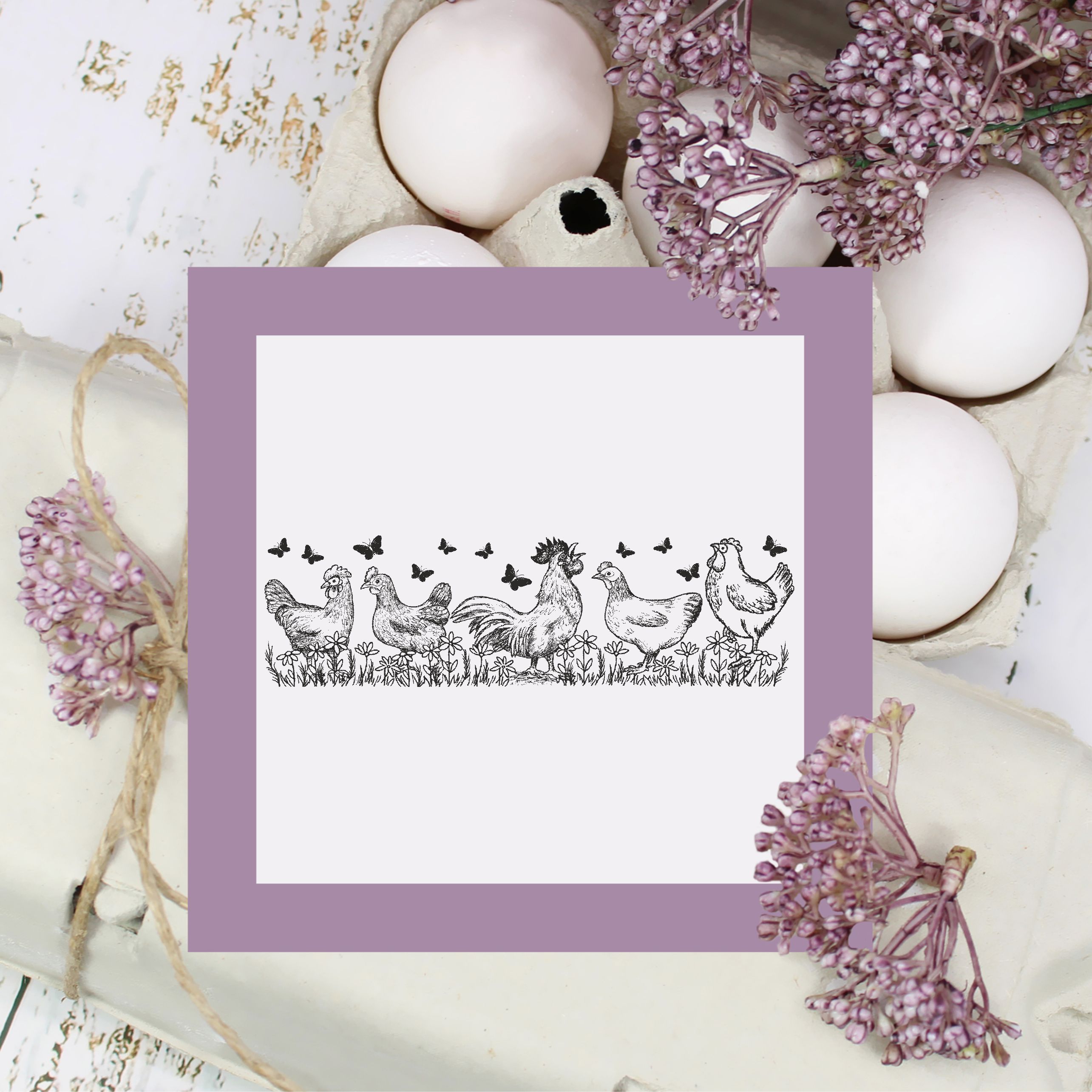 Dieser ländliche Motivstempel im Bordüren-Design ist ein zauberhafter Blickfang für alle, die Natur, Hoftiere und das Landleben lieben.