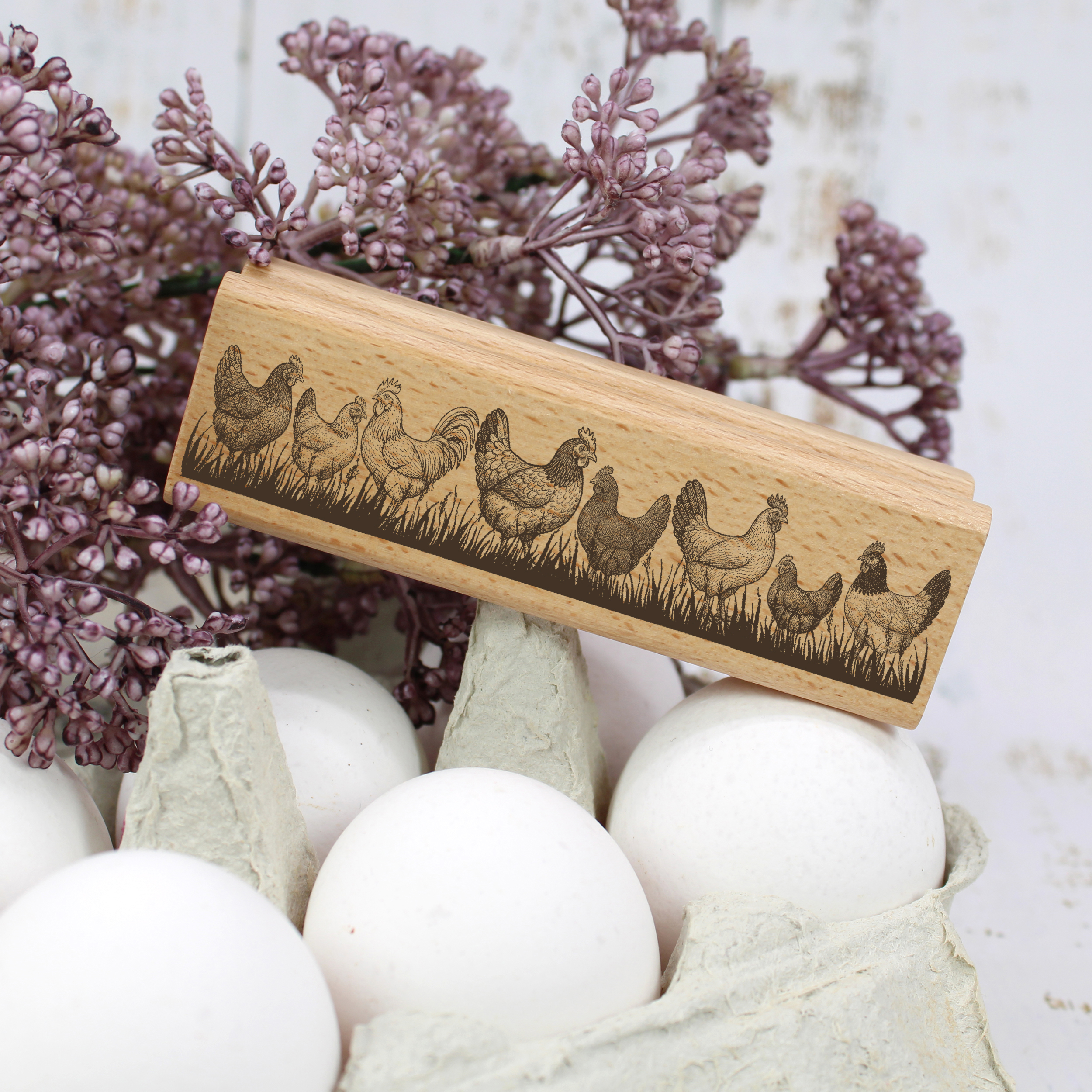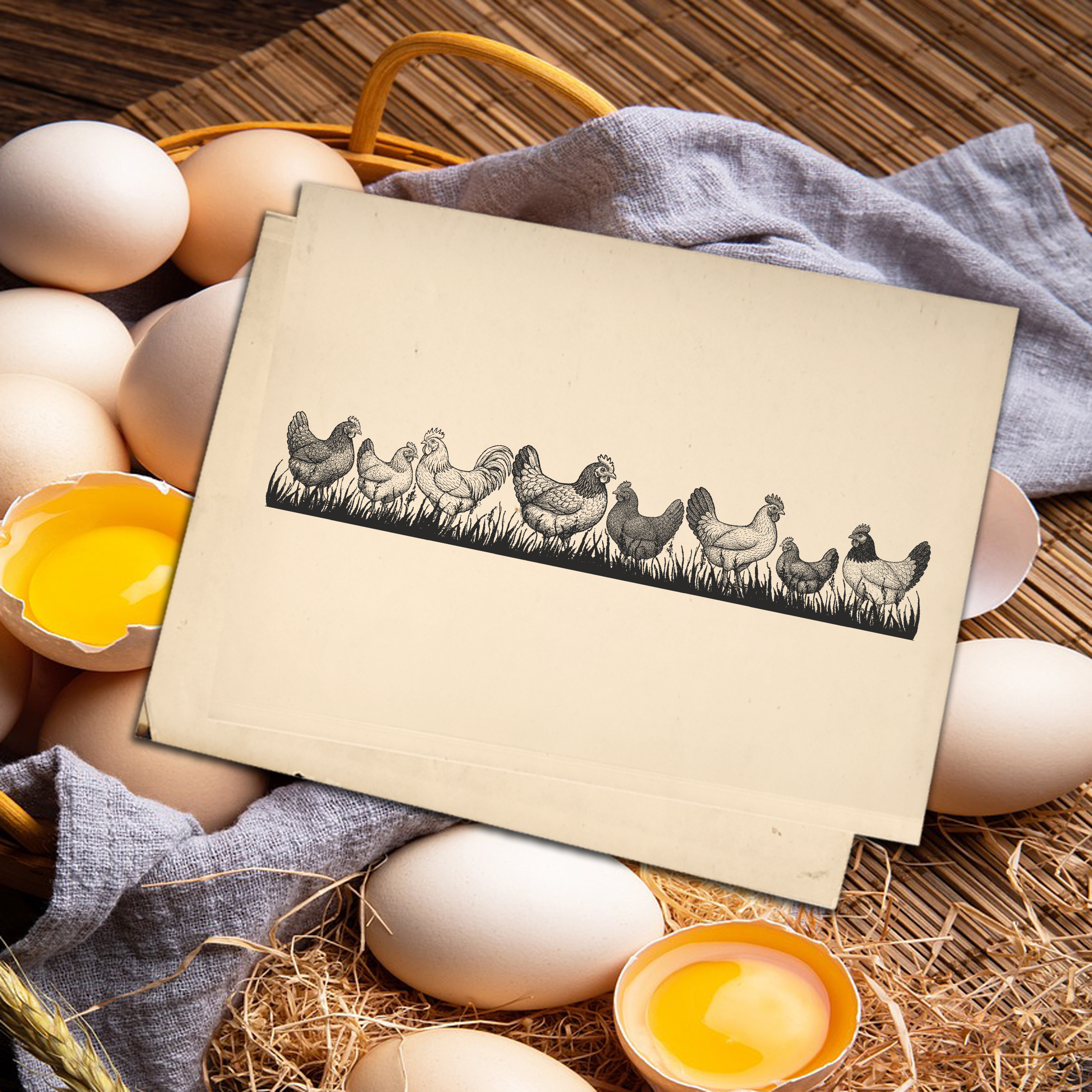 Ländlicher Motivstempel mit Hühern: Perfekt