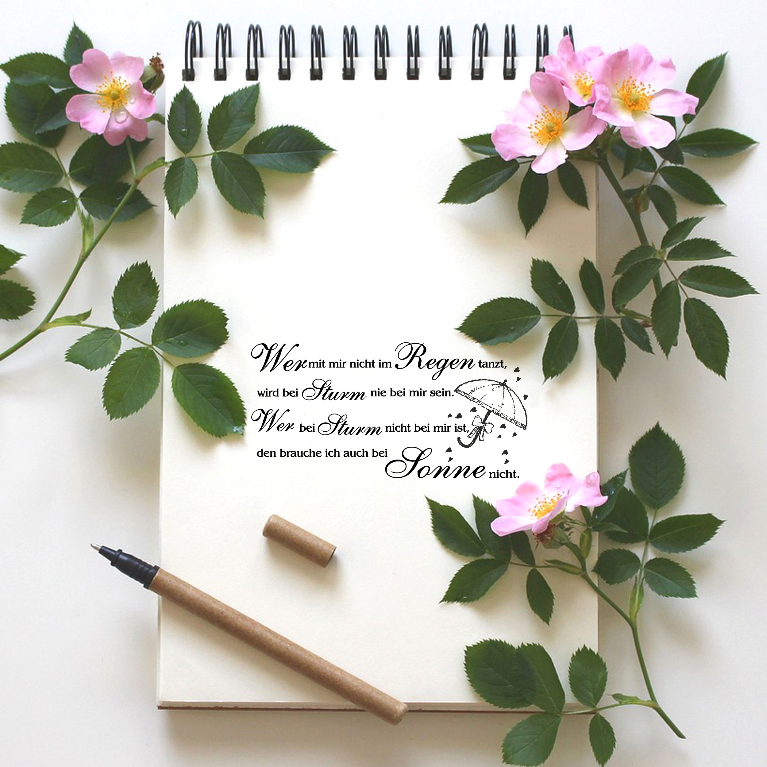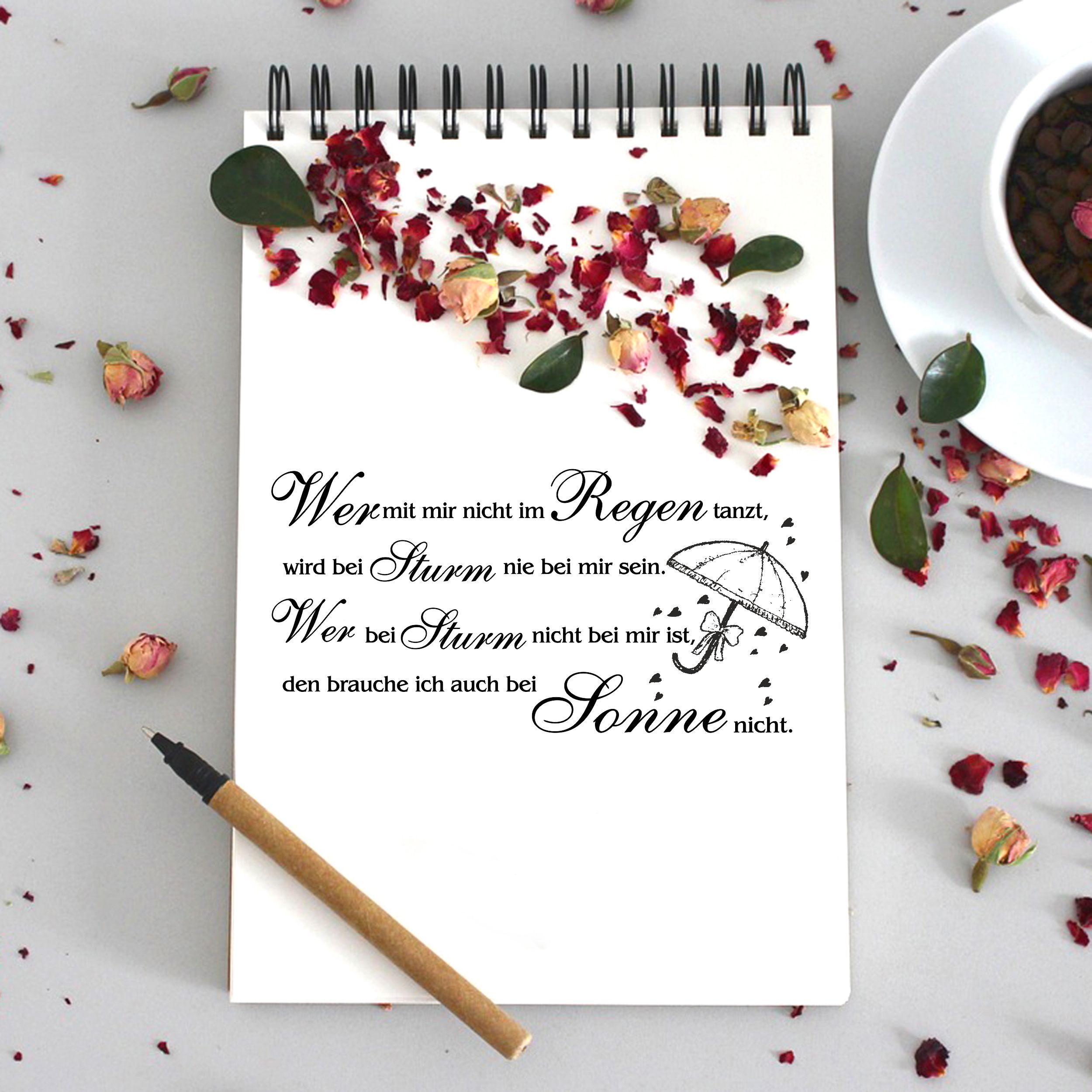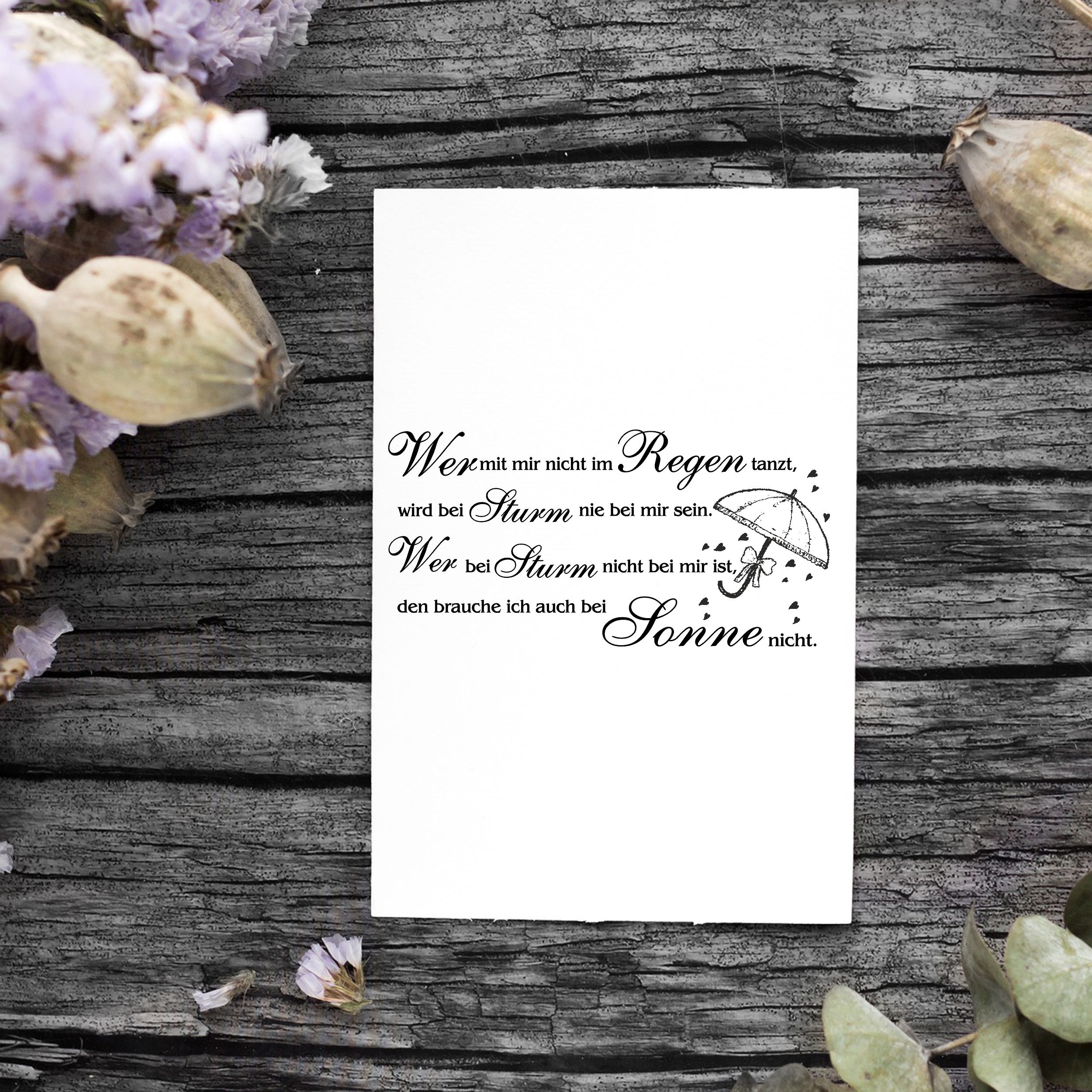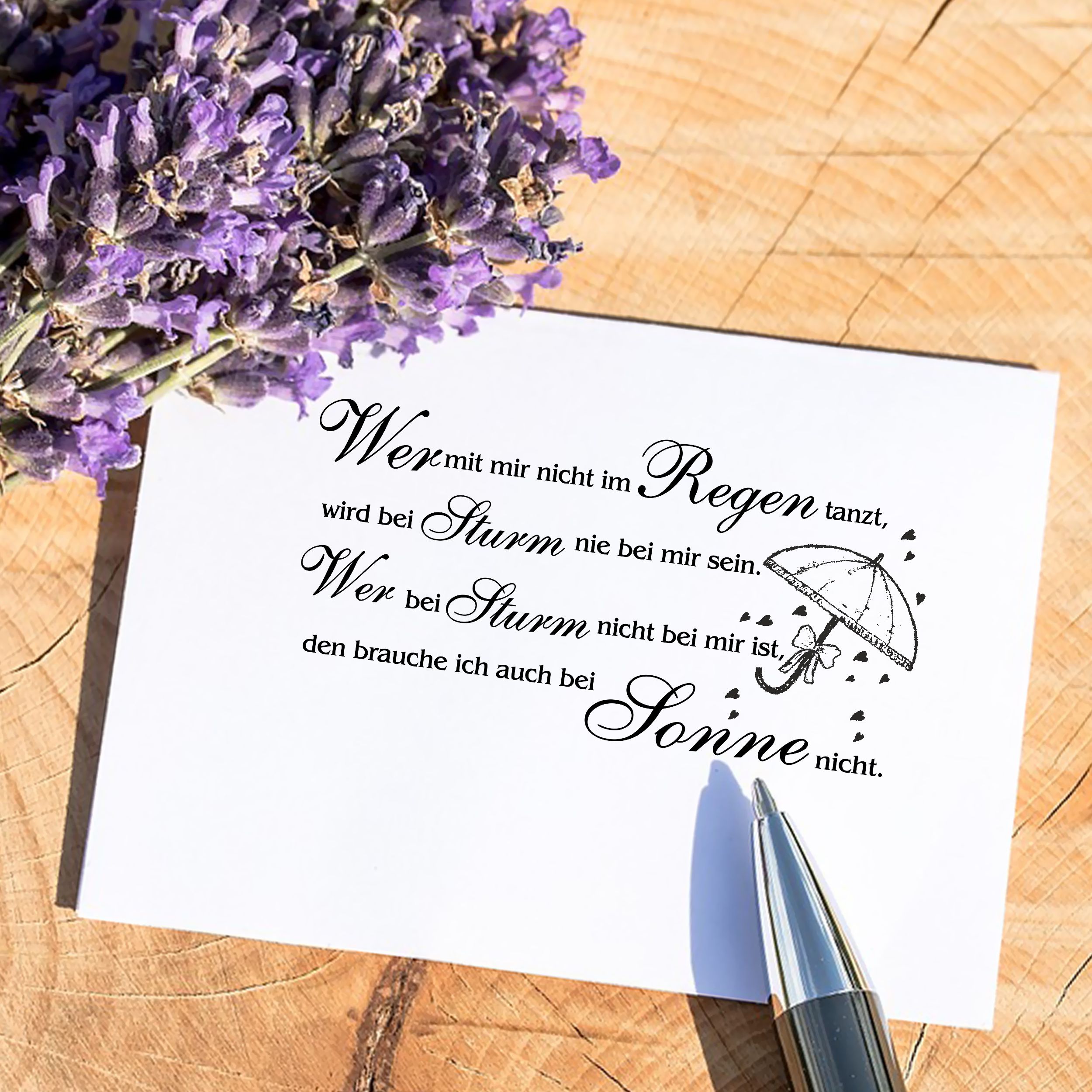 Motivstempel Im Regen tanzen Spruch - Stempel Regenschirm Holzstempel 98 x 48 mm