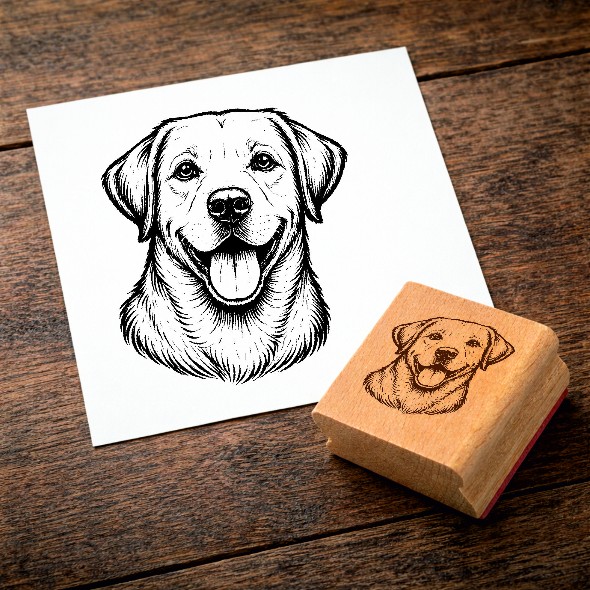 Motivstempel Labrador Retriever Hund - Stempel mit Hundemotiv - Holzstempel Abdruck 43 x 48 mm