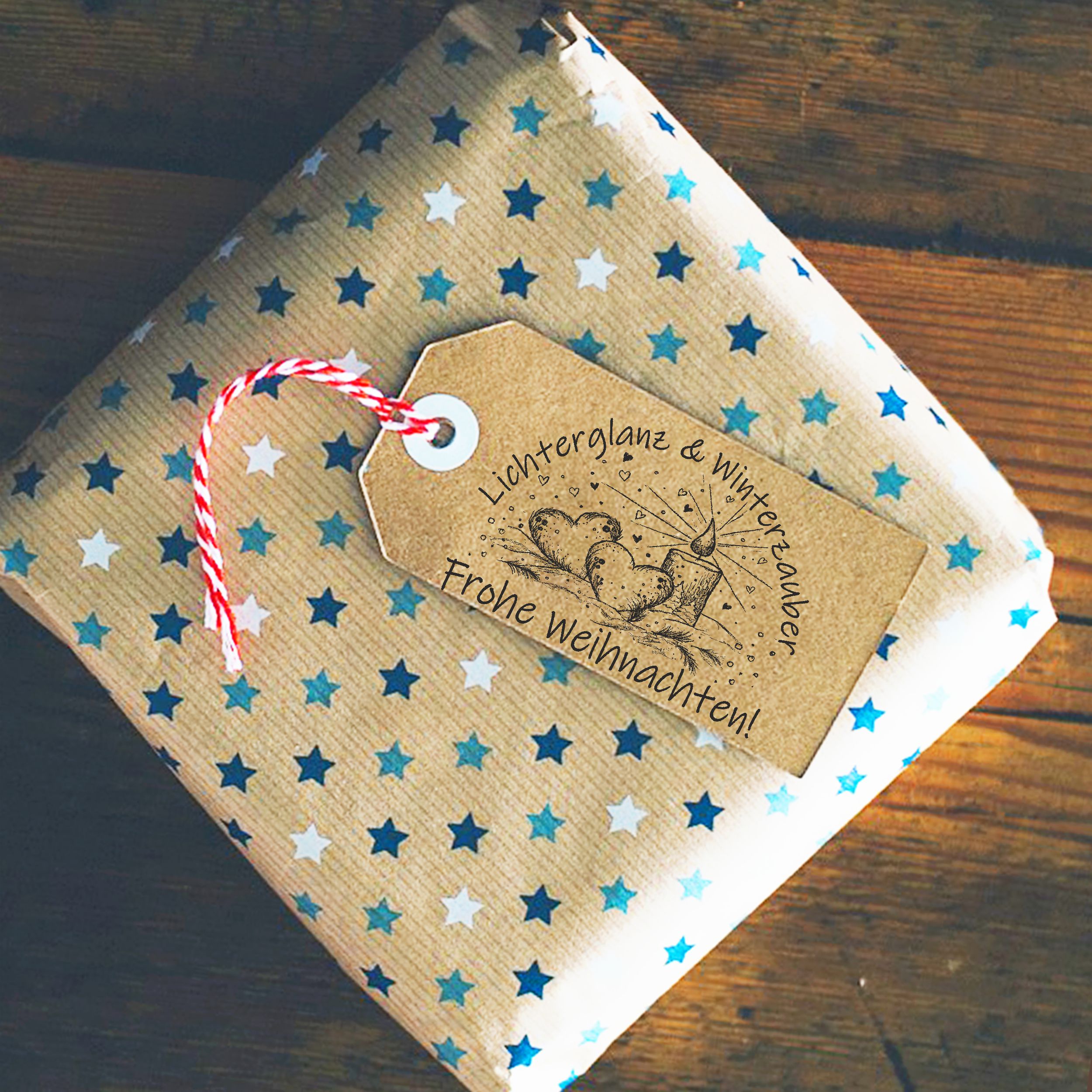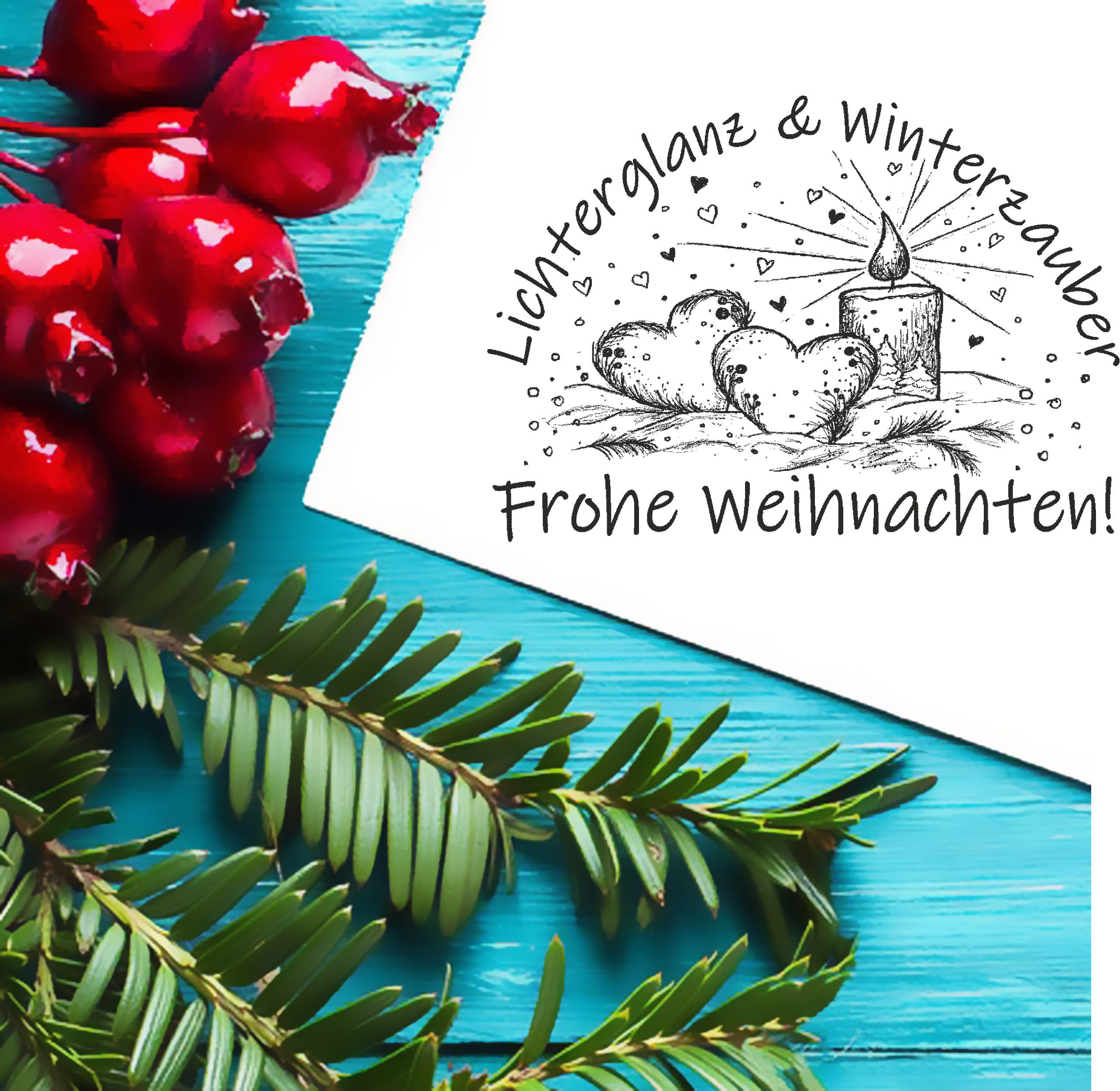 Motivstempel Lichterglanz & Winterzauber - Herzen und Kerze Stempel Weihnachtsstempel Holzstempel 68 mm x 48 mm