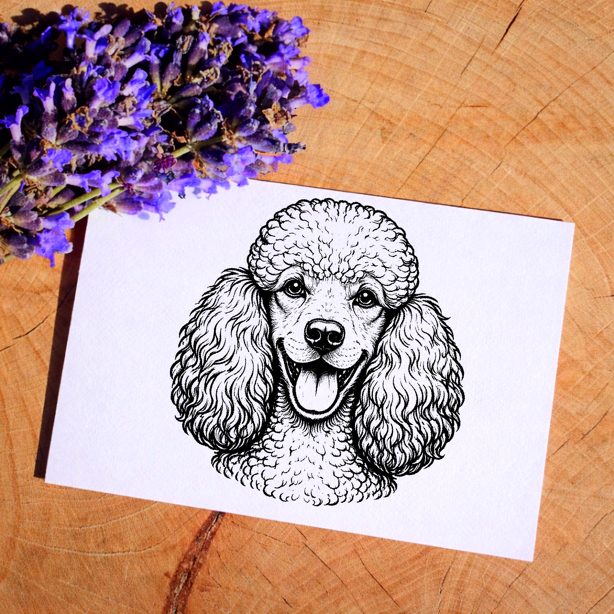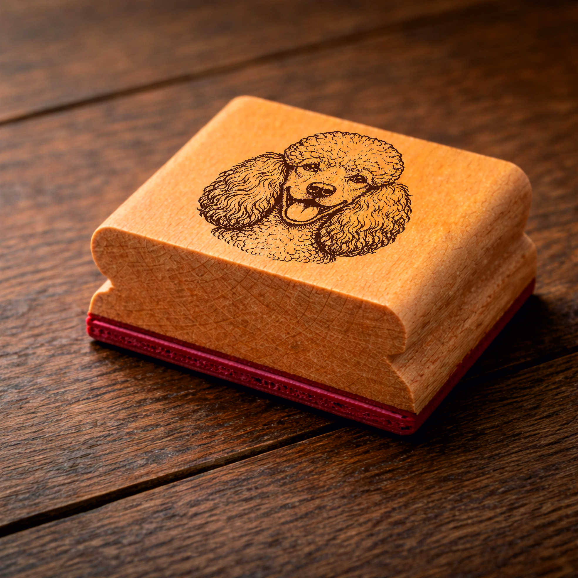 Motivstempel Pudel Hund - Stempel mit Hundemotiv - Holzstempel Abdruck 46 x 48 mm