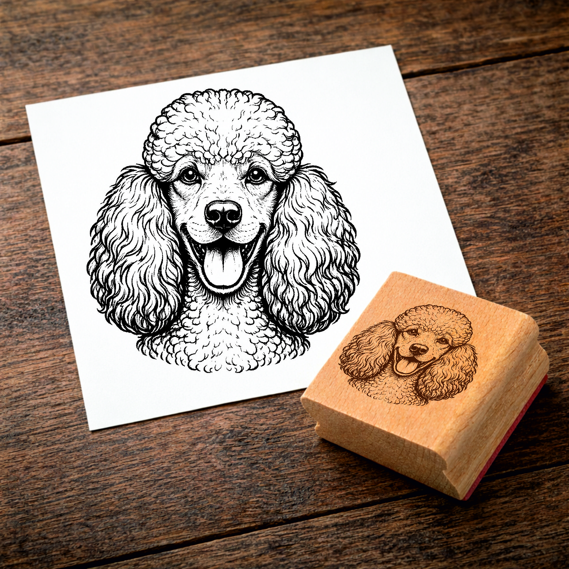 Produktinformationen "Motivstempel Pudel Hund - Stempel mit Hundemotiv - Holzstempel Abdruck 46 x 48 mm"