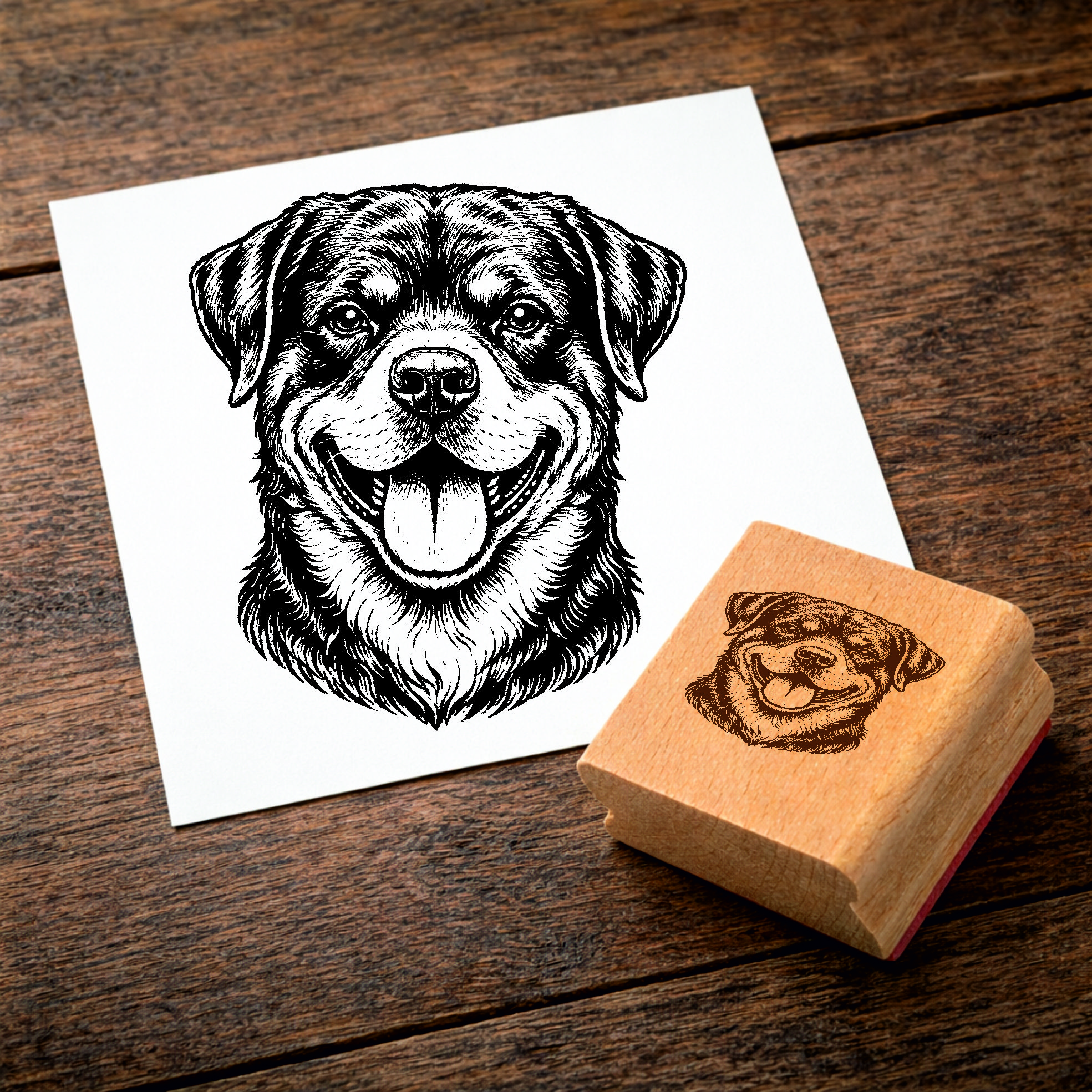 Motivstempel Rottweiler Hund - Stempel mit Hundemotiv - Holzstempel Abdruck 44 x 48 mm