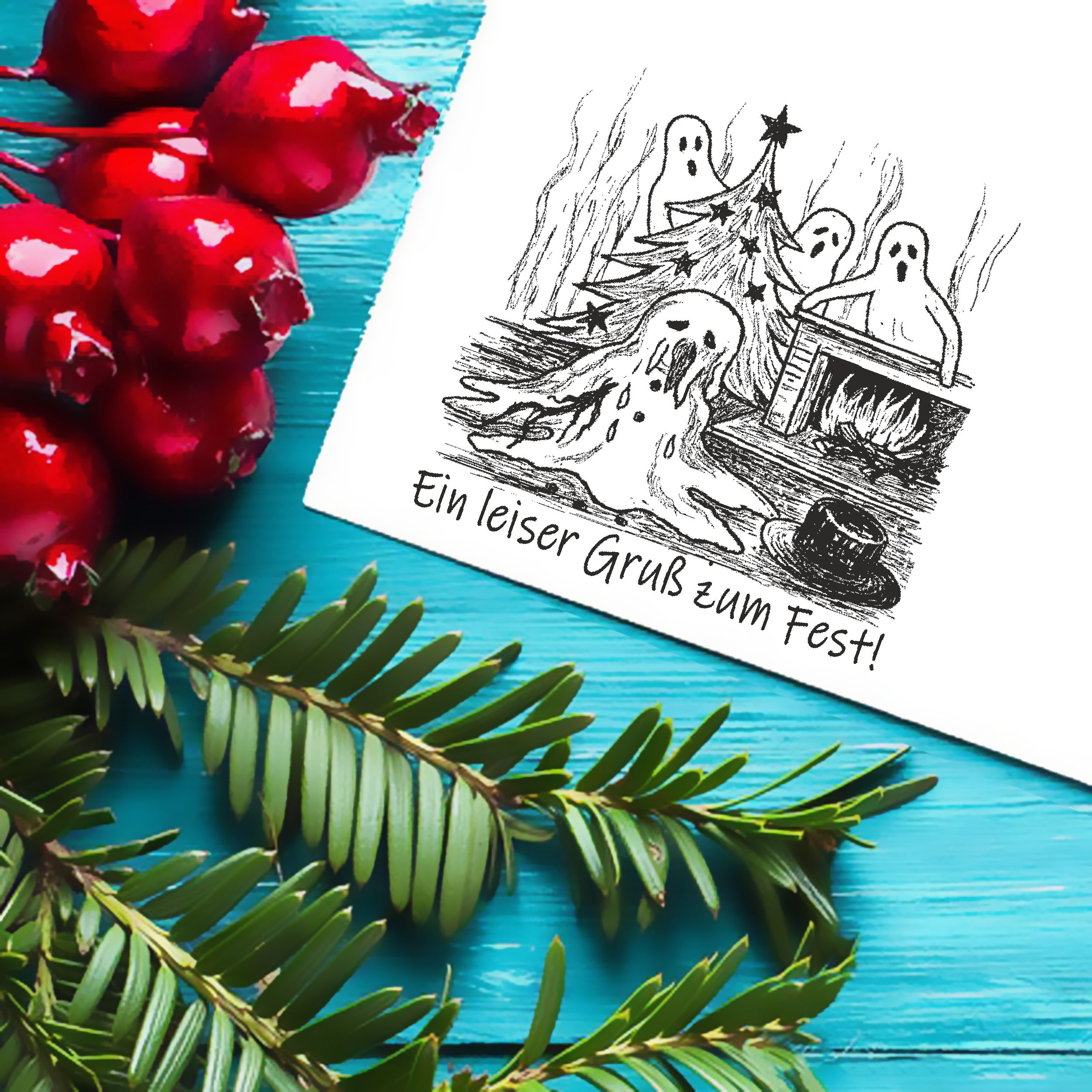 Motivstempel Schneemann - Ein leiser Gruß zum Fest - Stempel Geister Kamin Holzstempel 68mm x 68mm