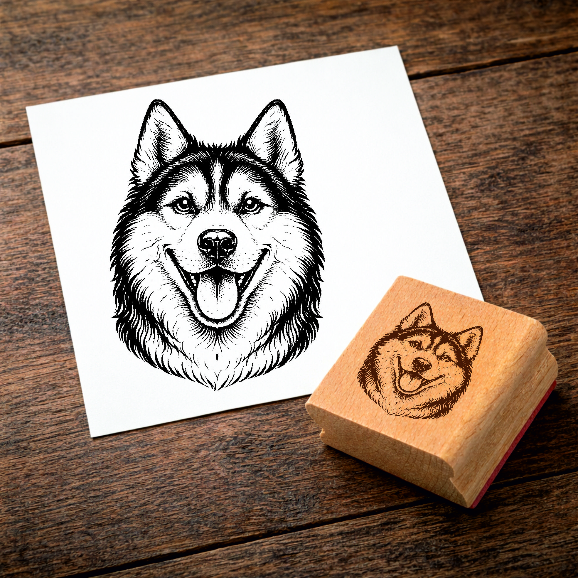 Motivstempel Sibirian Husky Hund - Stempel mit Hundemotiv - Holzstempel Abdruck 35 x 48 mm