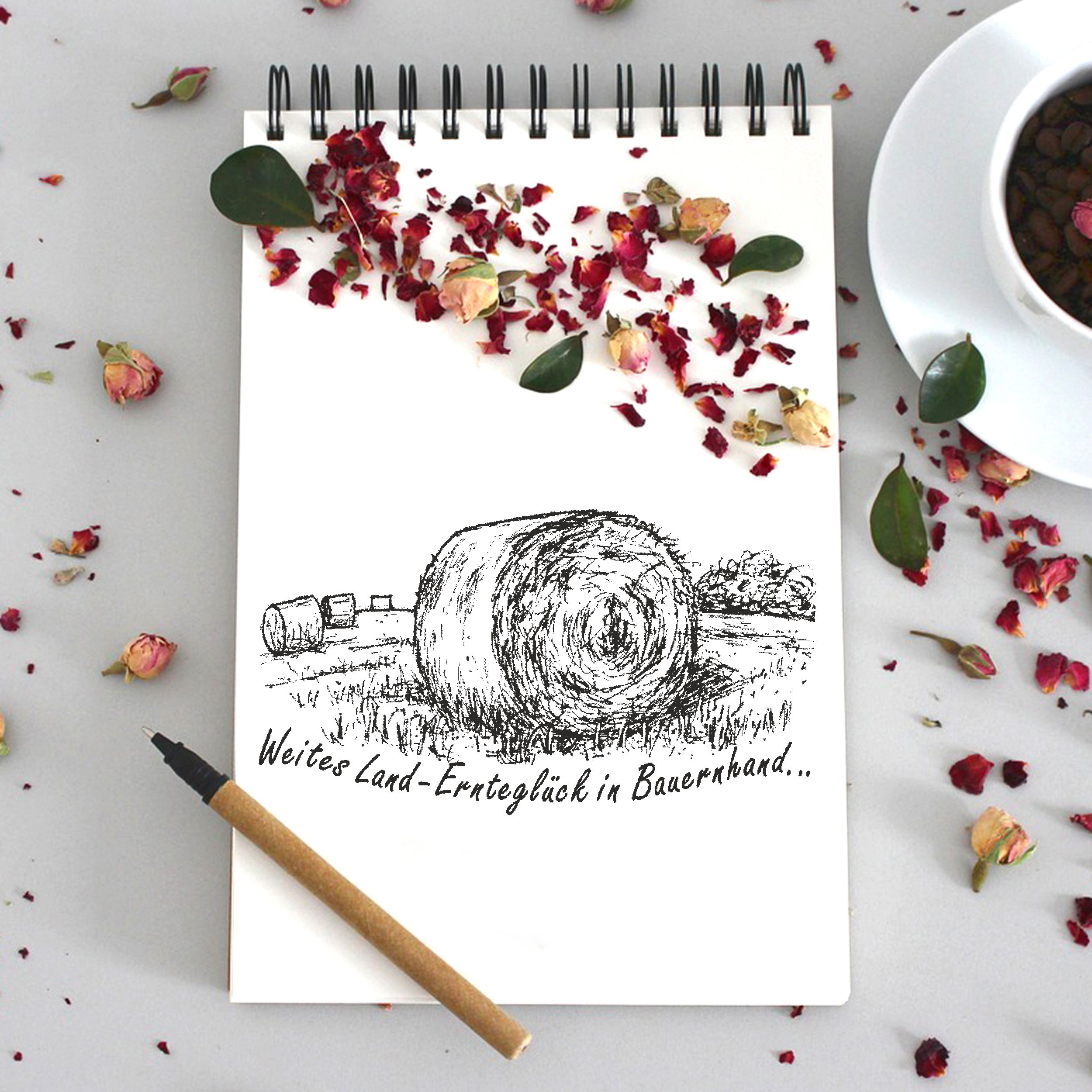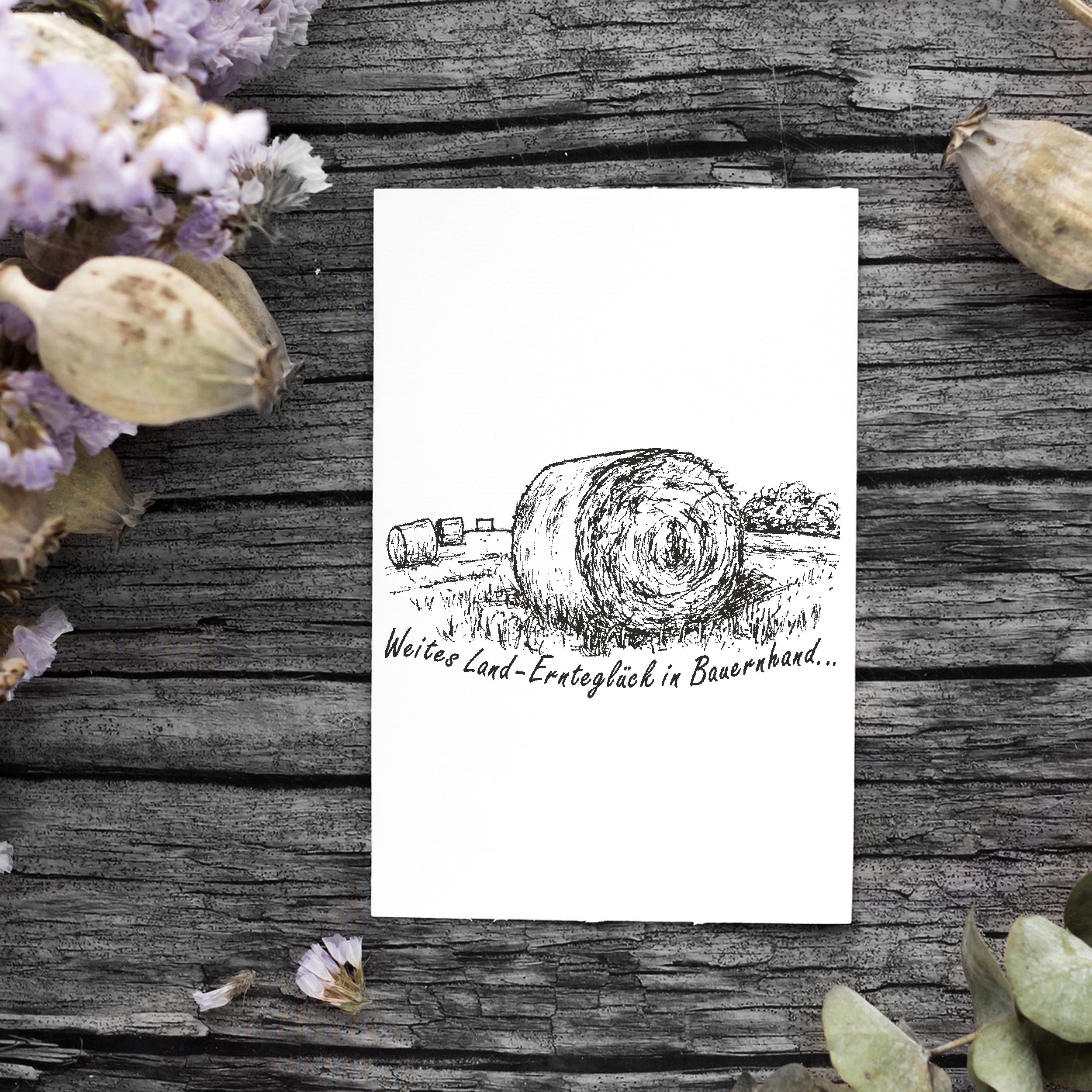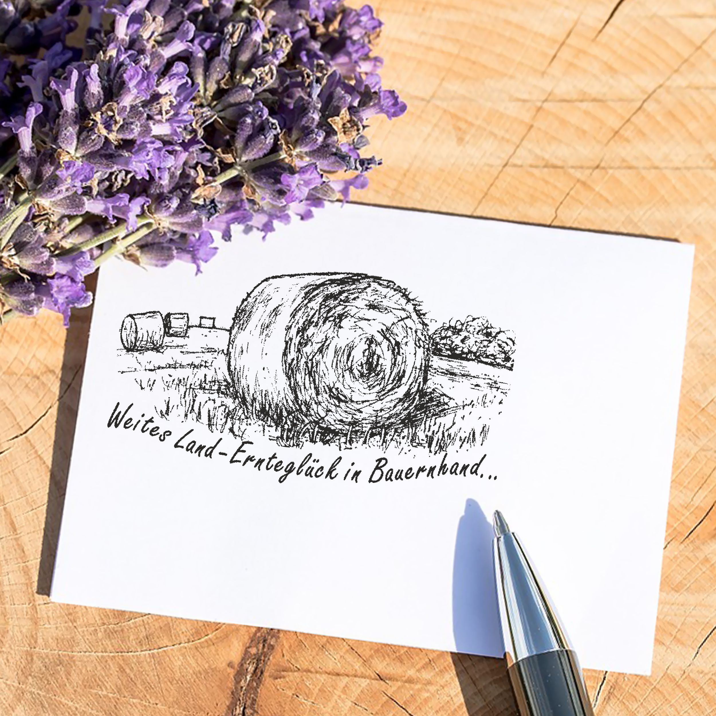 Motivstempel Strohballen Feld - Weites Land - Ernteglück in Bauernhand - Stempel Holzstempel 68 x 38 mm