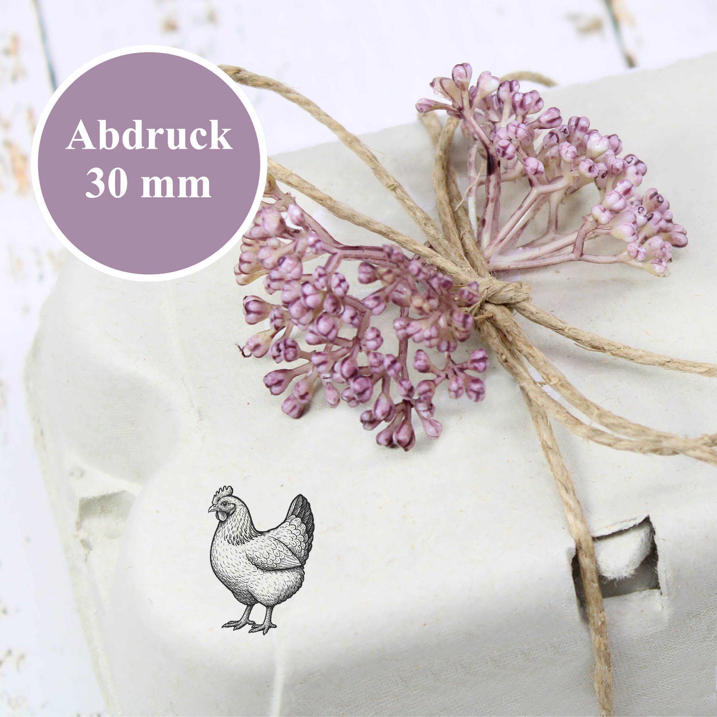 Unser Holzstempel mit Hühnermotiv verbindet detailreiche Motive mit langlebiger Qualität. Wählen Sie aus verschiedenen Hühnermotiven – darunter traditionelle Landhuhn-Arten wie Sperber oder Augsburger – in 3 praktischen Größen (Ø 20 mm, 30 mm, 60 mm), perfekt abgestimmt für kleine, mittlere und große Kreativarbeiten.