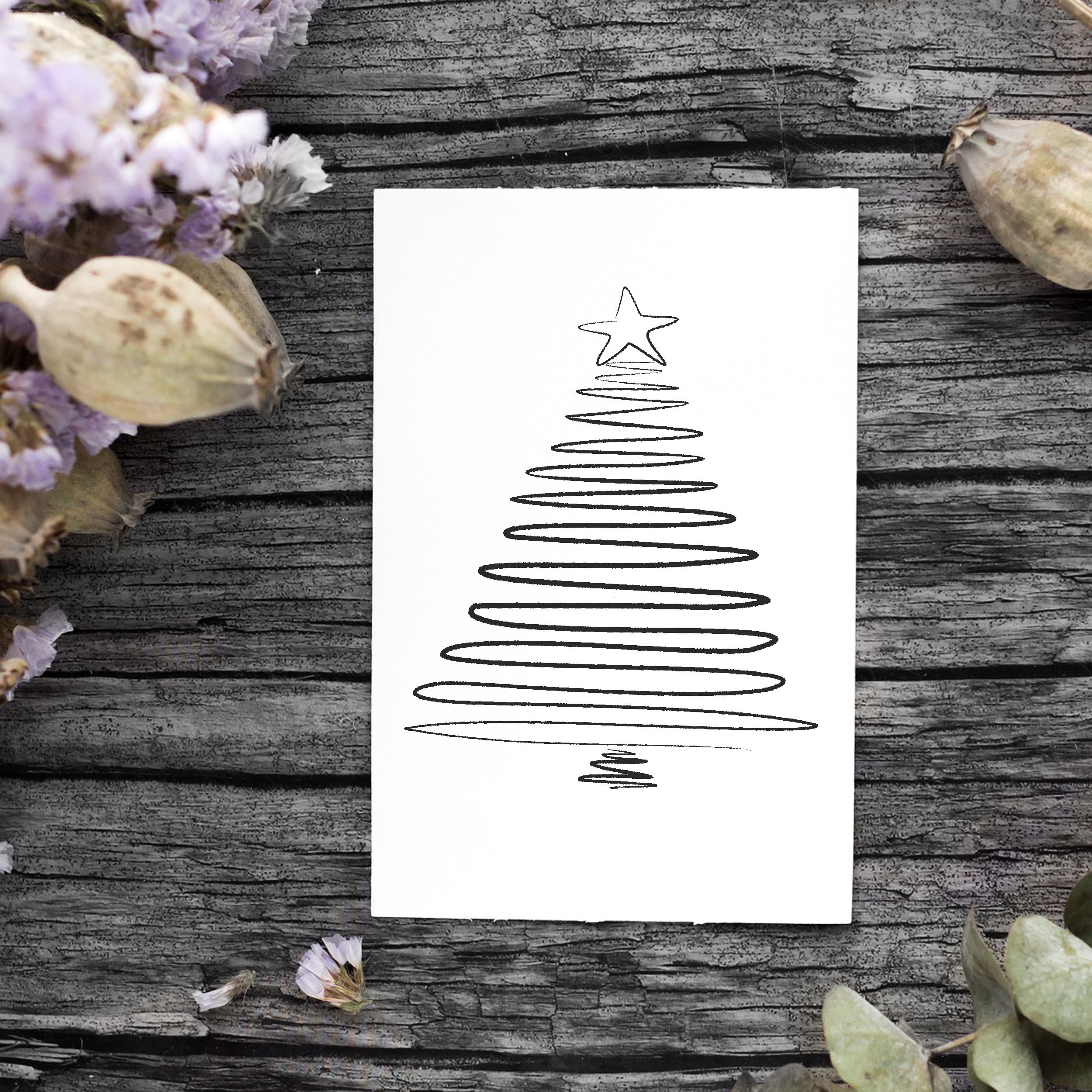Motivstempel Tannenbaum Stern modern - Weihnachtsstempel Christbaum minimalistisch Stempel Holzstempel 58 mm x 68 mm