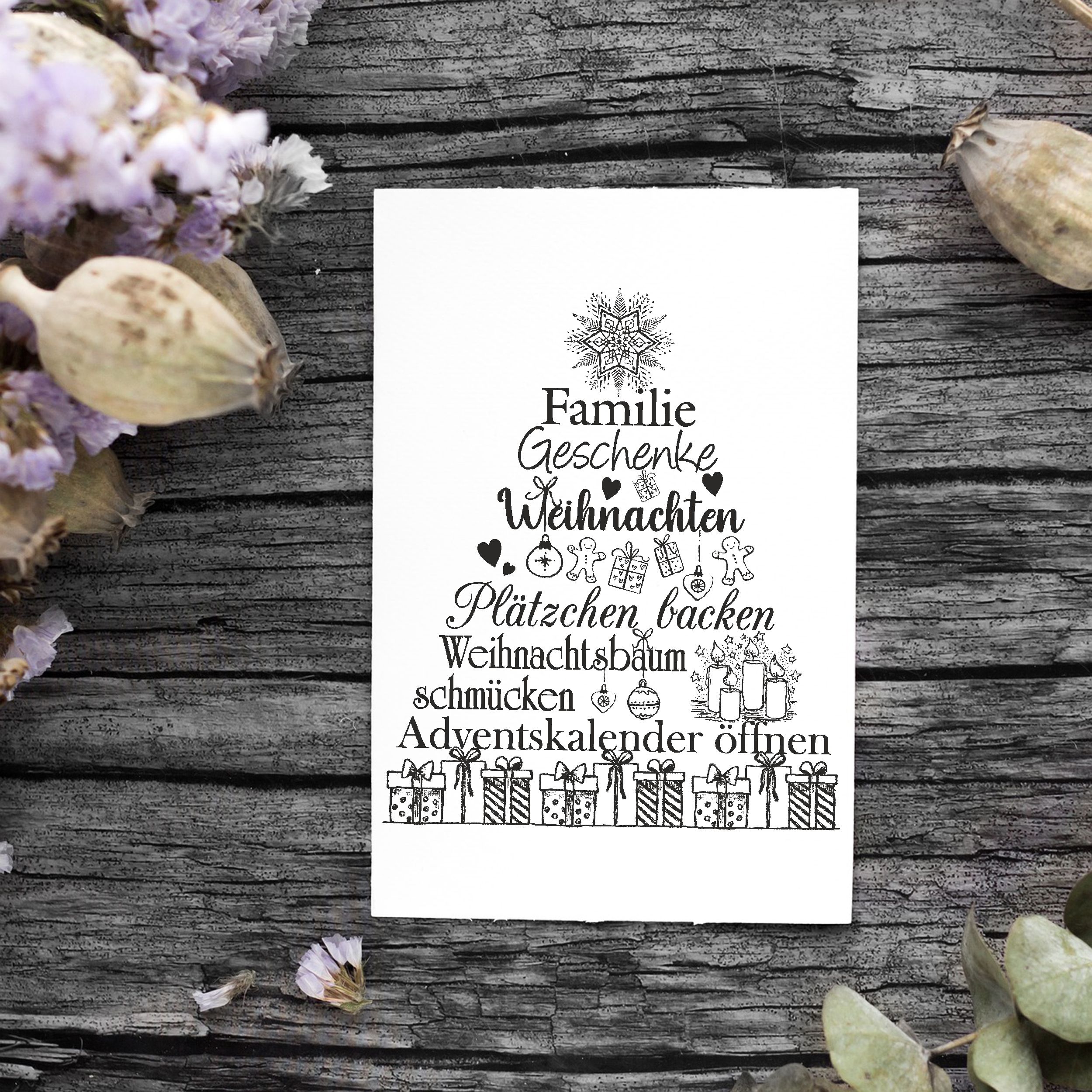 Hochwertiger Weihnachtsstempel aus lackiertem Buchenholz – ideal für weihnachtliches Basteln: Mit lasergravierter Gummiplatte für klare Abdrücke.
