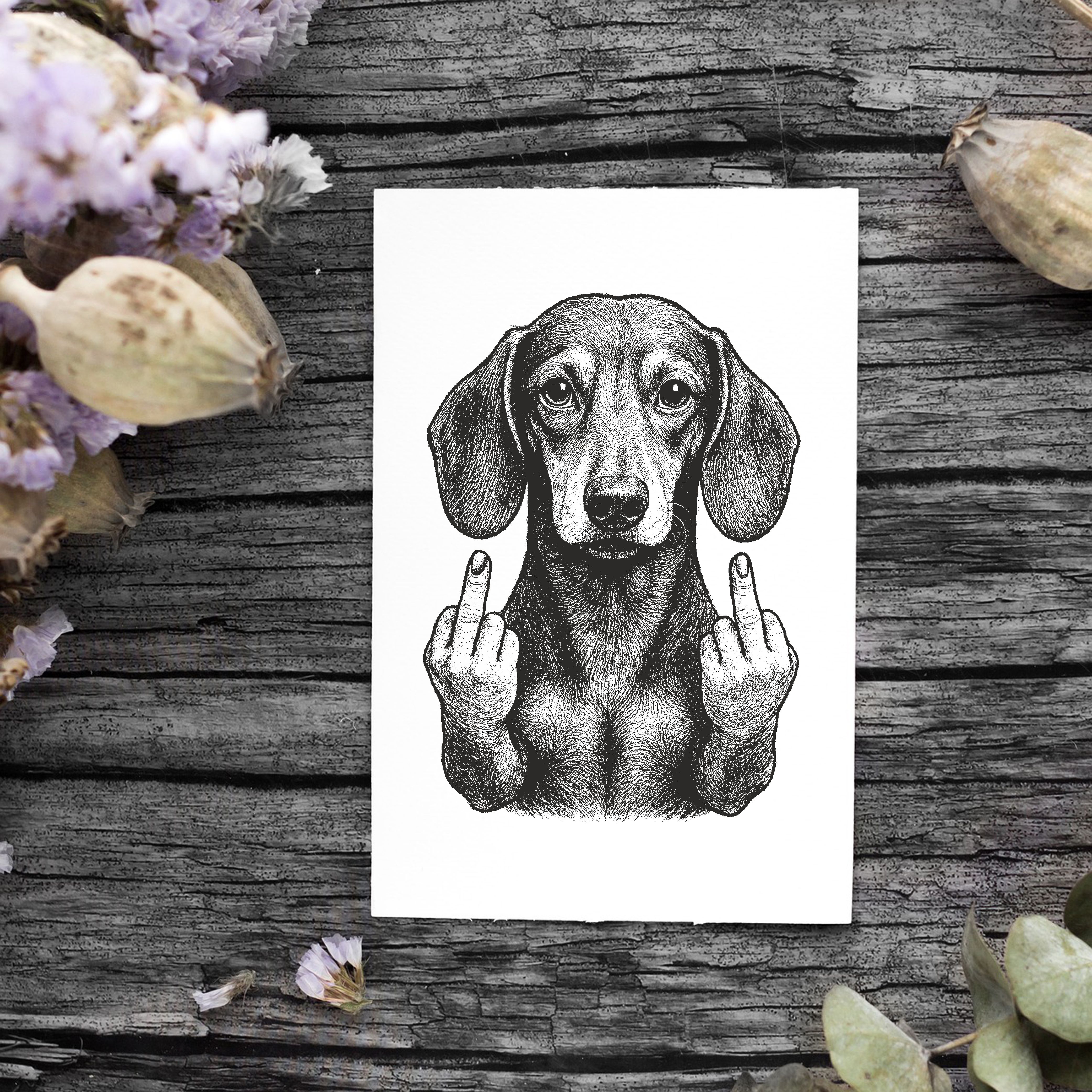 Motivstempel Tierstempel Dackel Stinkefinger Mittelfinger Stempel lustig - ca. 40 x 50 mm