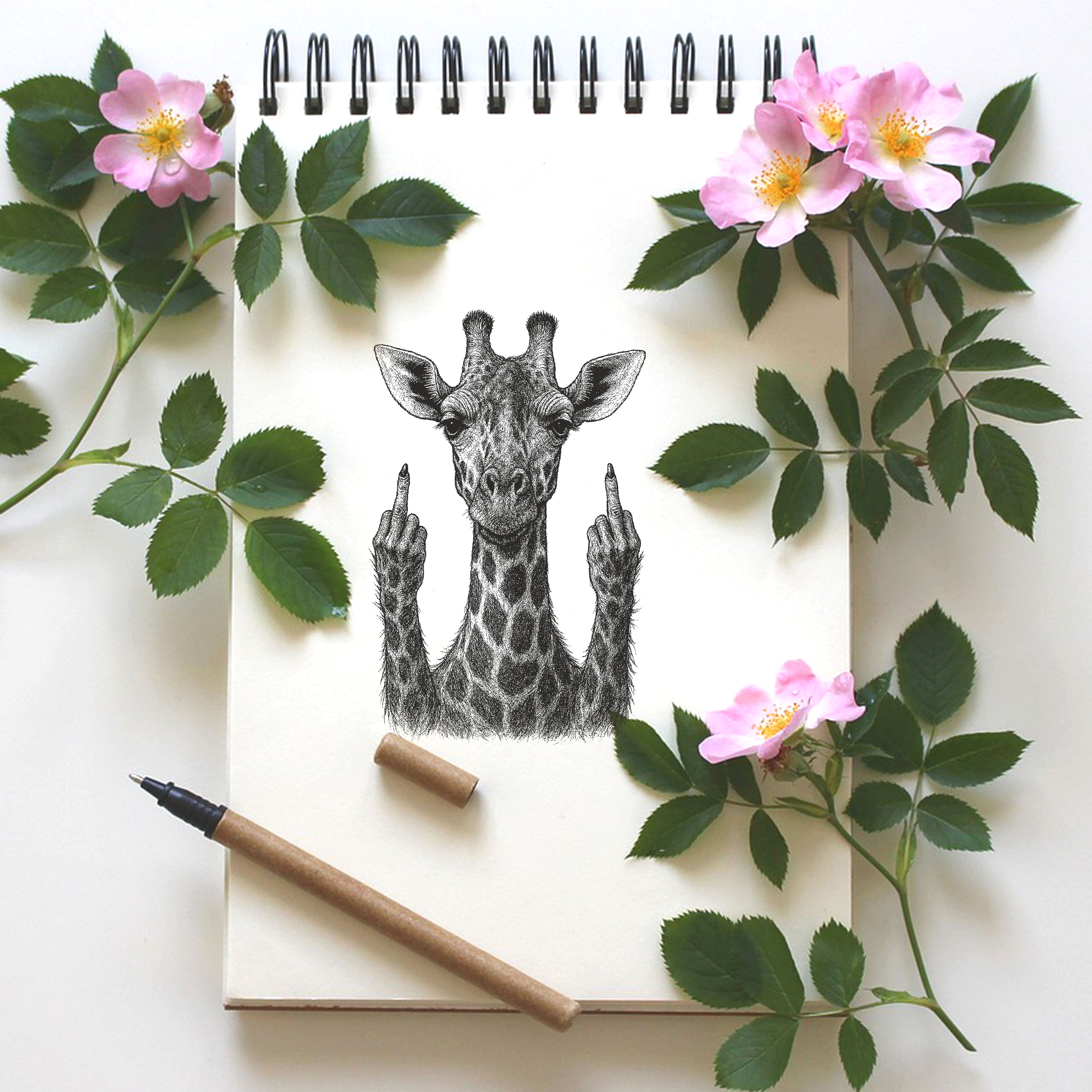 Motivstempel Tierstempel Giraffe Stinkefinger Mittelfinger Stempel lustig - ca. 40 x 50 mm