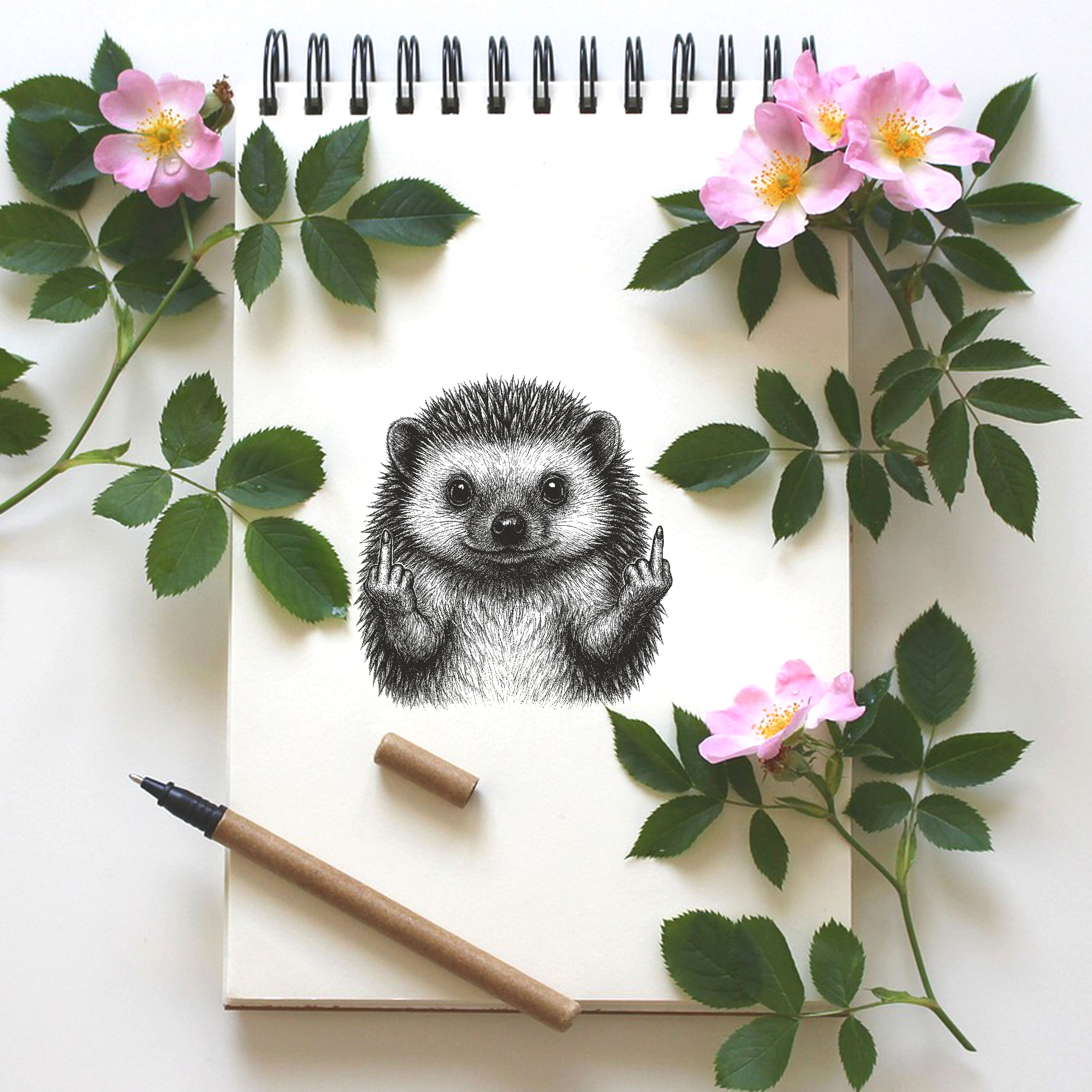 Motivstempel Tierstempel Igel Stinkefinger Mittelfinger Stempel lustig - ca. 40 x 50 mm